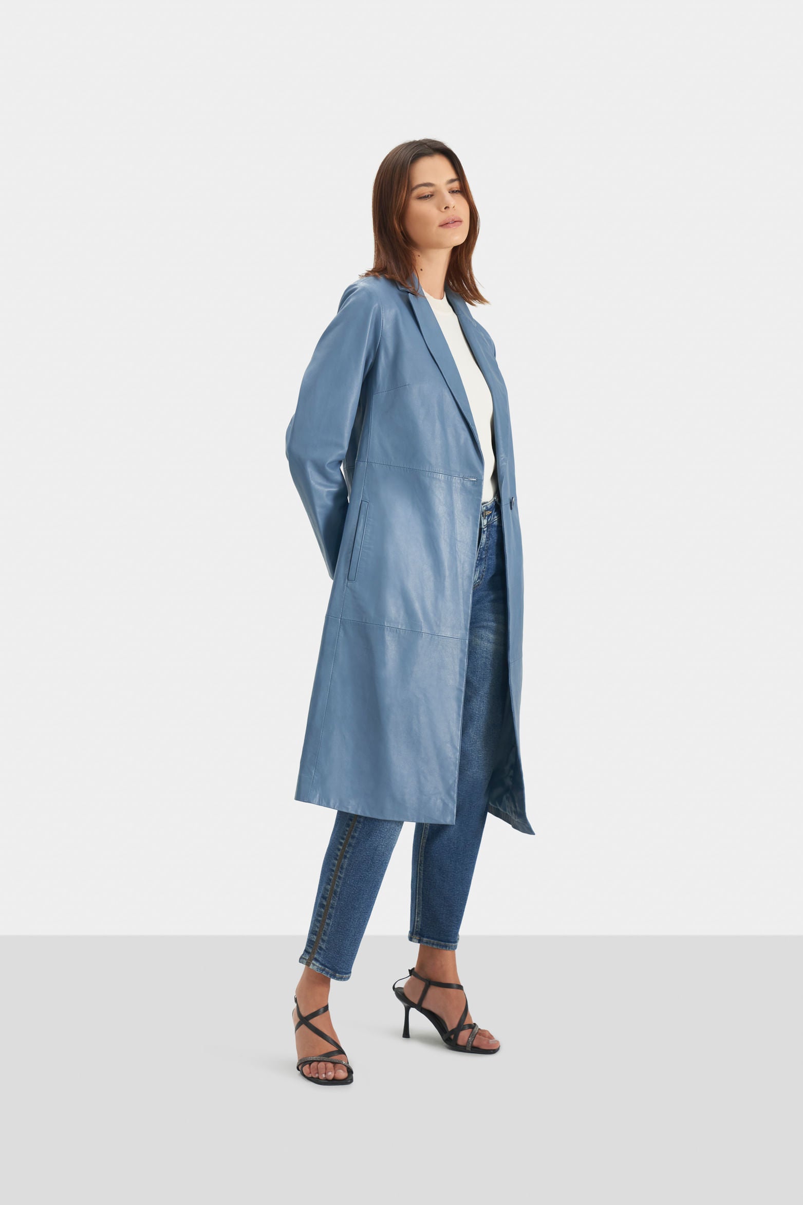 Our ovine leather coat features a collar design with lapels, welt pockets, a center button, and knee length. This piece is a statement of character that embodies the elegance and artisanal luxury of Vélez. It's ideal for starring in your cold-weather looks.