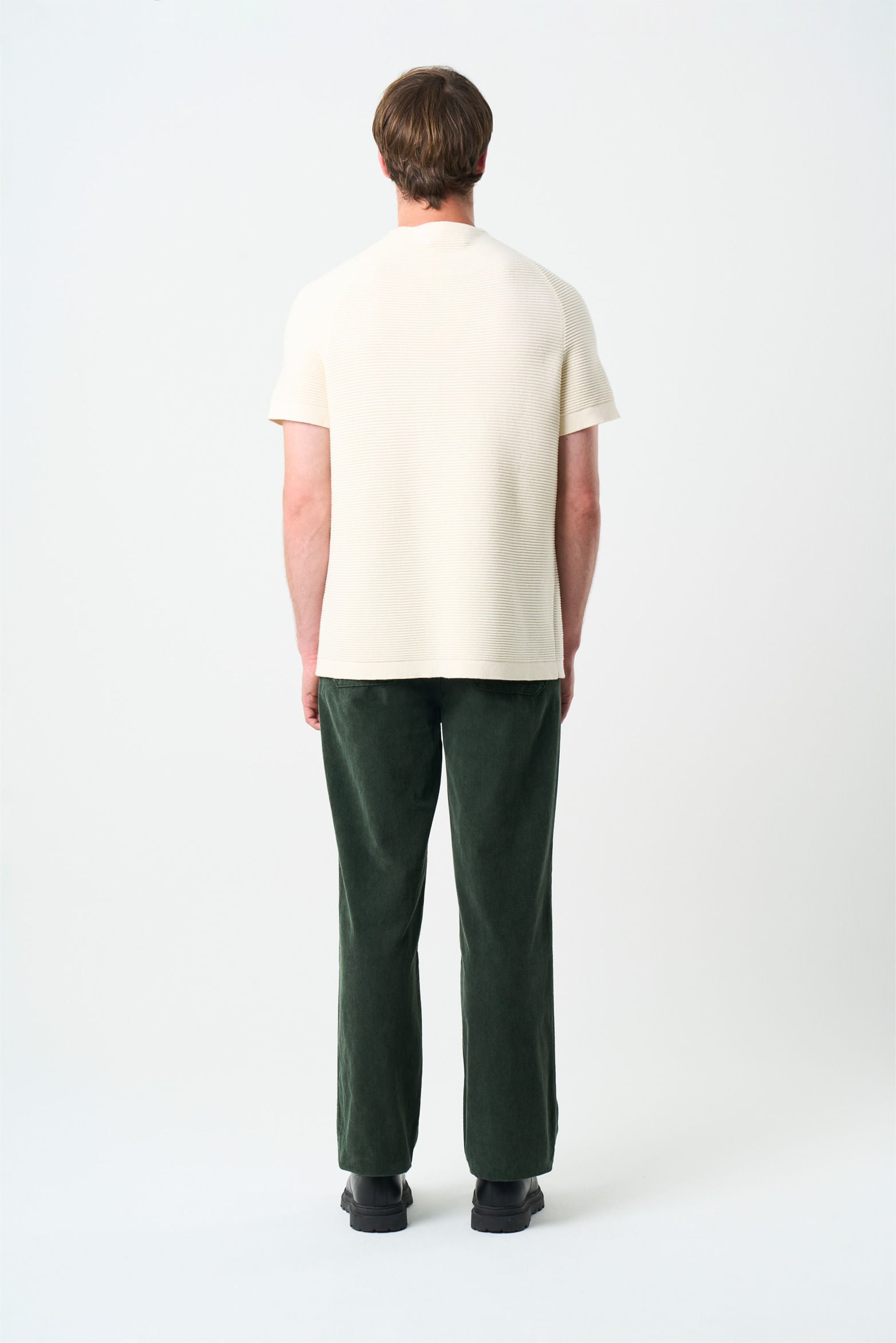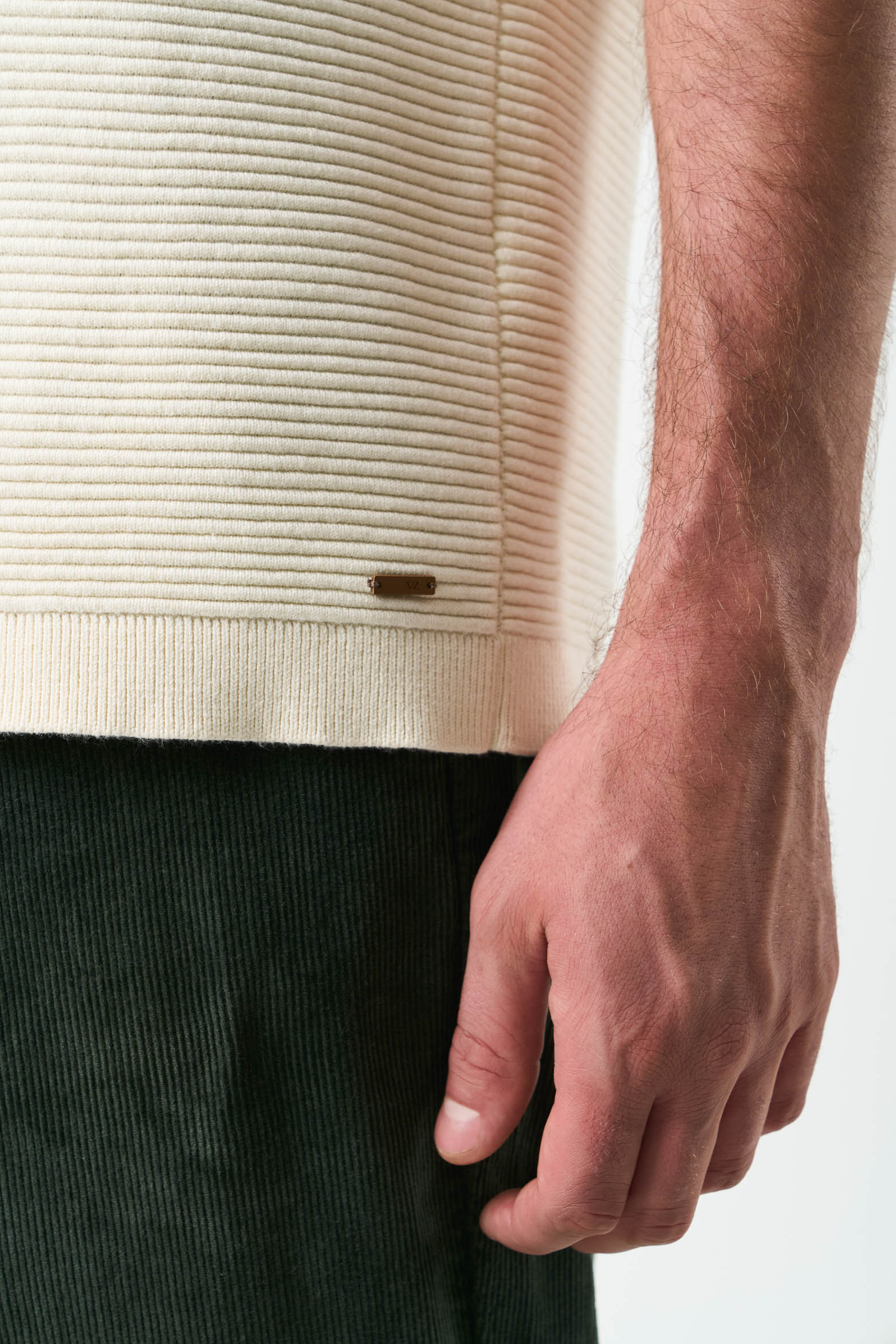 A knit polo shirt that elevates your everyday look with understated luxury and impeccable style. Its textured textile base and semi-fitted silhouette offer a fresh and sophisticated touch. Perfect for pairing with Bermuda shorts, jeans, or trousers, this piece provides exceptional comfort, ideal for cultivating a naturally elegant style, whether you're headed to the office or enjoying a weekend outing.