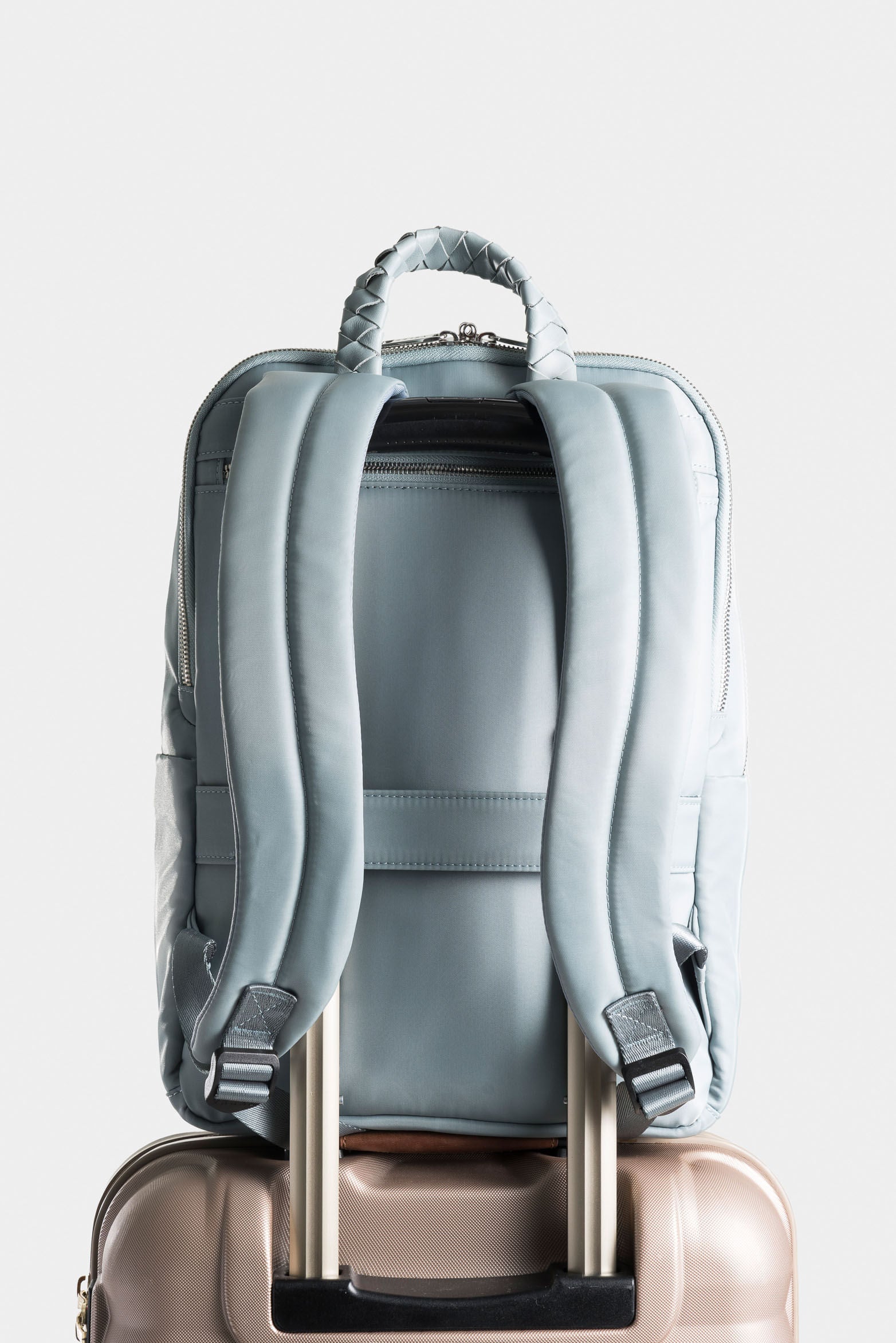 Our Tula Ryn backpack is made from recycled nylon and features leather braided appliqués that define it as an indispensable artisan luxury piece for casual or office use. Its design with adjustable padded shoulder straps offers comfort and adds style to your looks while providing convenience. Additionally, it includes multifunctional pockets, a trolley sleeve, a double compartment, a front pocket, and a compartment for a 14-inch laptop.