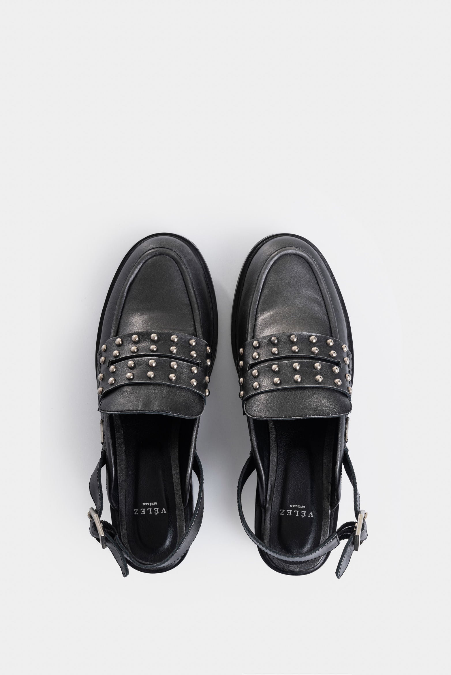 With bold chunky inspiration and brush-off metallic leather construction, our loafers embody the perfect fusion of creativity and innovation. Every detail, from the silver-marked insole to the chunky outsole with metallic stud accents, adds avant-garde sophistication to any outfit. The luxury insole marked with a silver ribbon and the distinctive hexagonal metal buckle highlight the artisanal finish. Structured and contemporary pieces, these loafers reinvent aesthetic codes with an unmatched style, inspired by the latest global trends.