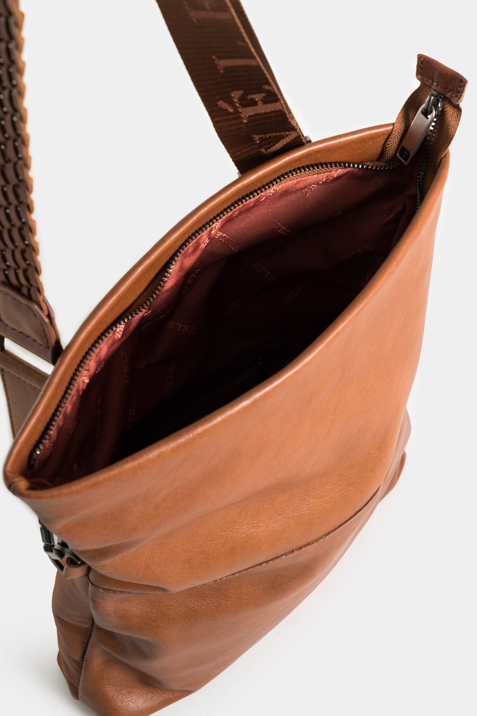 Inspired by sophisticated and contemporary women, our leather hands-free bag has a soft natural look and subtle shine. It features an artisanal strap with a braided pattern, zip closure system, and a soft silhouette. It's a perfect item for any occasion where comfort and versatility are styled with ease. Pair it with jeans and sneakers to propose a very fresh look.