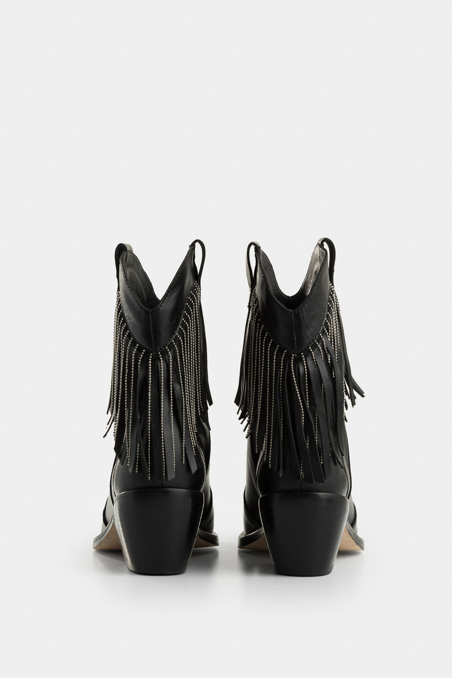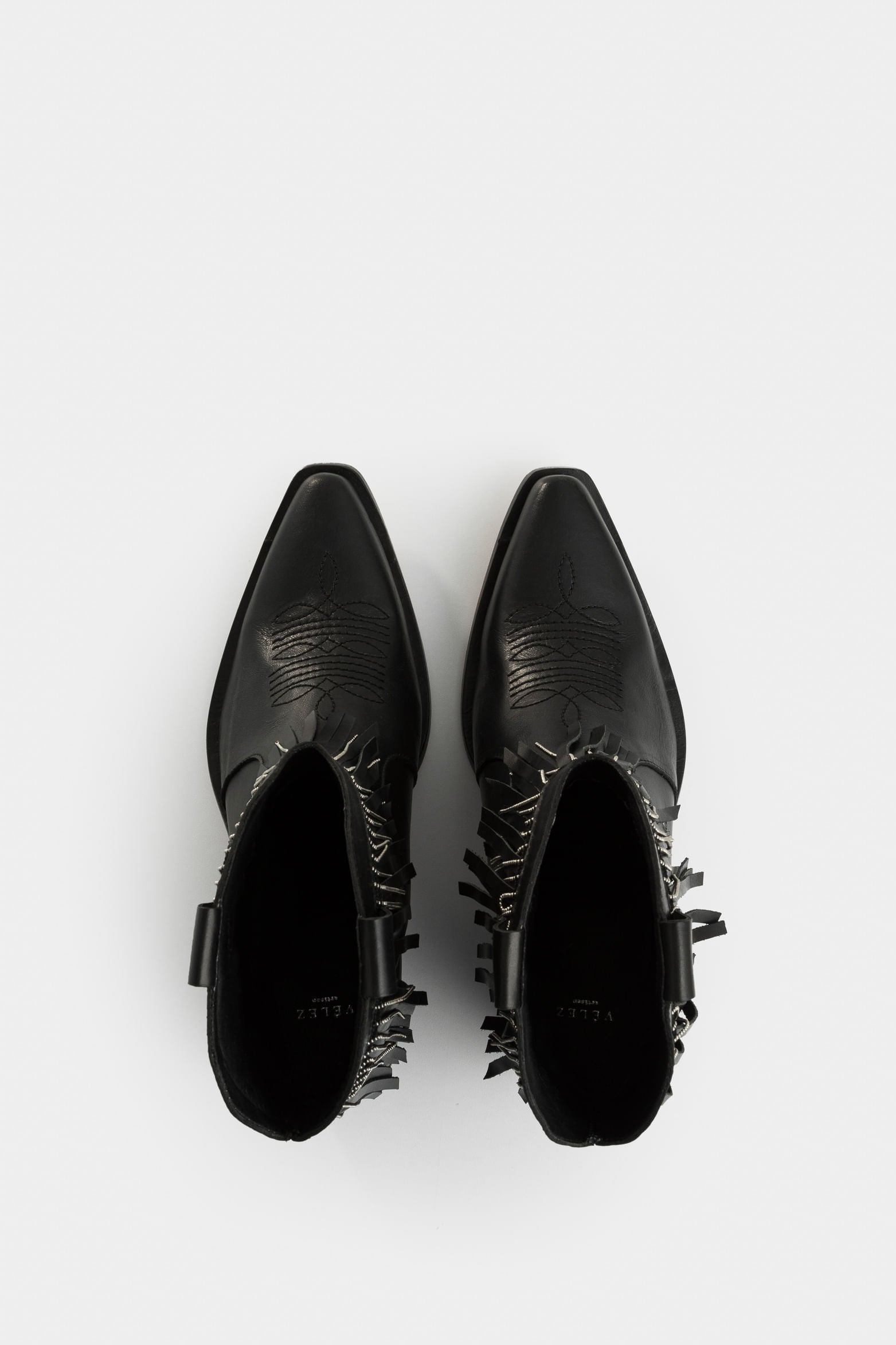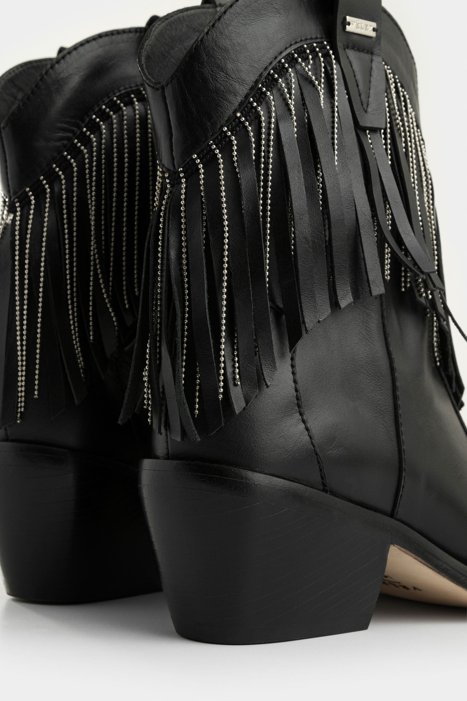 Organic textures and luxurious stitching come together in these Texan boots, enhancing the artisanal beauty of any outfit. With a subtle shine in smooth leather and Western-inspired embroidery, their fringe sways elegantly as you walk, creating sophisticated movement. The thick crepe sole and leather and textile lining ensure comfort and durability. Perfect for denim shorts with a bohemian leather jacket or sophisticated dresses, these boots turn any outfit into a statement look.