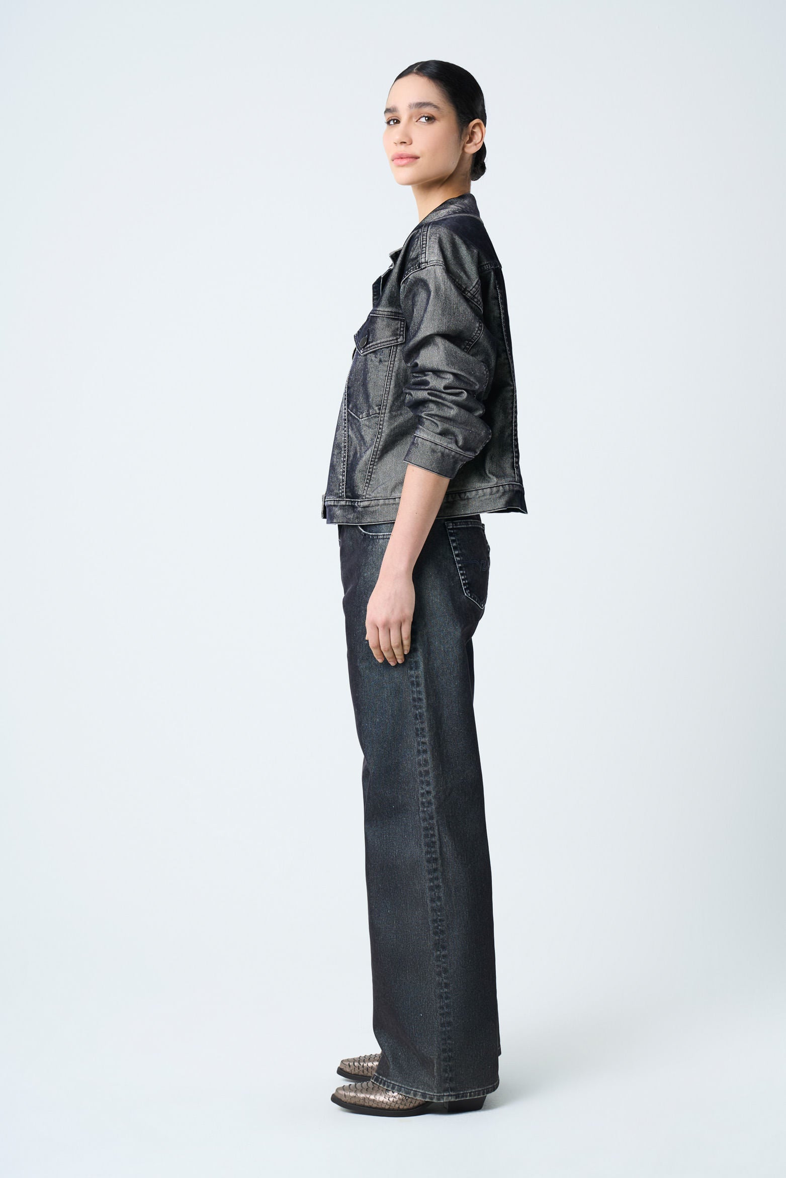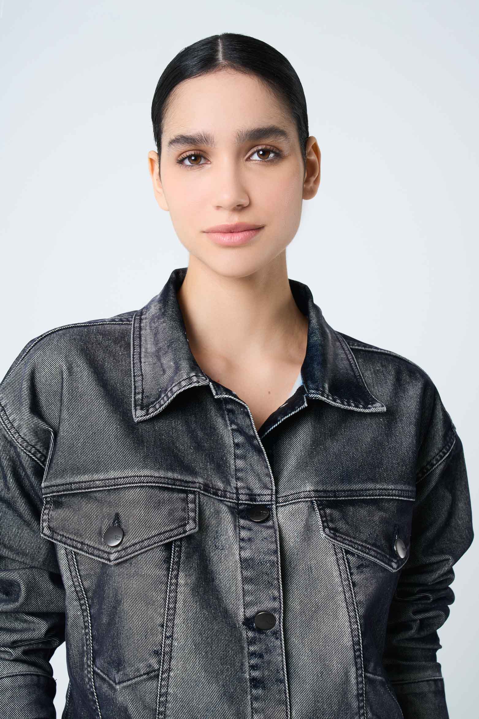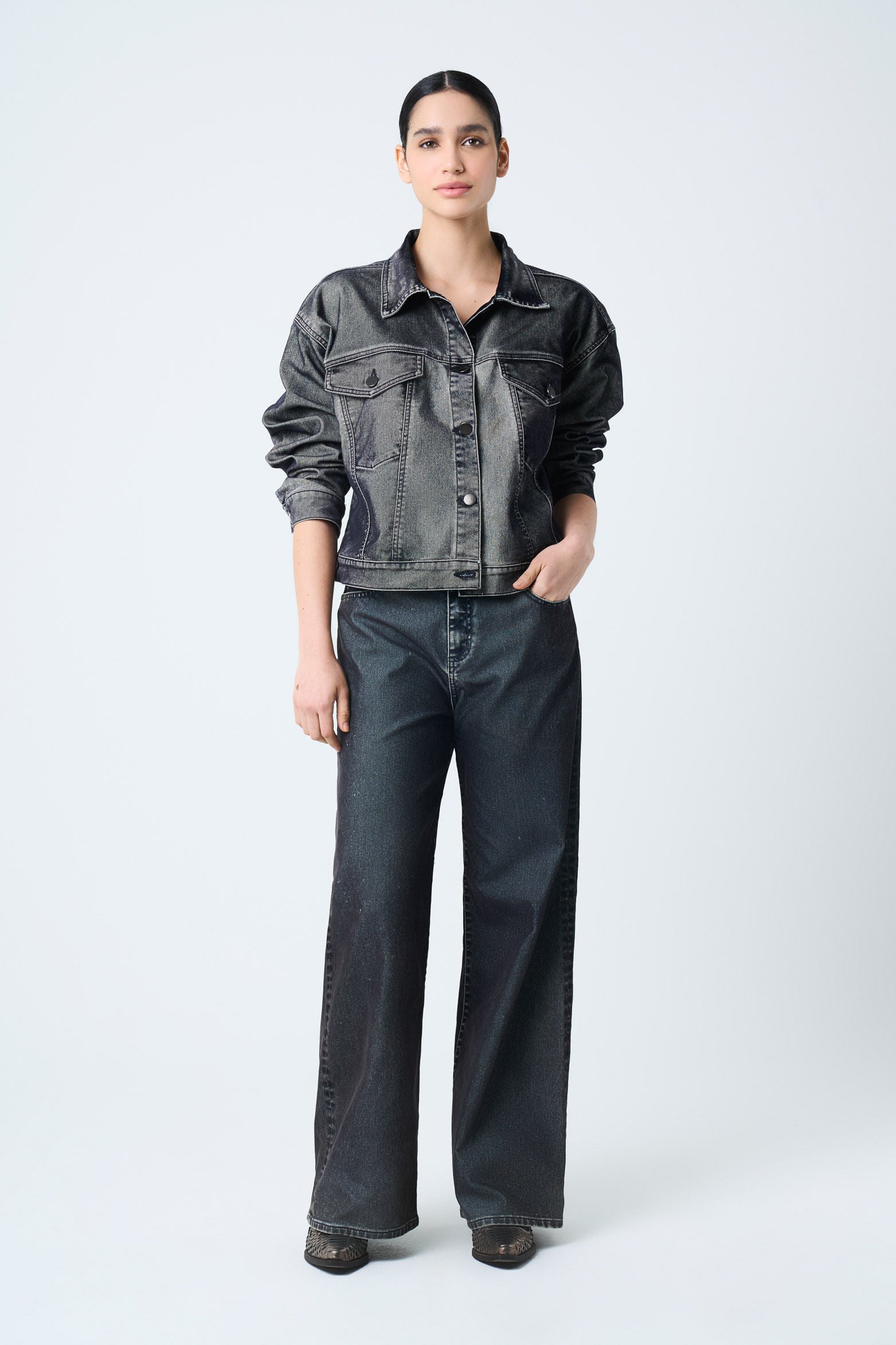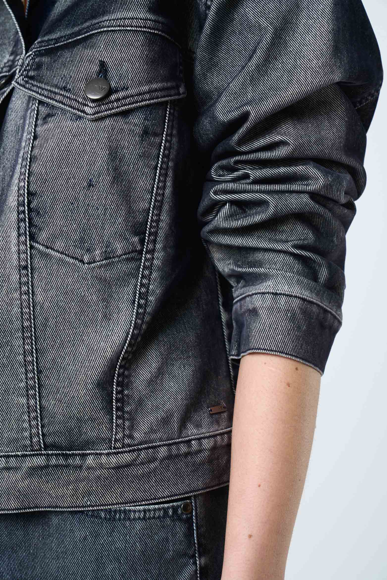 Bringing retro charm back to life, this jacket stands out with its lightweight, versatile silhouette. Made from velvet-effect denim fabric, it showcases innovation in materials and unmatched comfort. The oversized, relaxed fit with dropped shoulders and a shirt collar adds a contemporary touch. A must-have piece to elevate any look with sophistication and elegance.