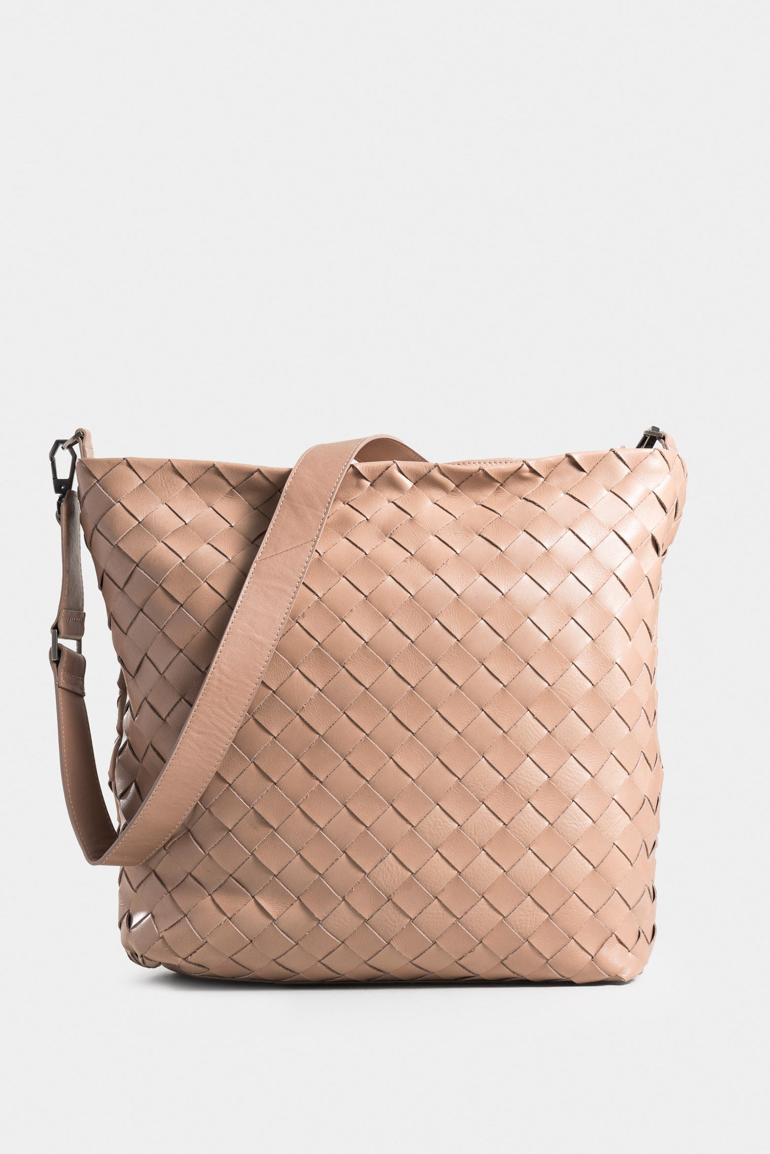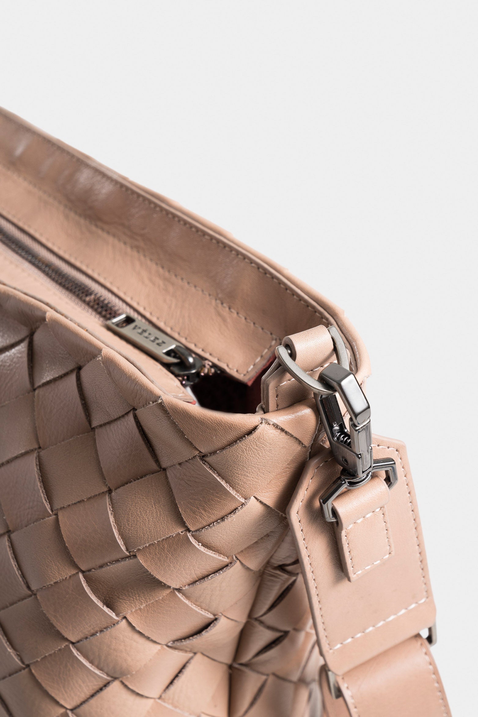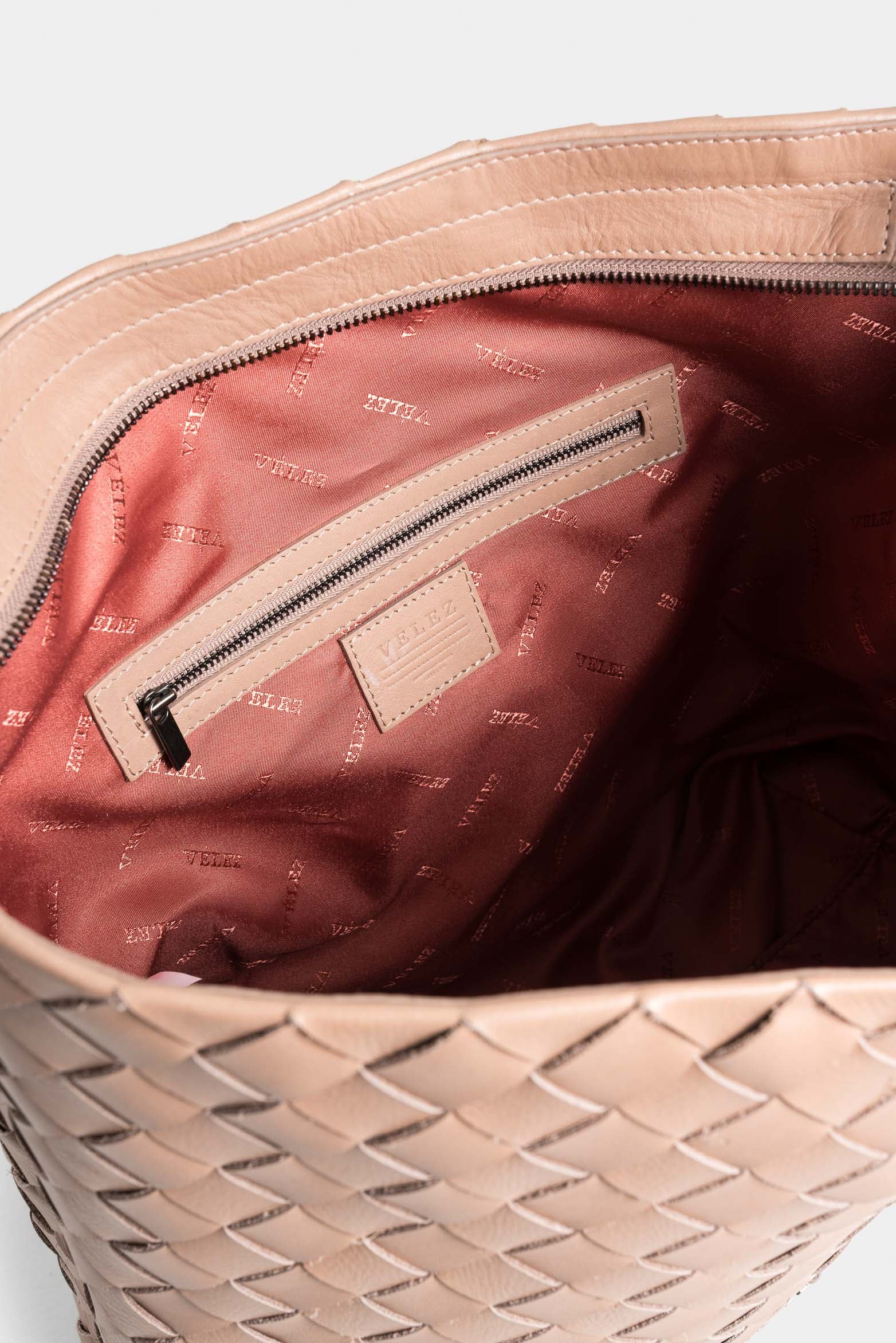 Our Venus shopping bag, crafted in soft leather with a tumbled grain and natural patina, showcases a deconstructed silhouette and the manual weaving on the front and back, elevating it to a luxury item. This reference features a zipper closure, internal compartments, Vélez metal hardware, and an adjustable smooth leather strap, detachable with carabiners, complete with a hexagonal ring for your gadgets. Dare to sport this ample and soberly designed accessory that adds a modern touch to various looks.