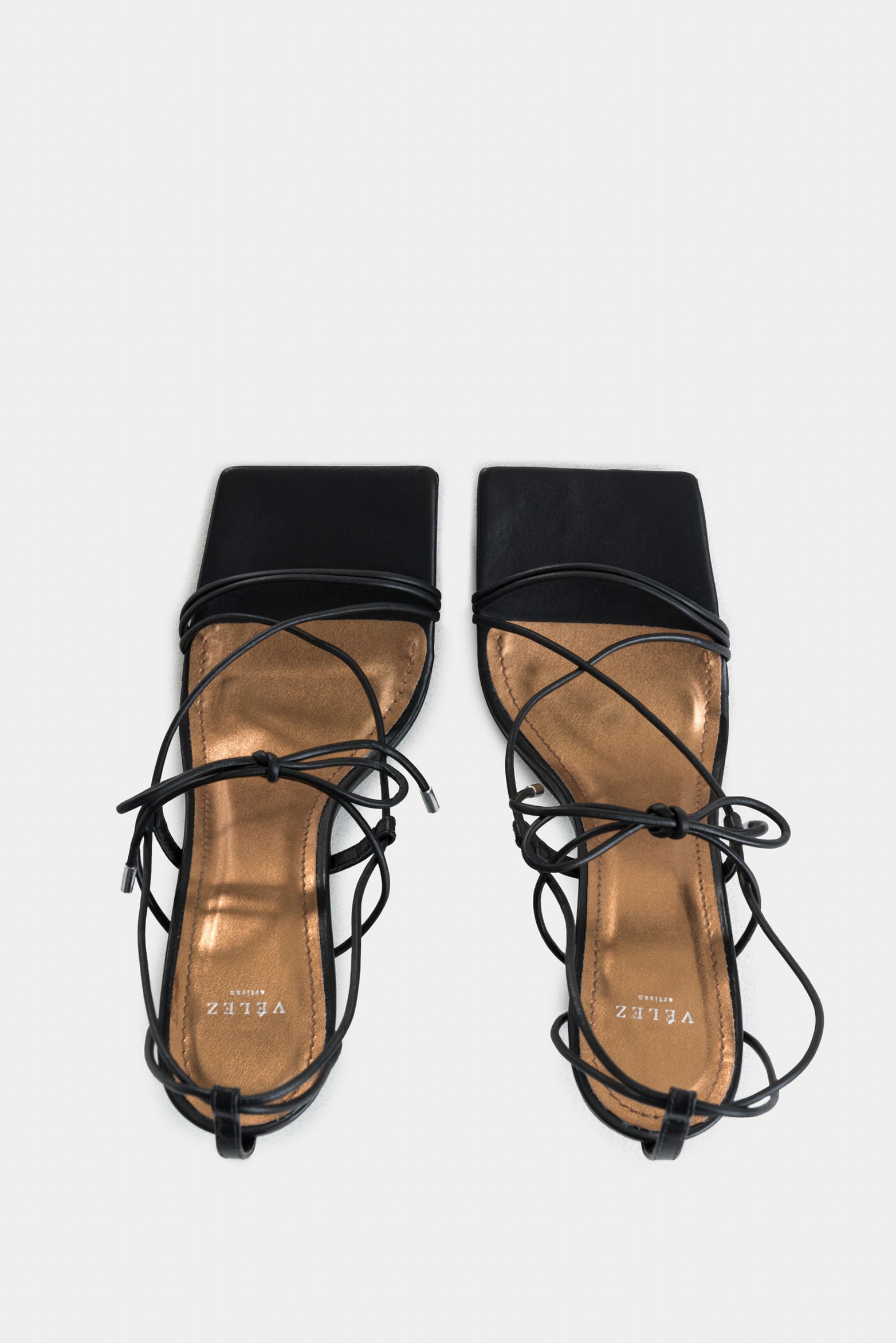 Infusing a touch of avant-garde with traditional craftsmanship, these heeled sandals encapsulate the natural beauty and versatility of Vélez DNA. Their knotted capellada with thin straps and metallic tips provides a contemporary essence to the silhouette. Inspired by nature, the texture evokes simplicity and delicacy, exalting an impeccable artisan finish. Perfect for pairing with flowing dresses or elevating a deconstructed outfit with your favorite jeans.