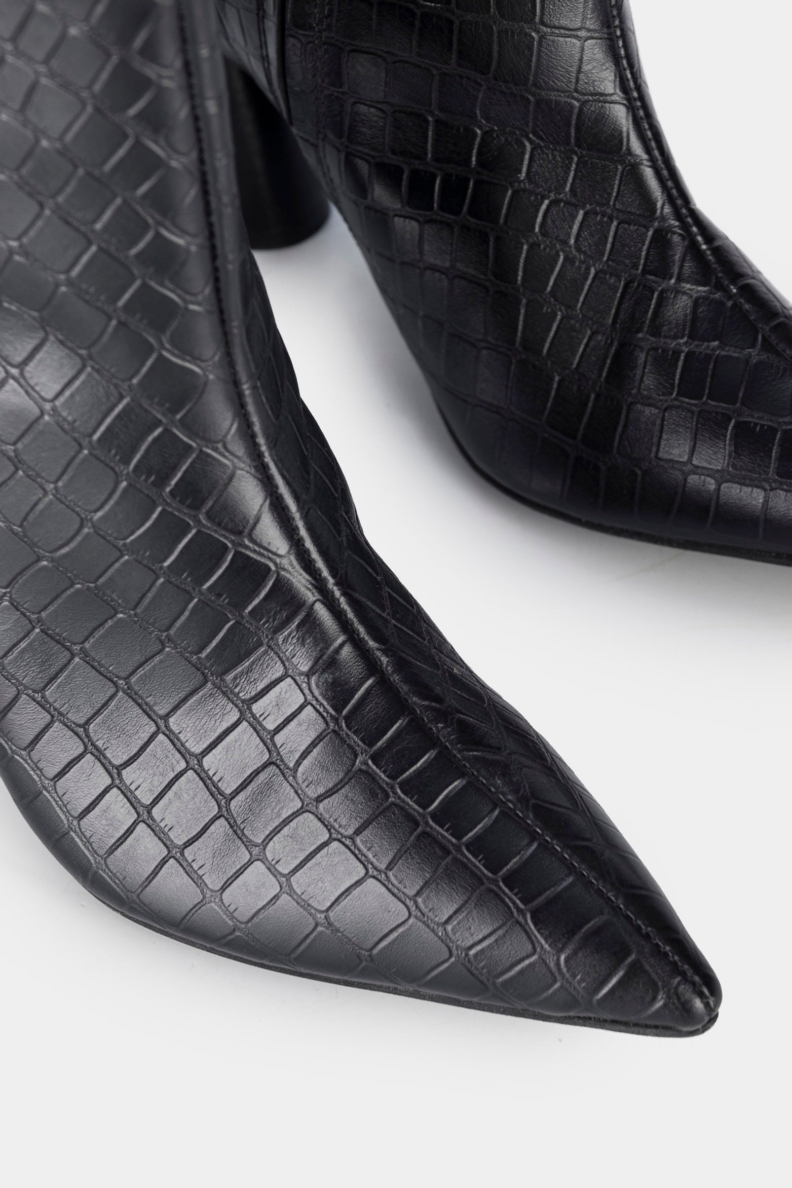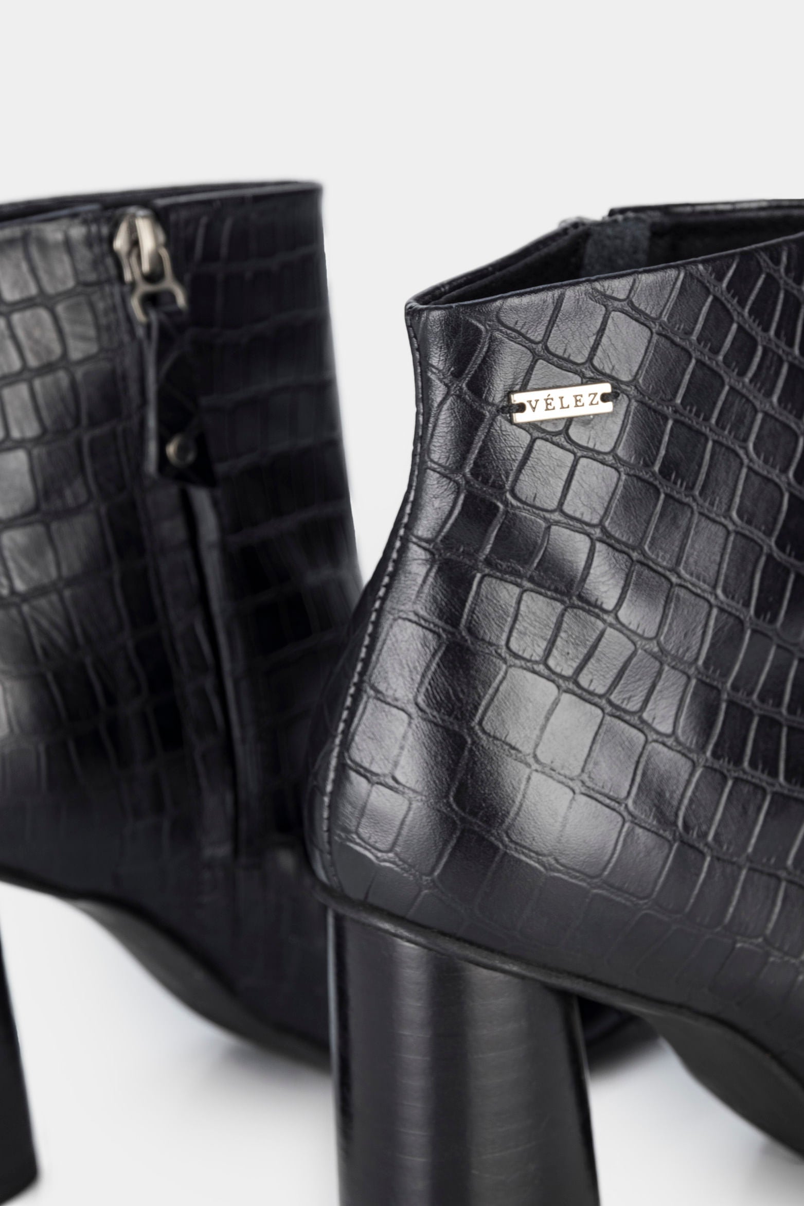 Show off the essence of the Vélez woman with sophisticated pieces and subtle details. These embossed leather ankle boots with shiny finish feature a classic, updated silhouette that’s perfect for wearing with dresses or a midi skirt for a totally captivating, modern look.