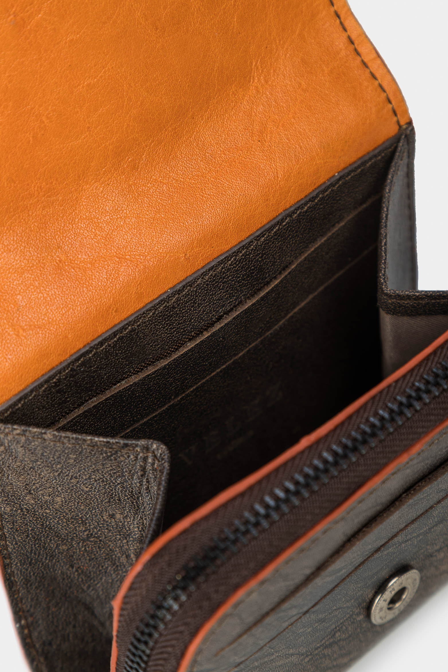 Carry your cards securely and easily! Our leather card holder with distressed effect offers a complete design that includes a zippered pocket for cards and coins, card slots and belt loop on the back to wear it on your belt. This piece highlights versatile fashion and is perfect for everyday use.