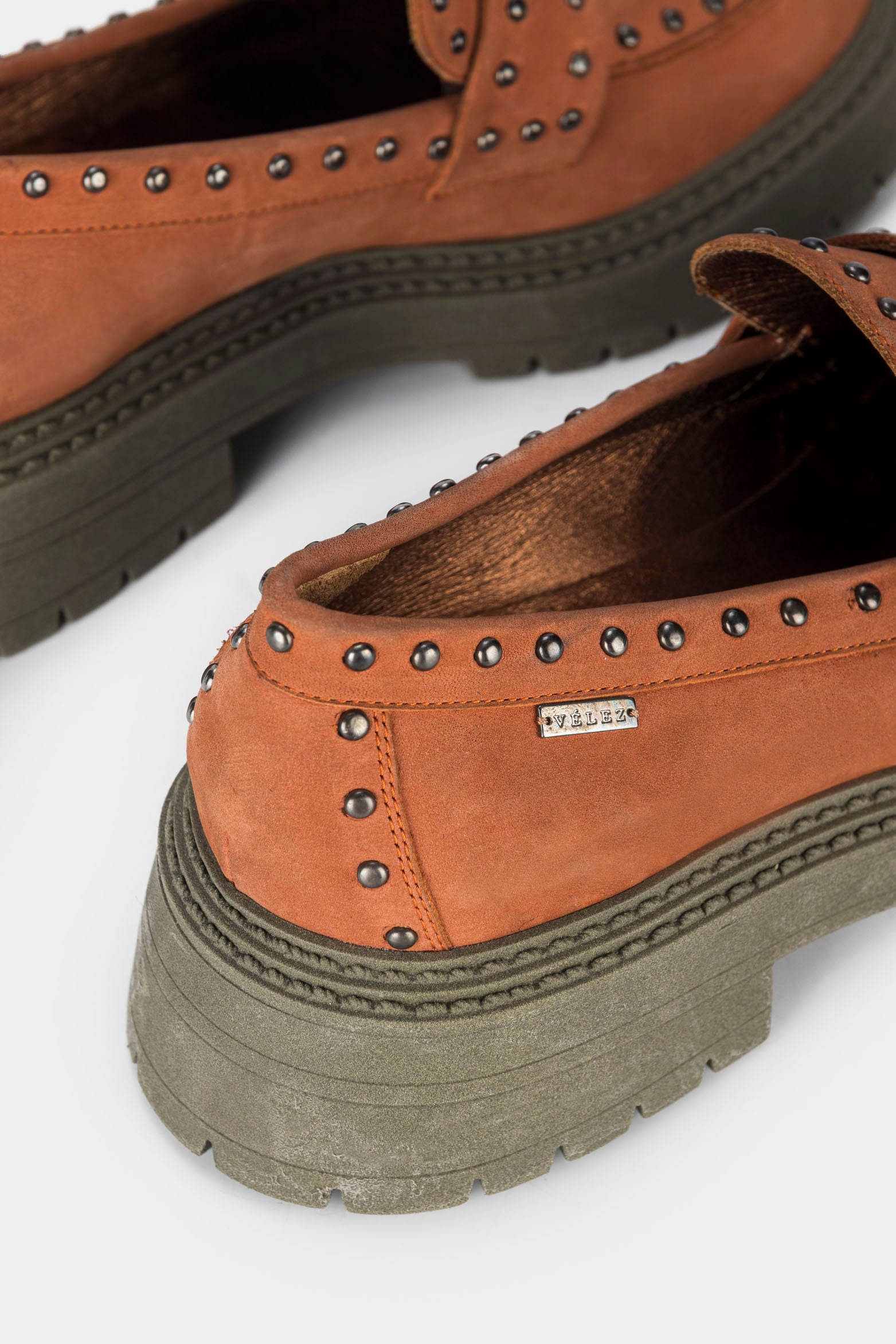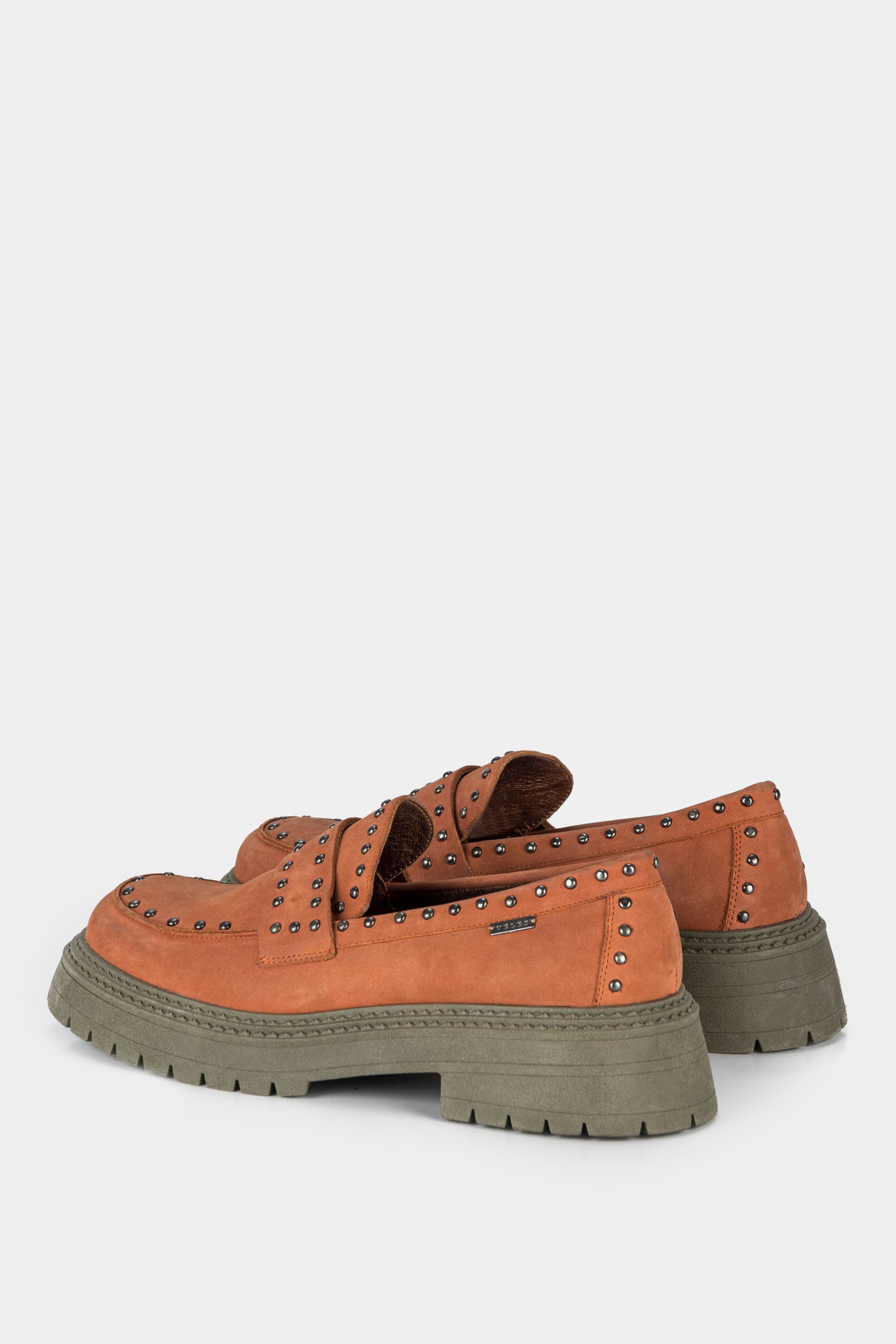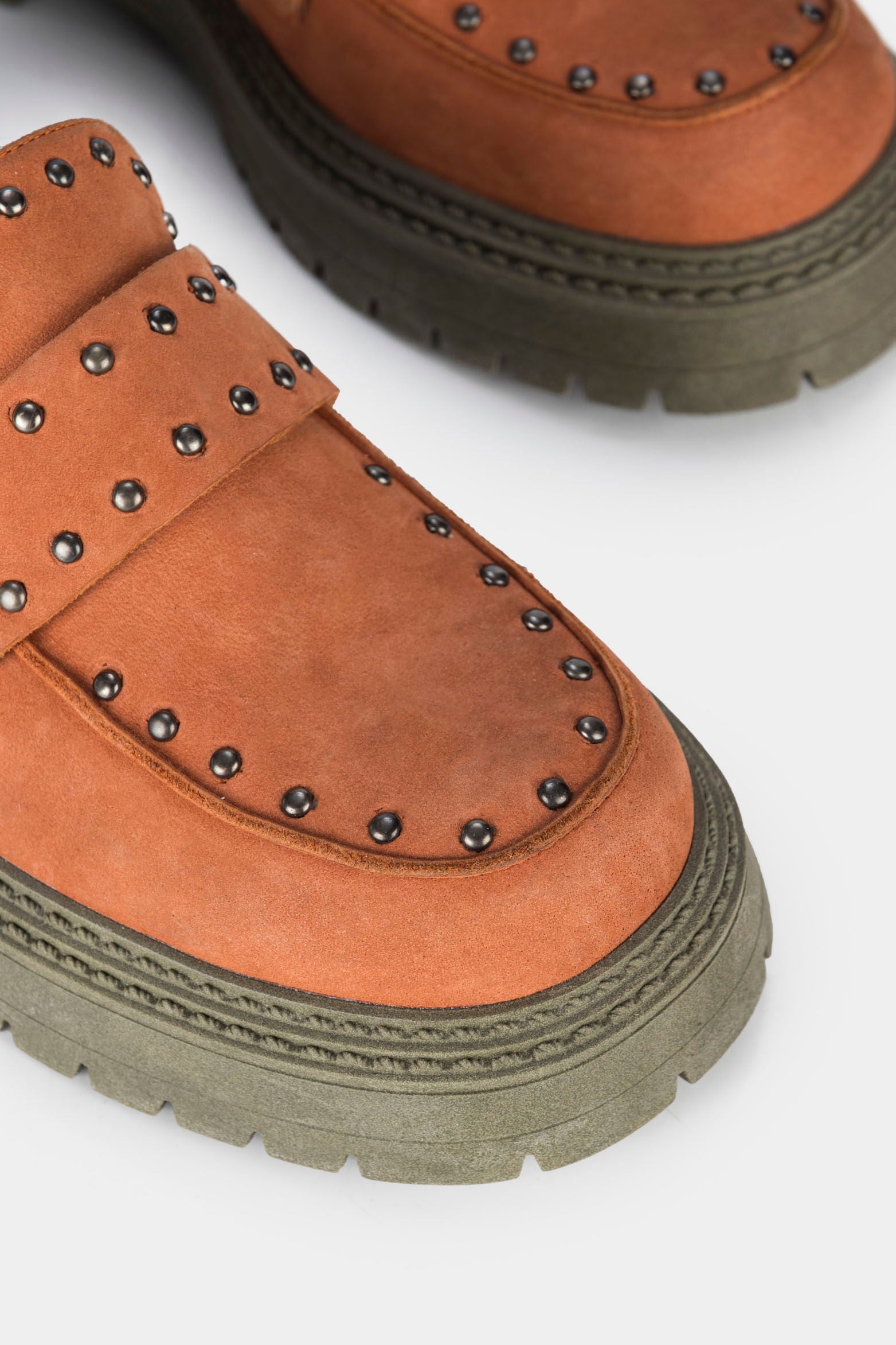 Designed for a bold woman looking to flaunt innovative and versatile looks, our suede loafers feature studs on the toe and sides and chunky TR soles that make the design stand out. Wear them to create a smart casual look, paired with pants and understated pieces, or with jeans, a jacket and a shoulder bag for a fresher, more relaxed look.