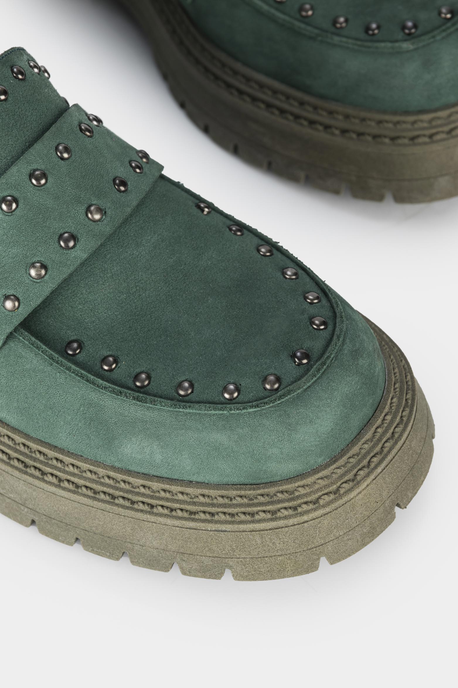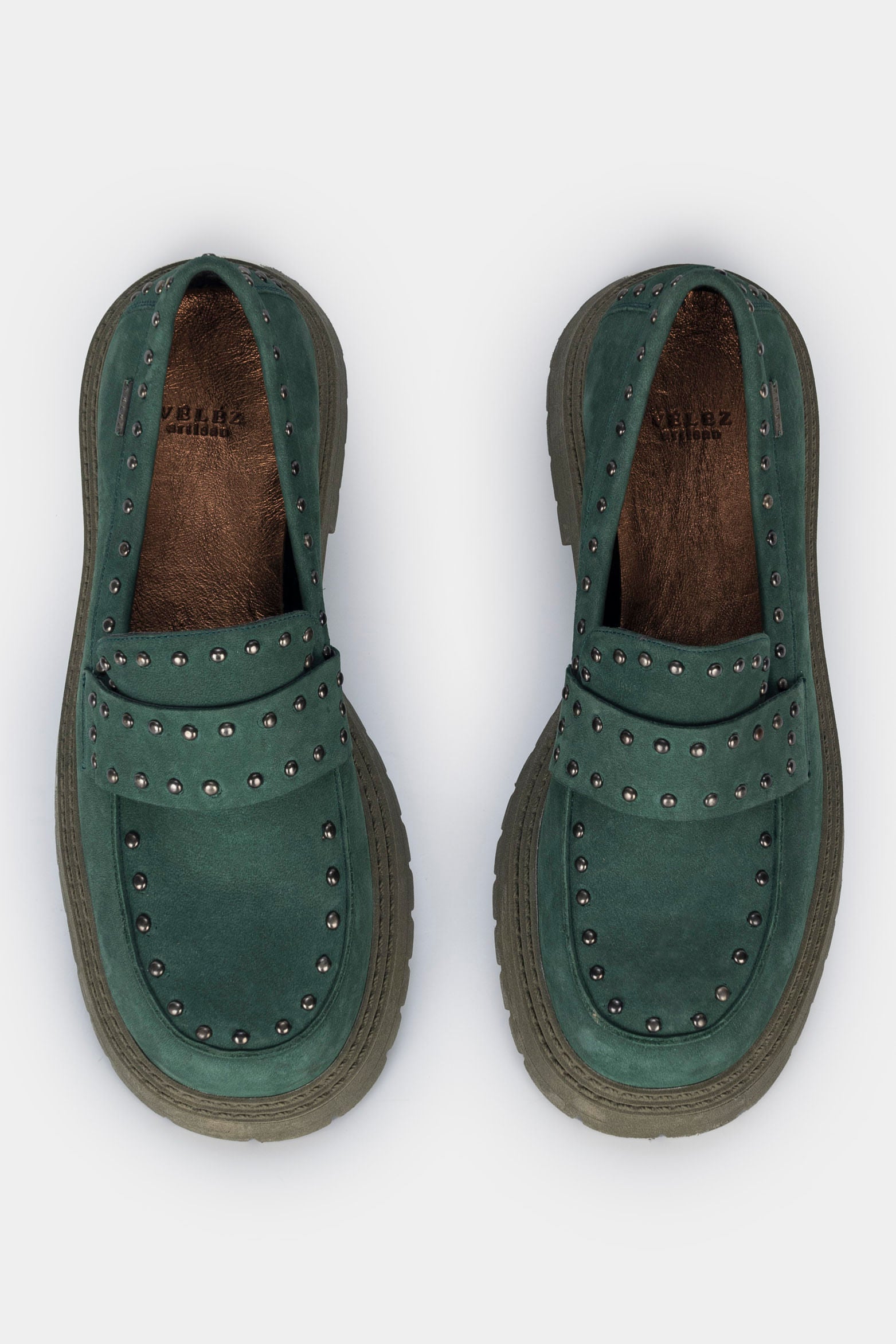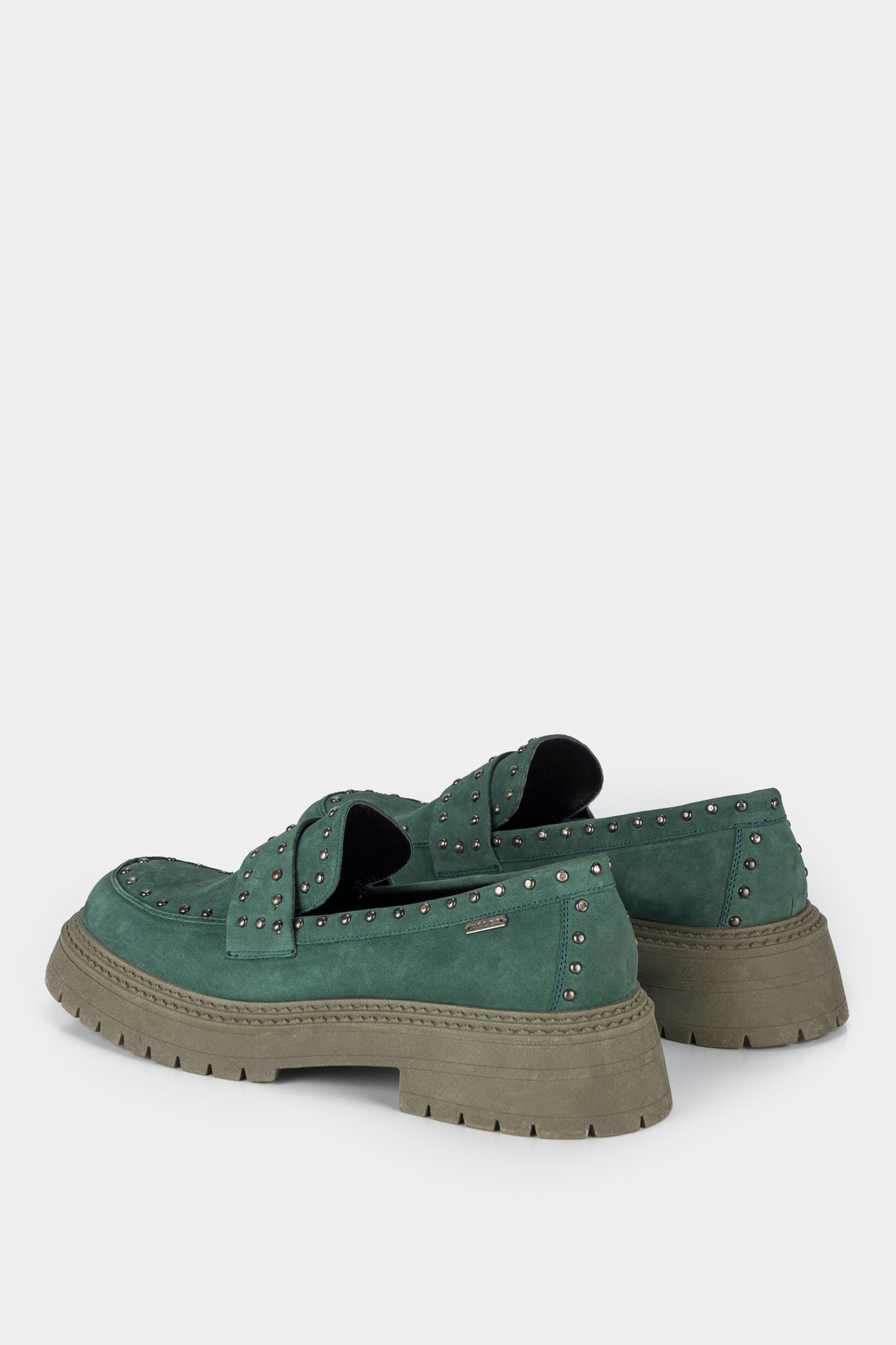 Designed for a bold woman looking to flaunt innovative and versatile looks, our suede loafers feature studs on the toe and sides and chunky TR soles that make the design stand out. Wear them to create a smart casual look, paired with pants and understated pieces, or with jeans, a jacket and a shoulder bag for a fresher, more relaxed look.