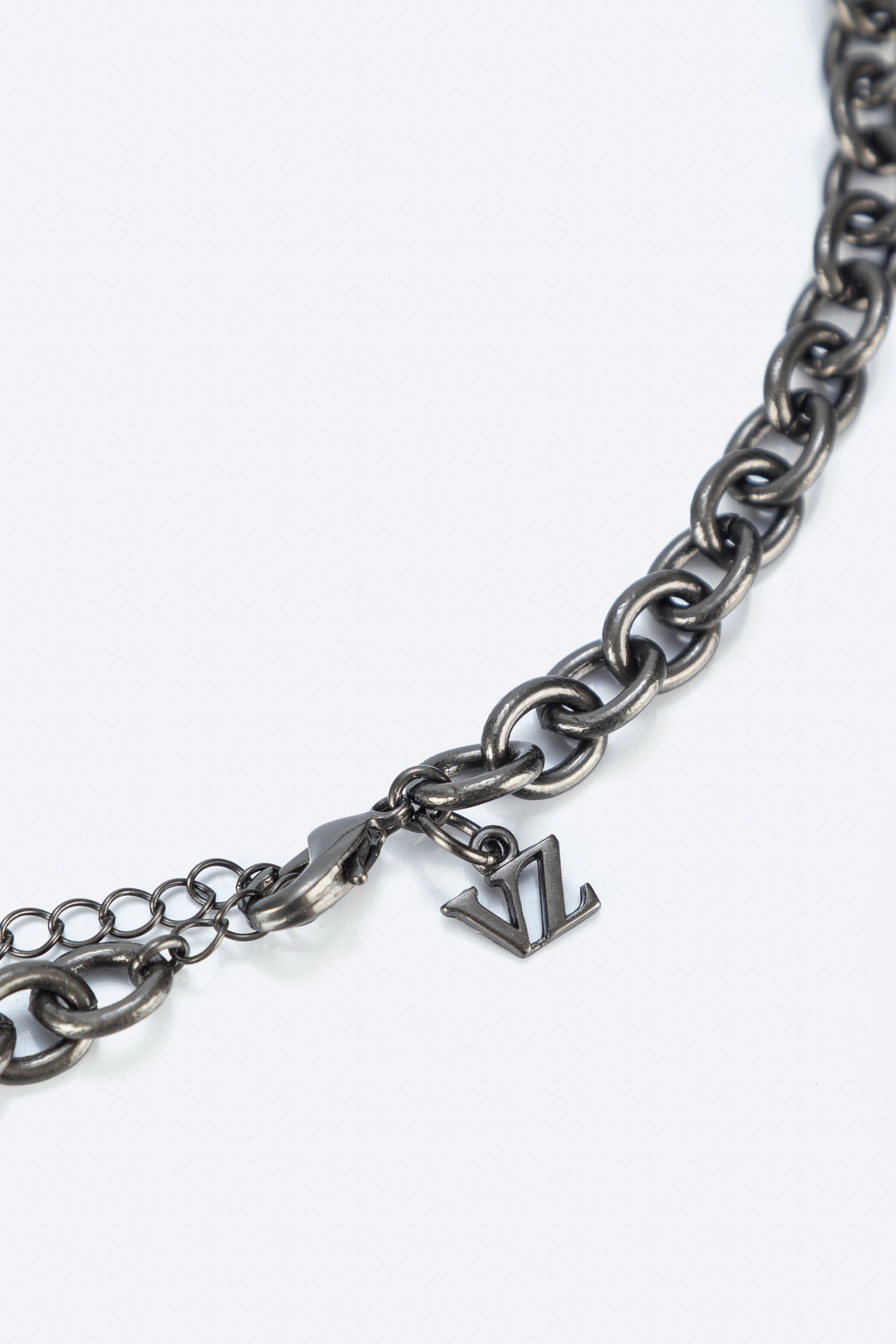 The basics of any outfit are elevated with colorful and layering accessories. Our chain necklace, crafted in a mix of different finishes between matte gold and contrasting nickel-plated, embodies the fierce desire to elevate colors and retro silhouettes. With metal charms, colorful resins and VZ charm branding, this accessory will take center stage in your casual looks.