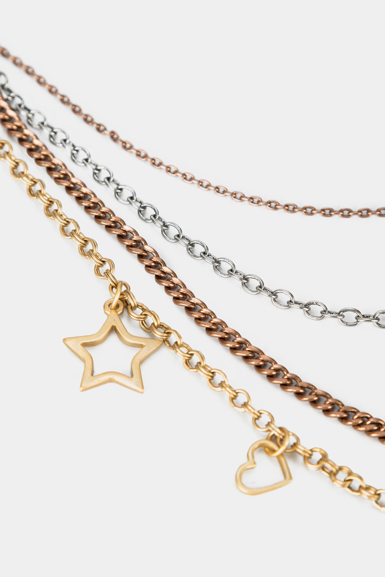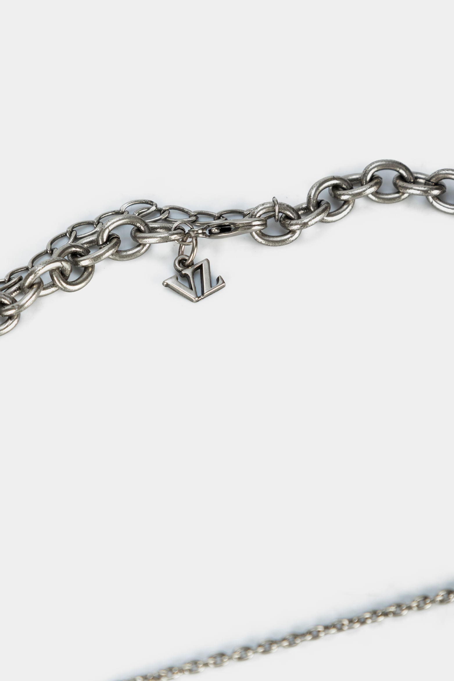 The basics of any outfit are elevated with colorful and layering accessories. Our chain necklace, crafted in a mix of different finishes between matte gold and contrasting nickel-plated, embodies the fierce desire to elevate colors and retro silhouettes. With metal charms, colorful resins and VZ charm branding, this accessory will take center stage in your casual looks.