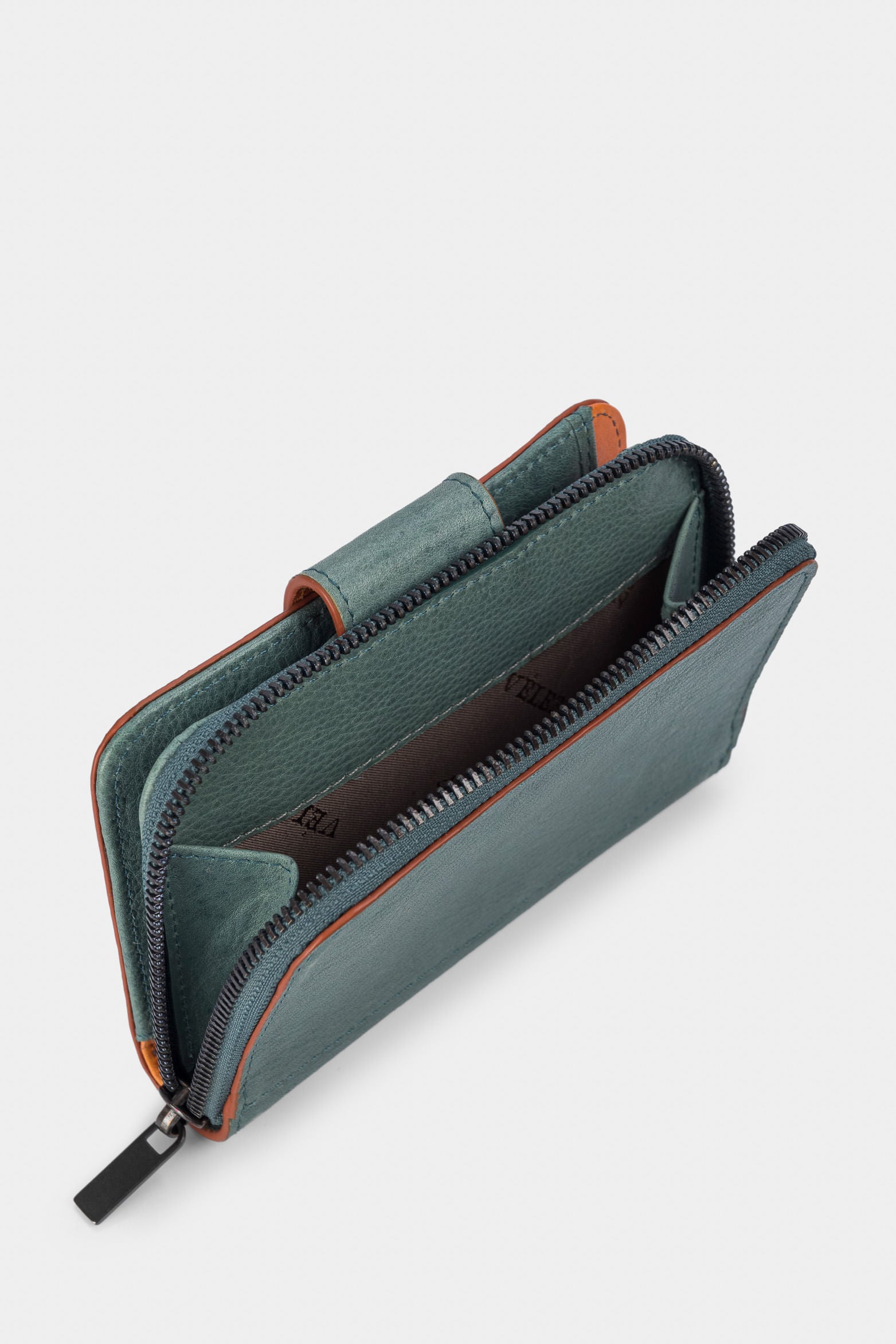Women’s Dijon Wallet in Aquamarine Leather with Color Contrast