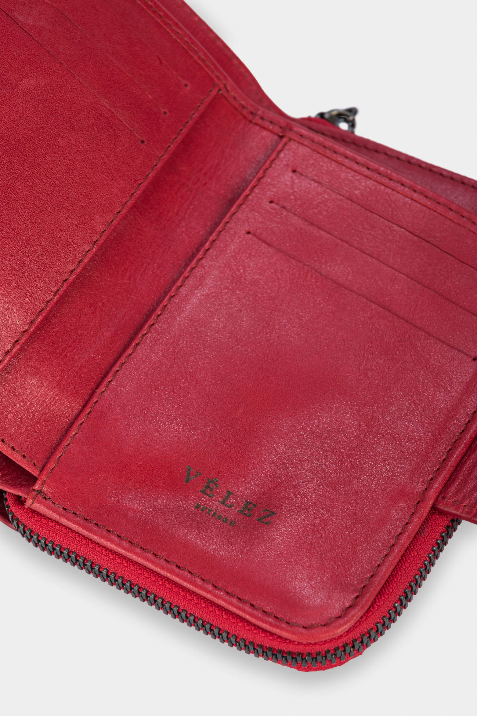 Inspired by the Vélez woman who seeks functionality and style in her accessories, our wallet offers a practical, comprehensive solution to carry your essentials on your day-to-day. Made of soft leather with subtle shine, this item features a bill pocket, six card slots, pockets to store IDs, coin pocket and RFID technology to protect your data and cards. Plus, its snap closure and color accents complement the design and make it the perfect wallet to accompany a minimalistic look.