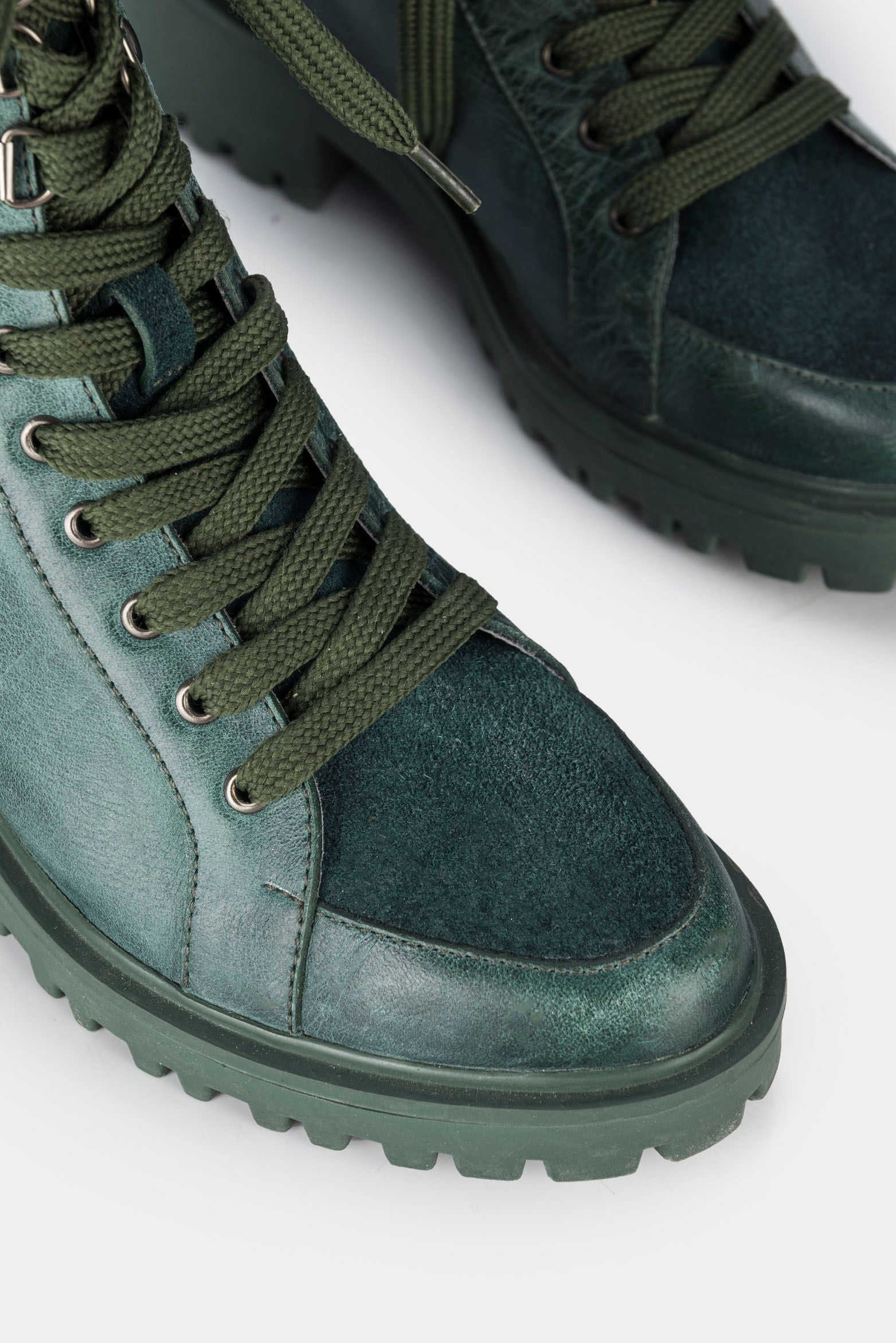 Adventurous inspiration transforms the style of hiking boots to take them into the casual universe. Our ankle boots made from leather and hide exude contemporary style through their chunky lug sole and contrasting details, and thanks to their lace-up fastening, they provide versatile comfort too. Wear them to complement a casual outfit with modern and bold style, with on-trend pieces.