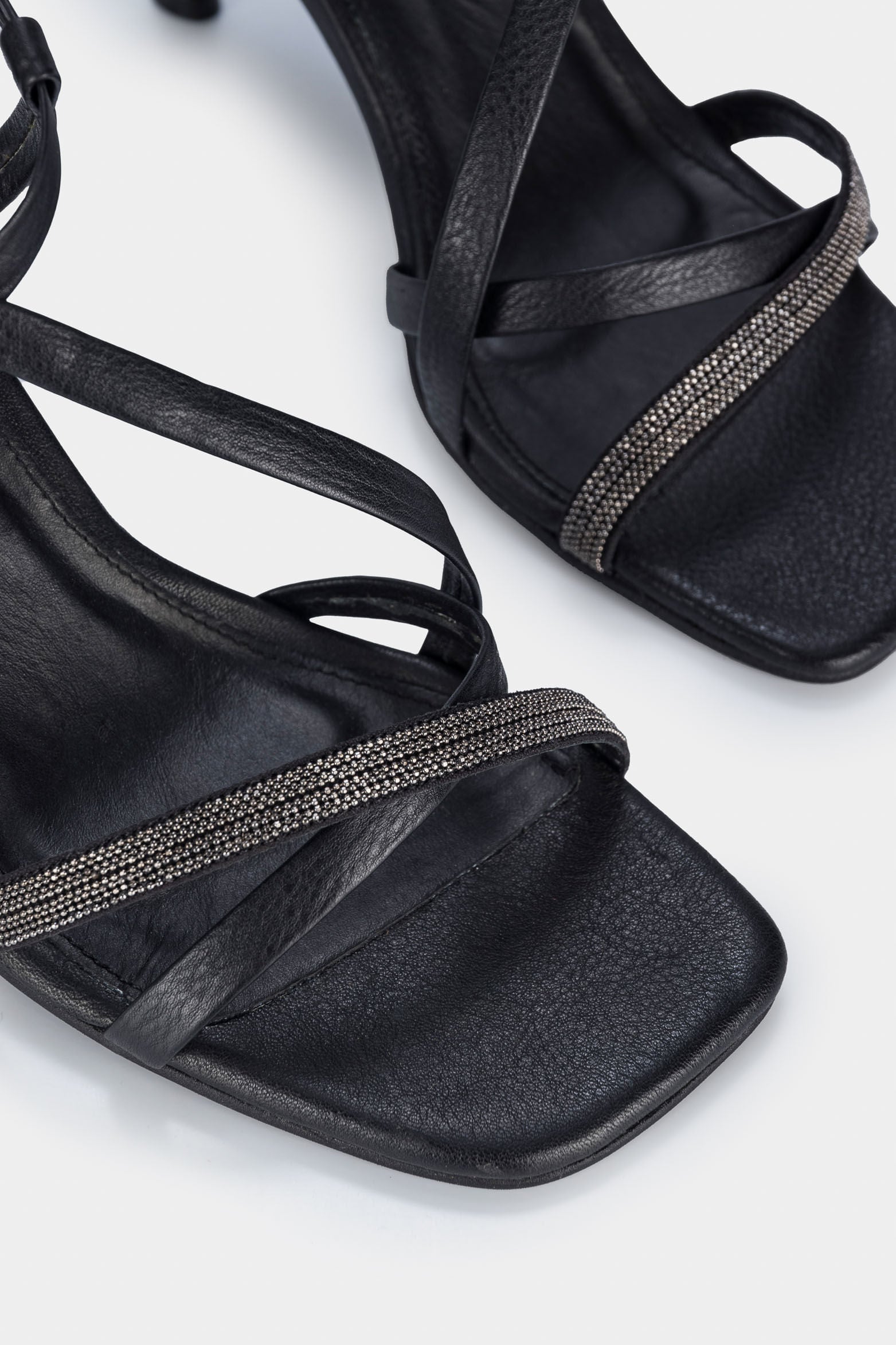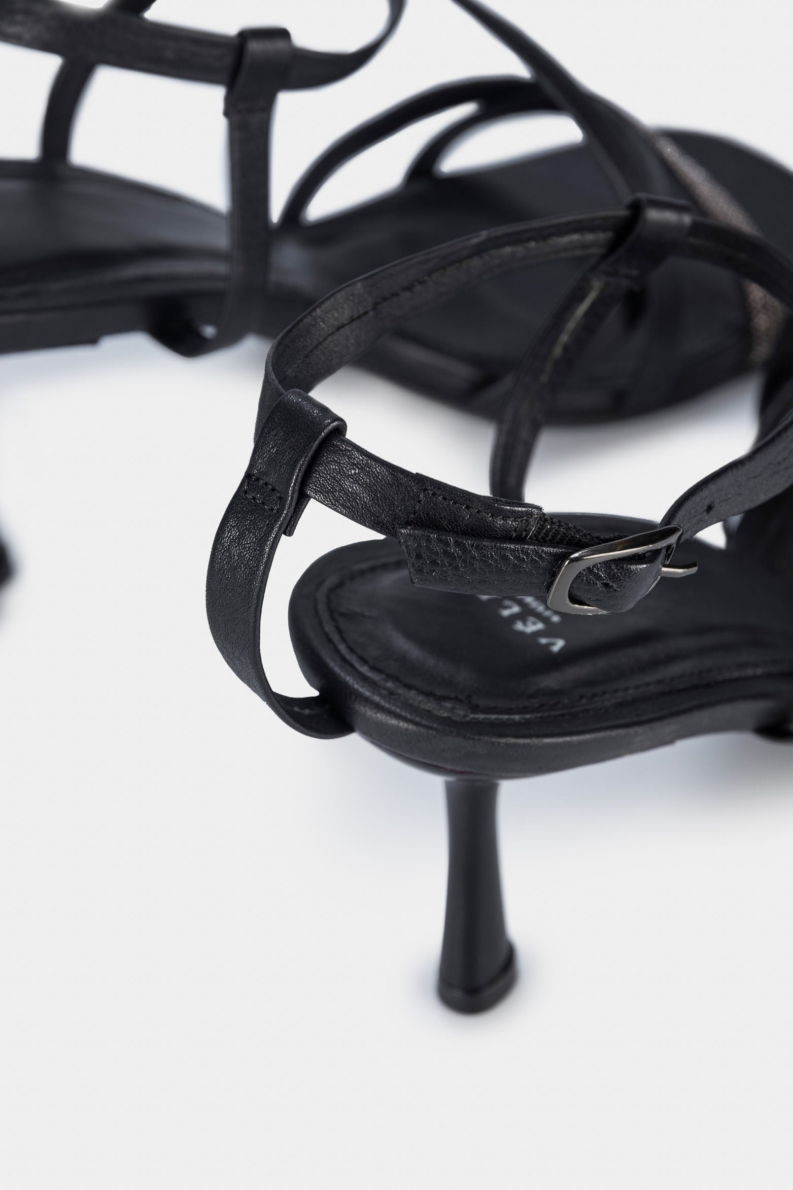 Our leather heels with decorative appliqué are inspired by a daring and sophisticated woman. Featuring an ankle strap with buckle and pull, this style adds an ultra-feminine touch to your evening looks. Pair them with jeans and a leather jacket, or with oversized pieces like dresses for casual day outfits.