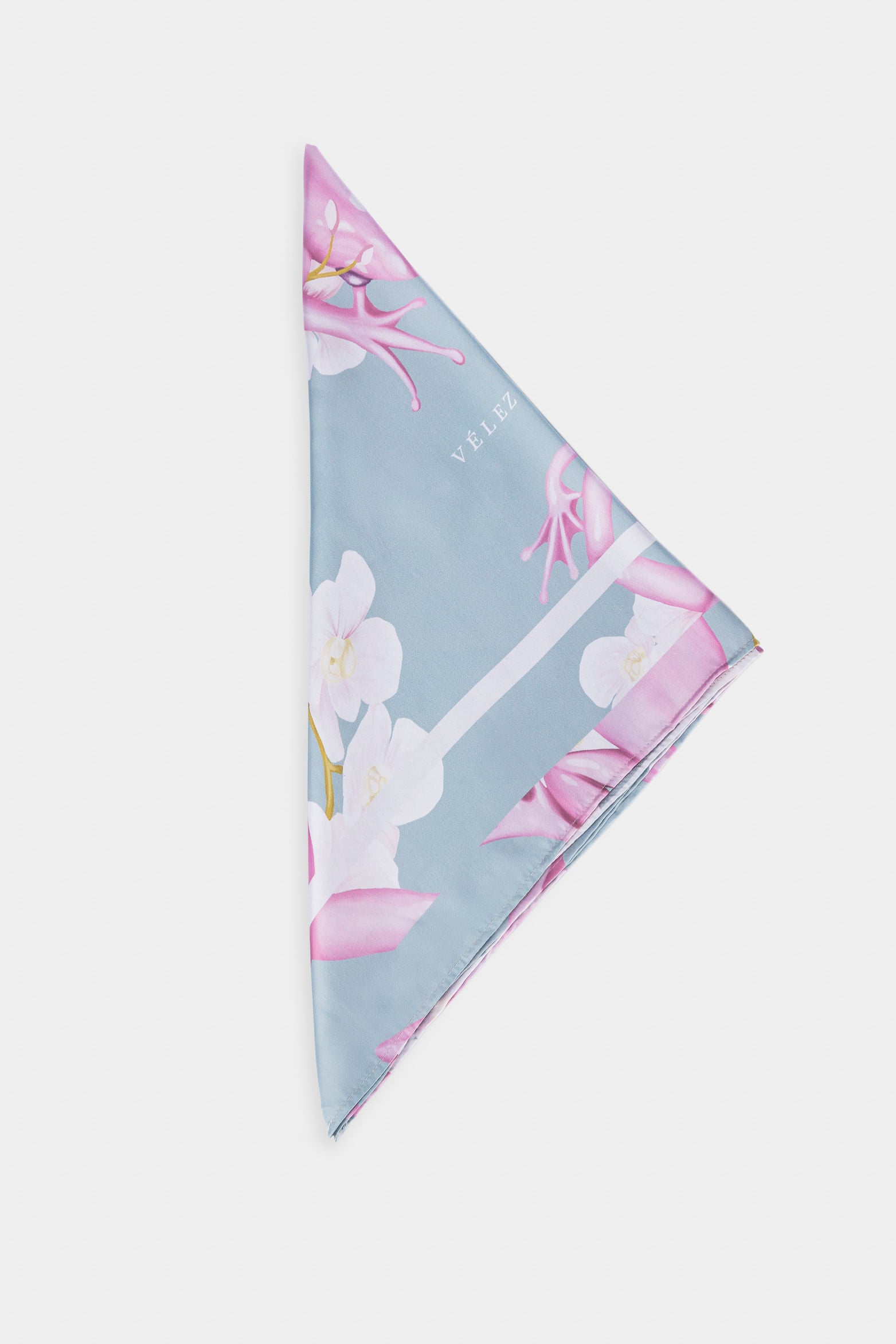 The richness of our flora and fauna is reflected in the print of this small scarf. It pays homage to biodiversity with harmonious, colorful frog and orchid motifs. Made of flat woven fabric with a sustainable base that uses recycled polyester from PET water bottles, its nature-inspired essence invites us to honor the environment. It’s the perfect accessory to complete your looks with a pop of color, texture and versatility. Use it as a head scarf, neck scarf, around your bag or wrist and explore different knotting combinations.