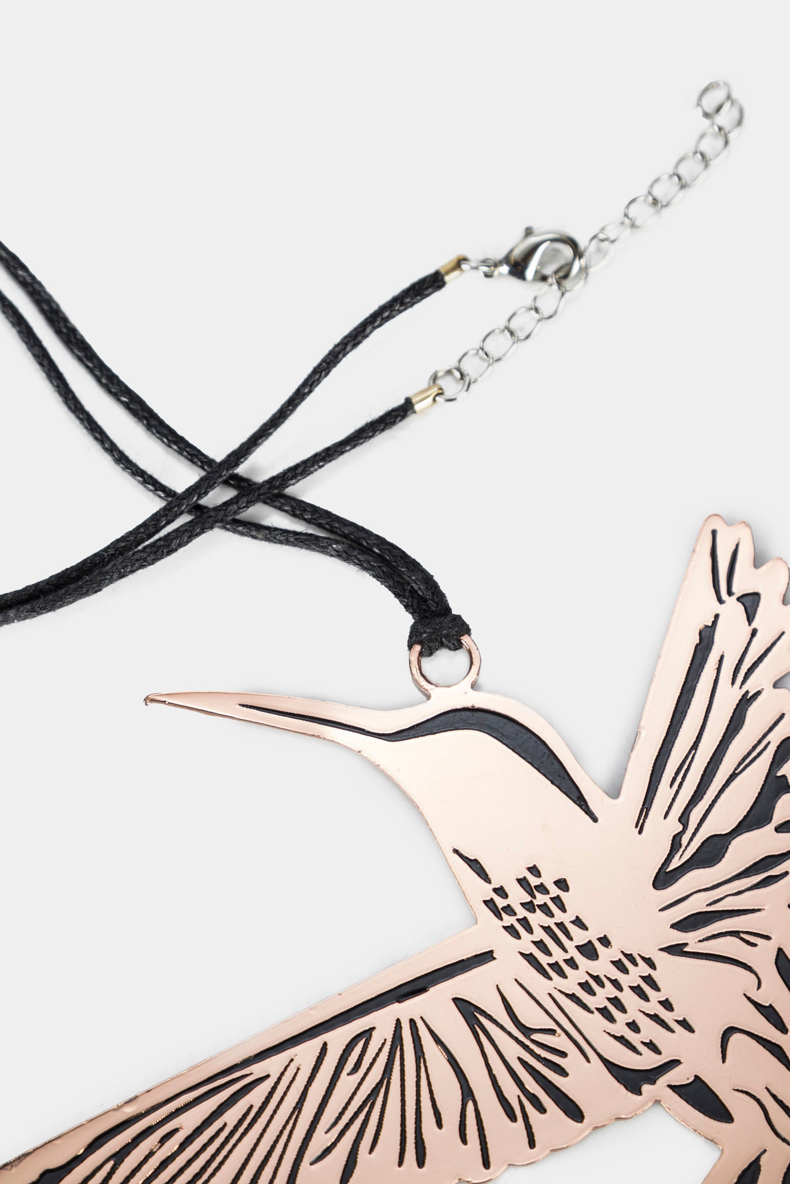 Fashion continues to draw inspiration from fauna, borrowing shapes and textures that are transformed into accessories designed to be the centerpiece of any look. Our oversized metallic charm necklace features contrast resin embossing that highlights the hummingbird pendant and elevates the beauty of its shapes and lines. Plus, its waxed cord with metallic tips and lobster clasp closure make it a secure, practical accessory.