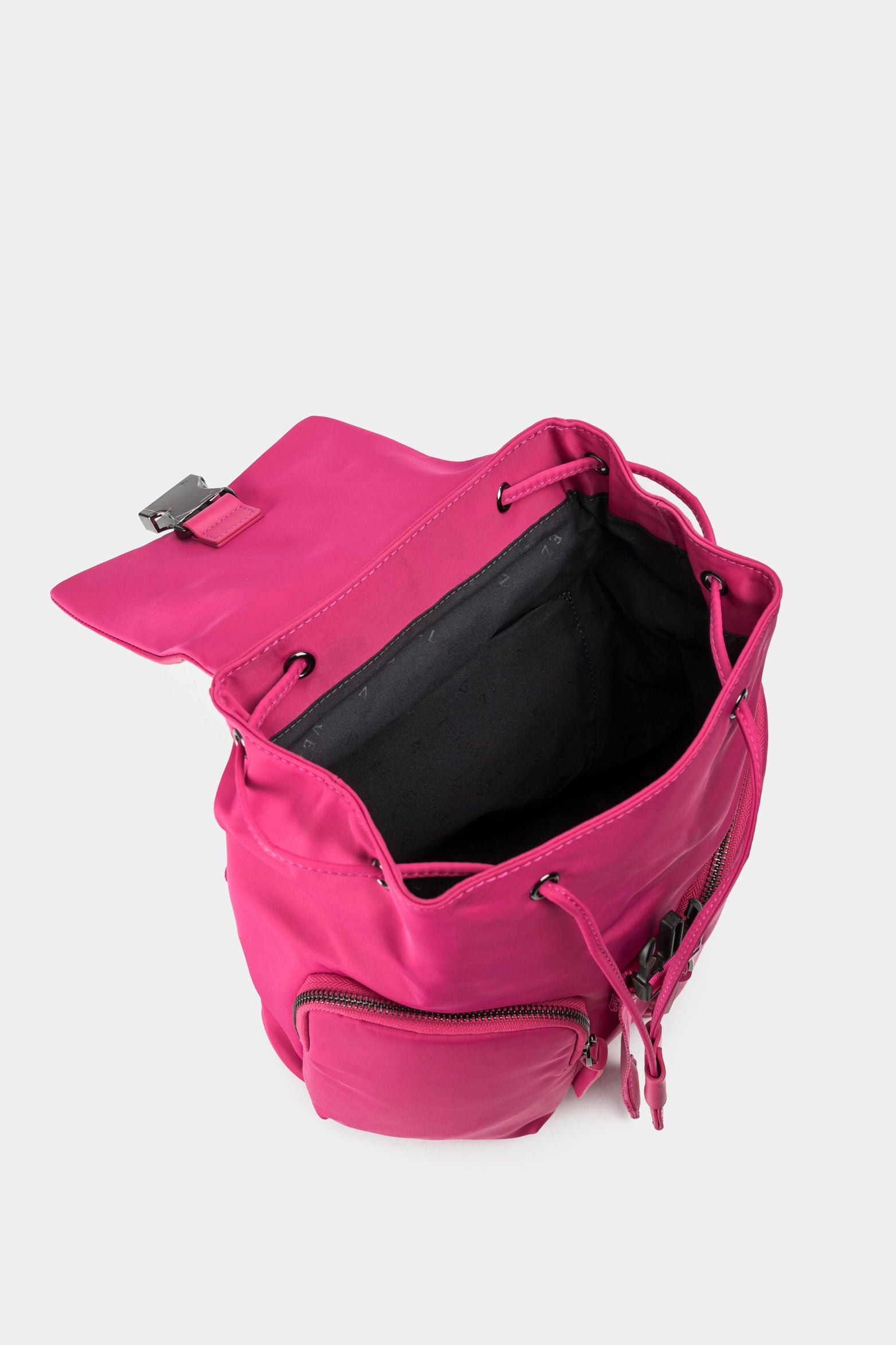 Inspired by an effortlessly chic, practical and youthful woman who draws daily inspiration from fashion, our canvas and leather backpack features multiple features that will provide comfort when carrying your belongings while maintaining your sophisticated style. With front pockets, adjustable straps, a leather handle and a leather flap with metal buckle, this piece combines versatility with style.