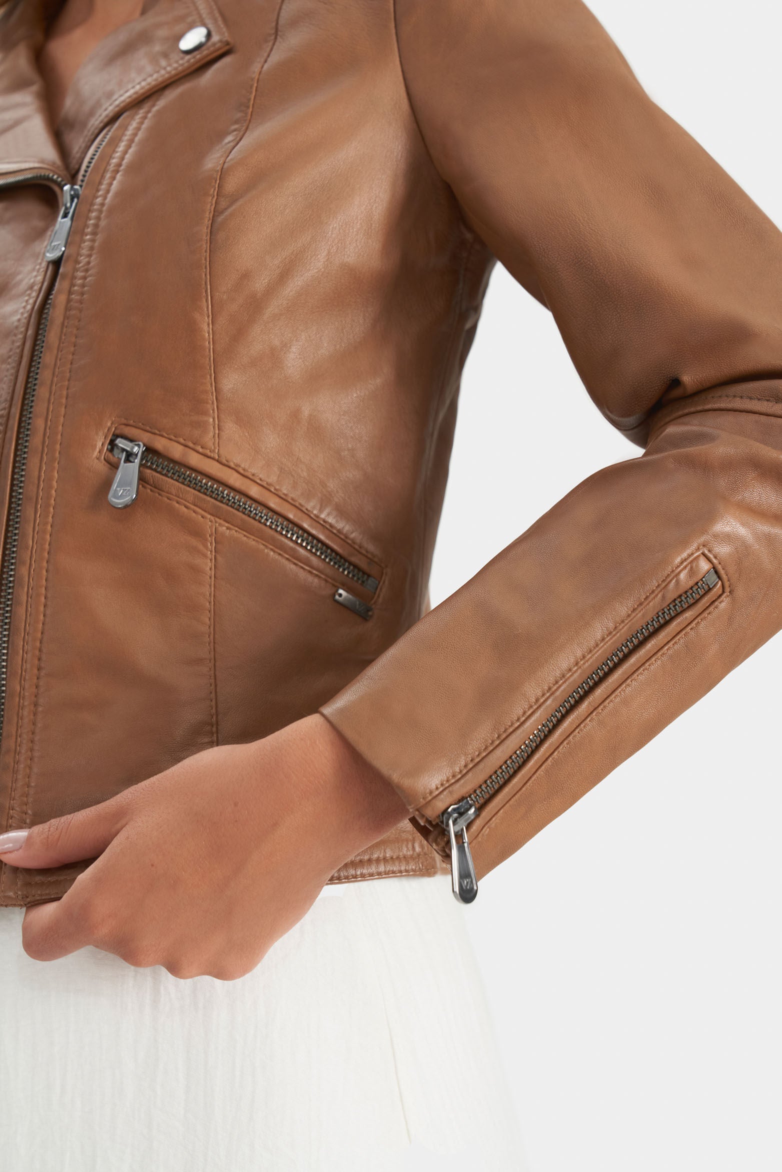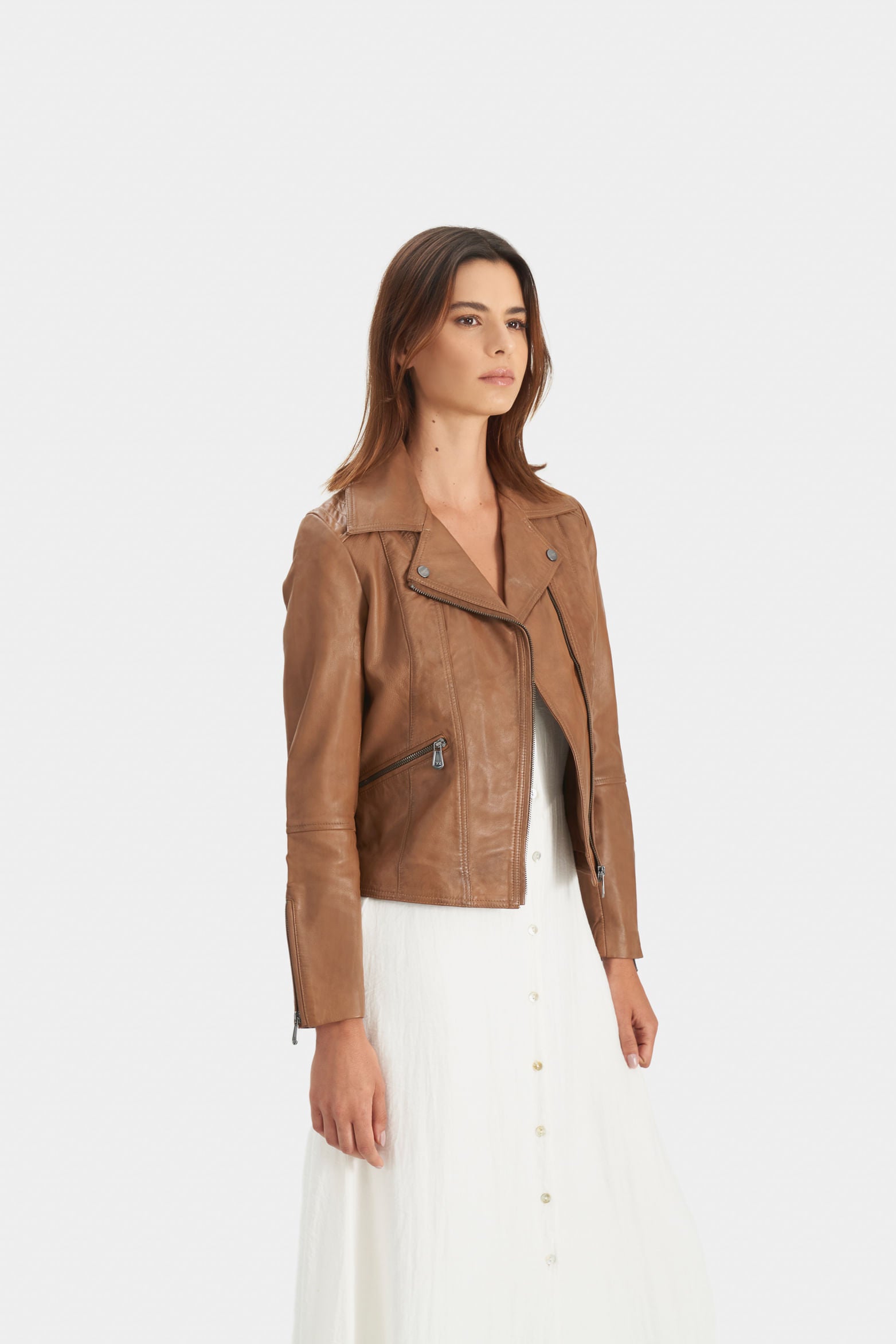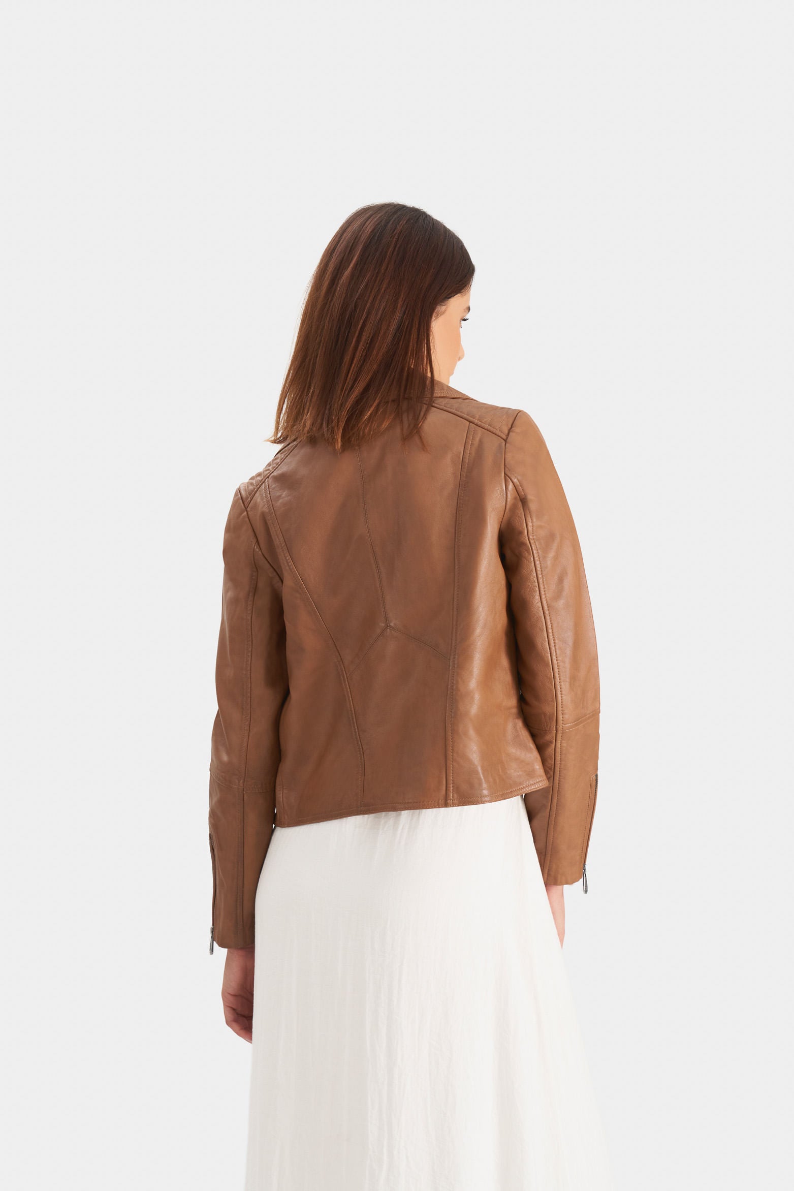 The biker silhouette is a must-have from pop culture that gives your looks character. Its figure-flattering lines are versatile and adaptable to multiple occasions, always with a chic and contemporary touch. This slim-fit silhouette adapts to your figure, with a slight quilted detail with diagonal shoulder seams for a distinctive touch.
