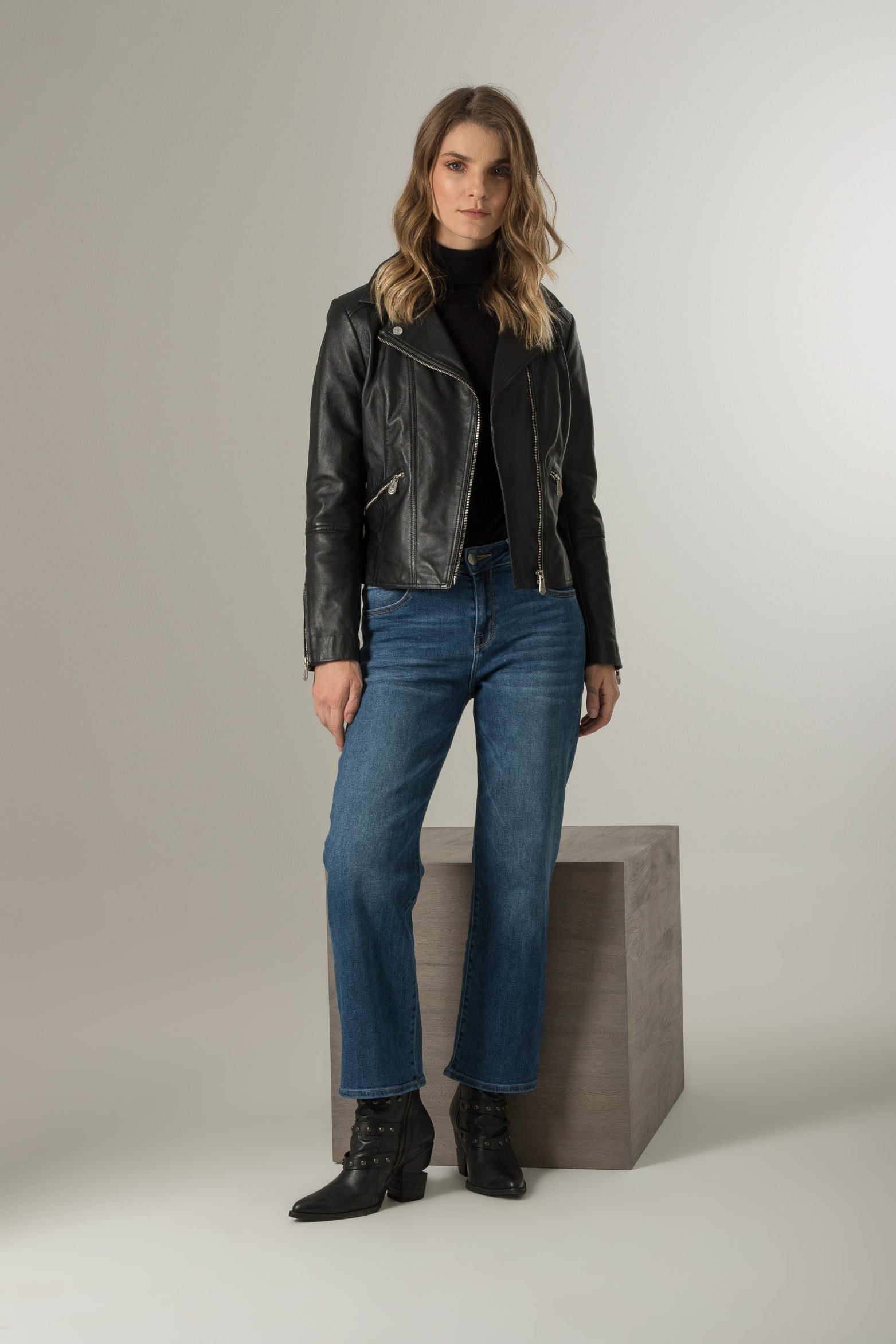 Women’s Island Leather Biker Jacket in Black with Zippers