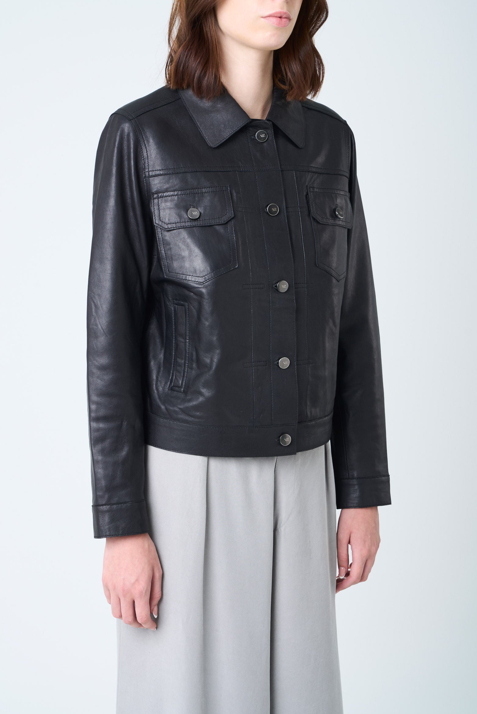 It channels sophistication with a subtle hint of rebellion. Perfect for the office or a weekend look, it blends artisanal craft and modern edge in ultra-soft, smooth lambskin leather. Its semi-fitted cut and contemporary details are complemented by a sustainable recycled-polyester lining. More than elegant, this piece is a conscious choice for a timeless, refined style.