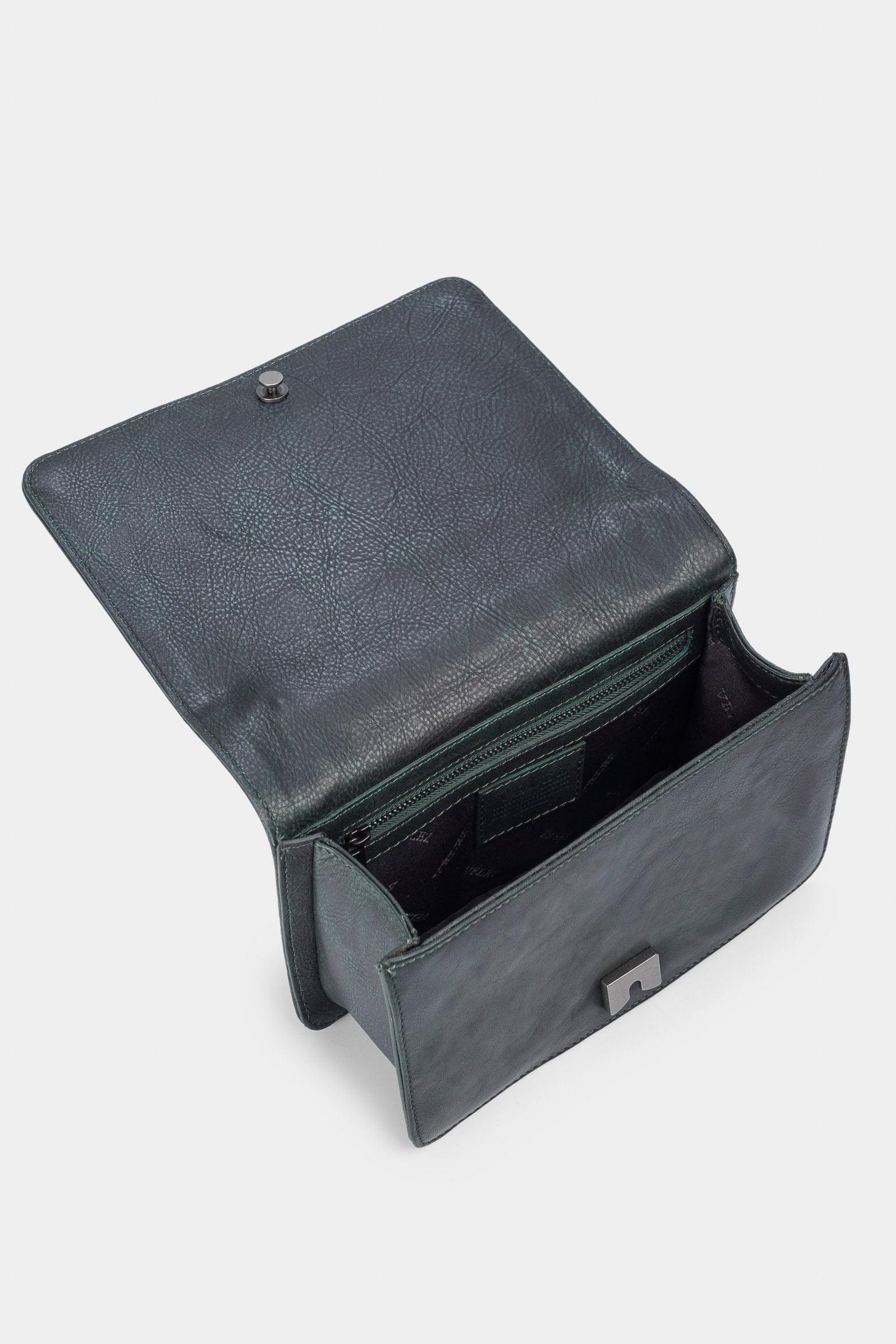 Women’s Lisa Mini Shoulder Handbags in Green Leather with Handcrafted Effect