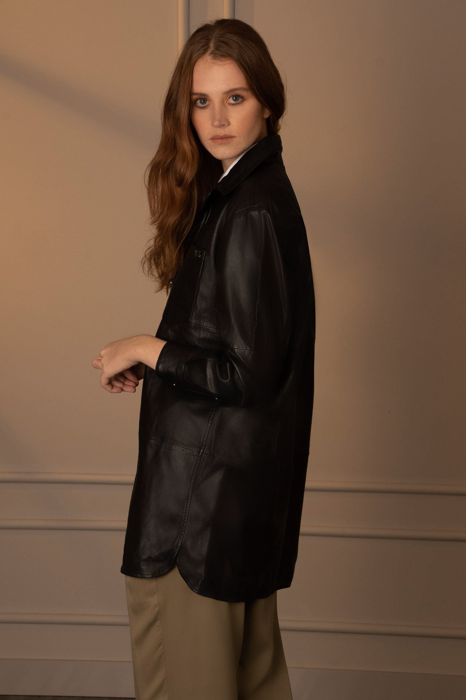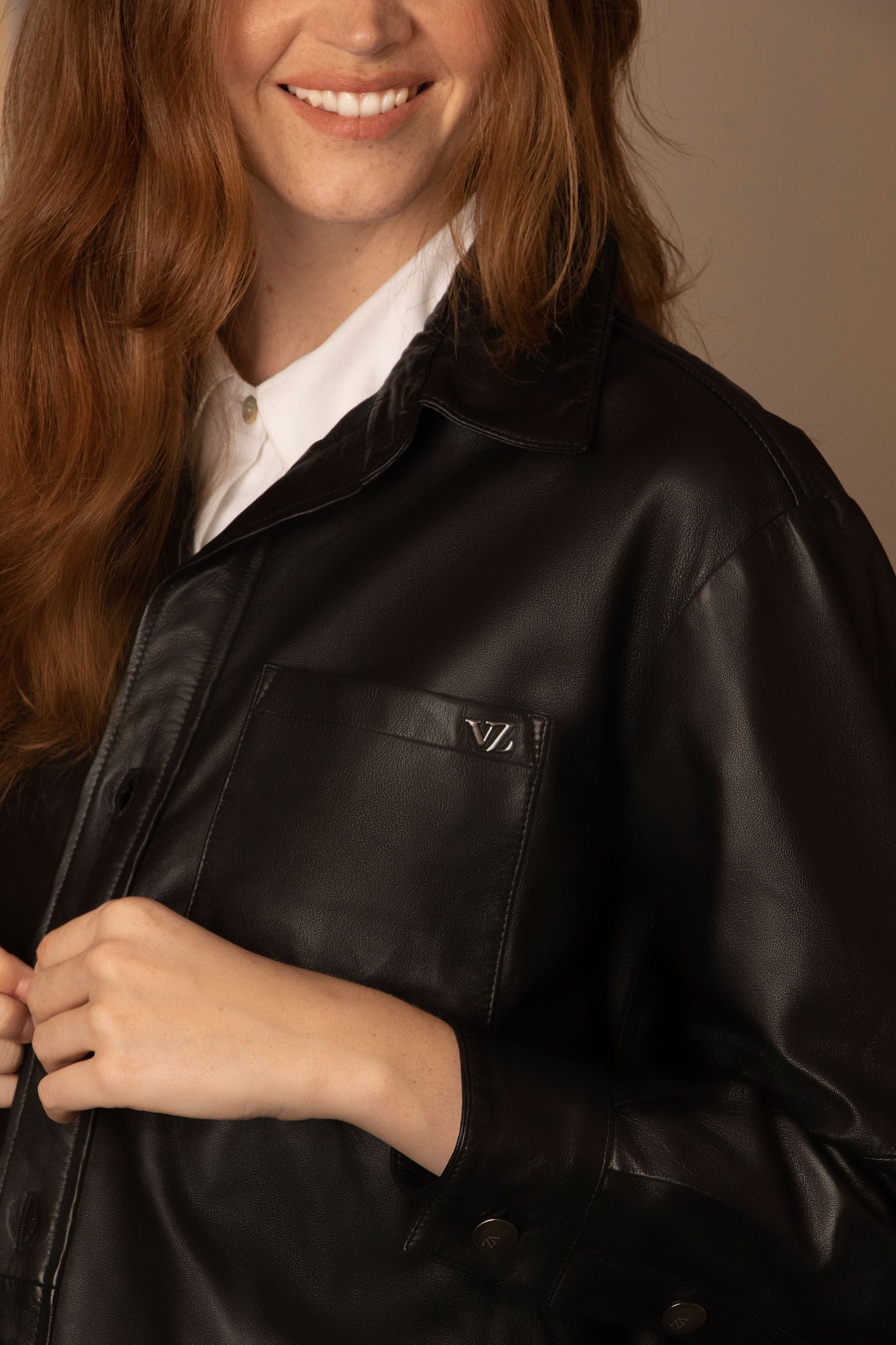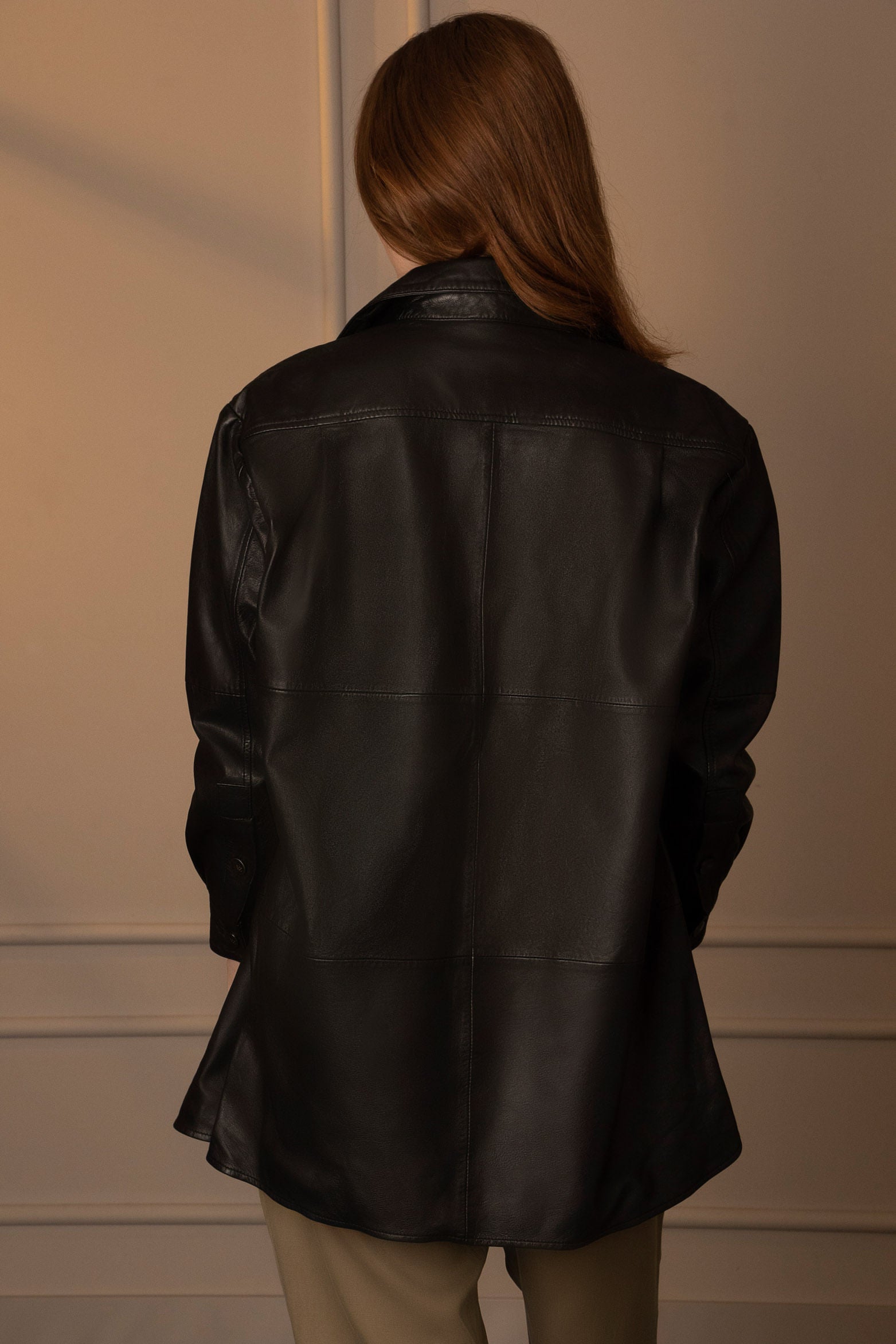 Women’s Long Sleeve Oversized Shirt in Black Leather