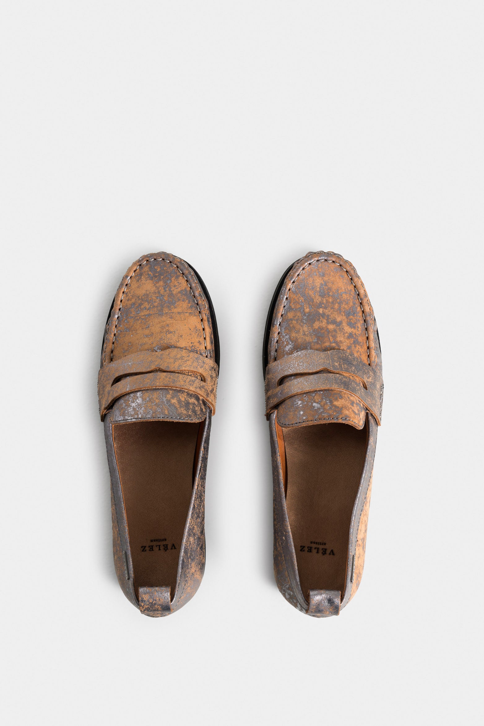 Preppy styling and on-trend materials make our loafers made from metallized leather, a must-have for the feminine wardrobe. This fashion piece features a prefabricated sole with mini heel, tonal lining and a contrasting insole, making it a timeless silhouette that’s perfect for adding character and texture to casual, elegant looks.