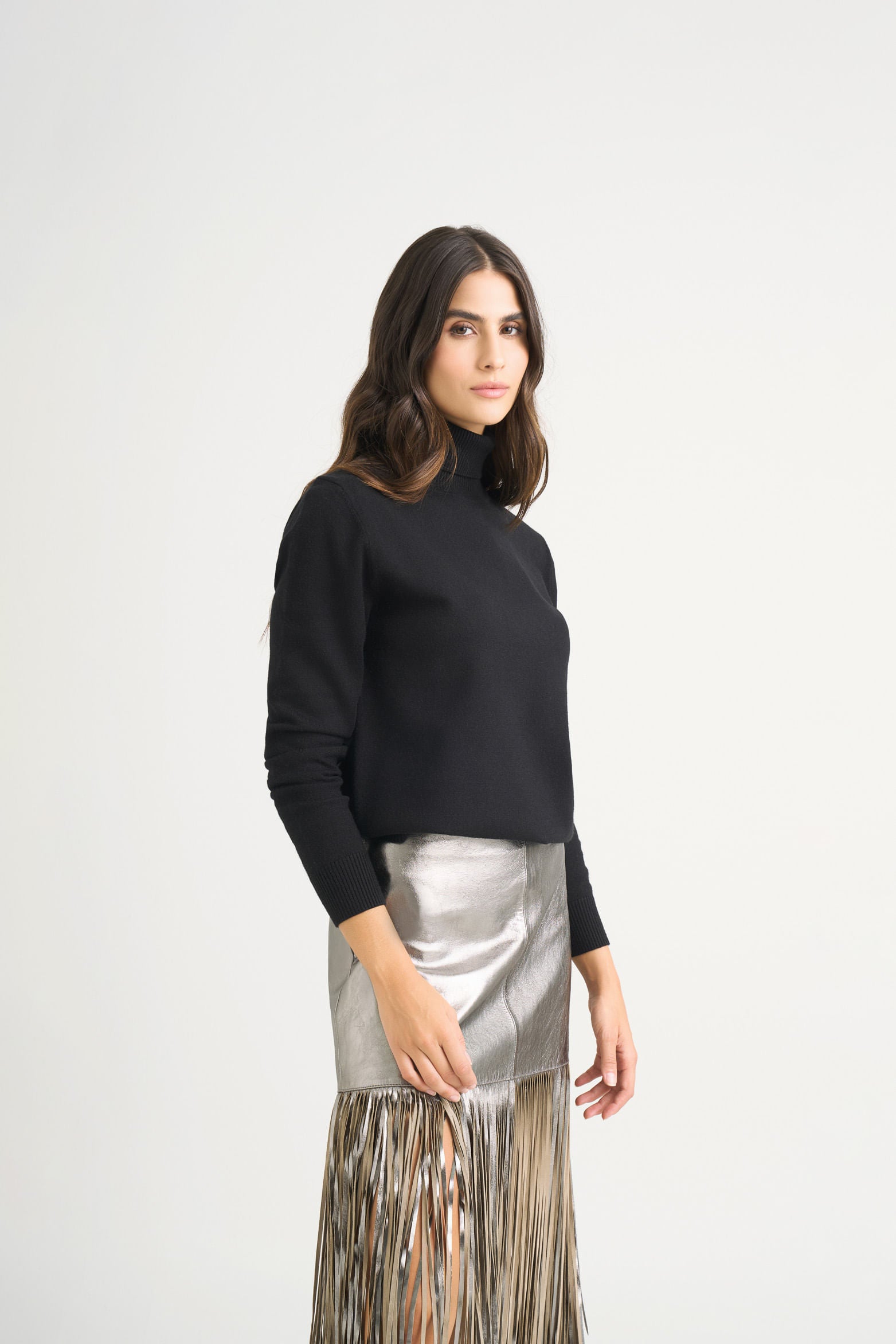 Our essential sweater is refreshed with a soft, cozy hand and subtle detailing, becoming a must-have in the modern wardrobe. This pull-on design features a turtleneck, high-hip length, and ribbing at the neck, cuffs, and hem. Its rectilinear knit and long sleeves shape a refined, sophisticated look—perfect for everyday outfits in cool and mild climates. Wear it with dresses, skirts, shirts and leather jackets, trousers, or jeans.