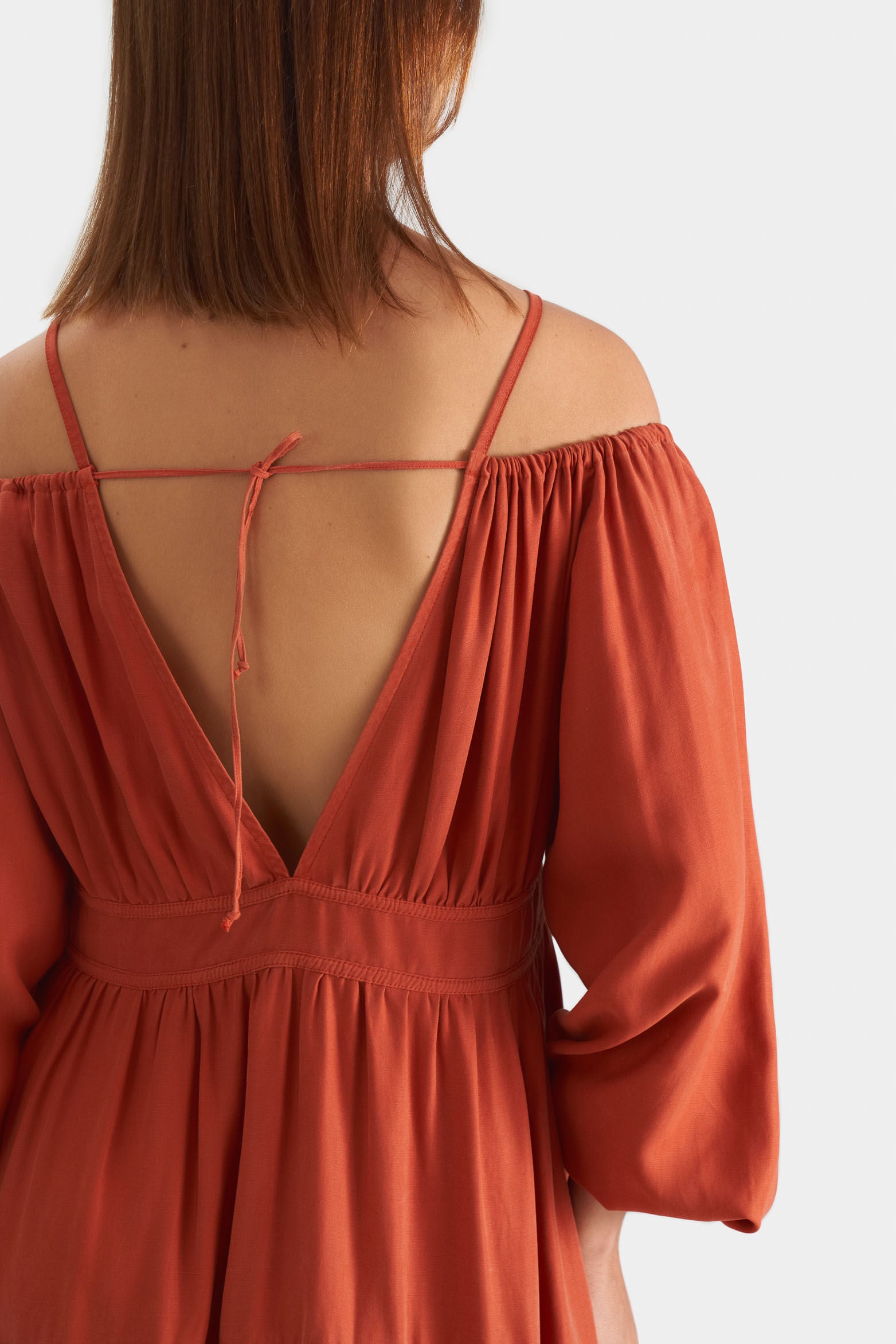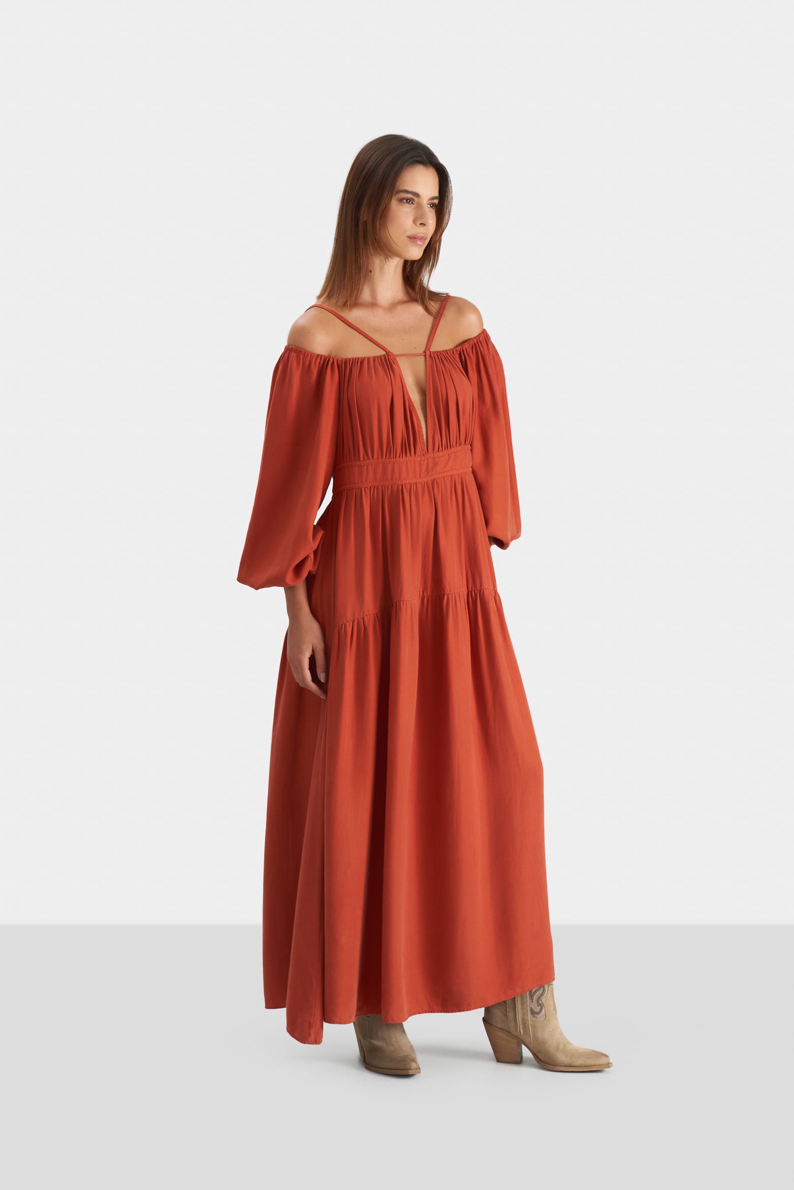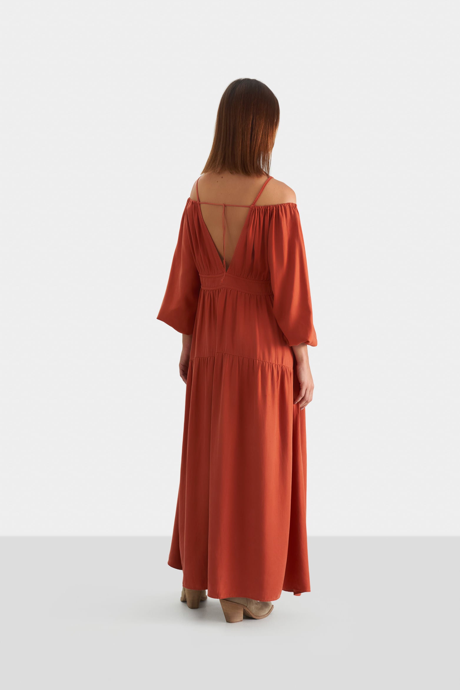 Sustainability is a representative quality of the Vélez essence. That’s why our ankle-length dress has been developed with biodegradable and compostable synthetic fiber. Contemporary sophistication is its name, and it features a low neckline, boat neck with straps at the shoulders, elastic cuffs and cut-out at the waist with decorative bias. Its perfect for creating warm-weather looks with sandals and accessories such as earrings, or for mild-weather looks with sneakers and leather jackets.