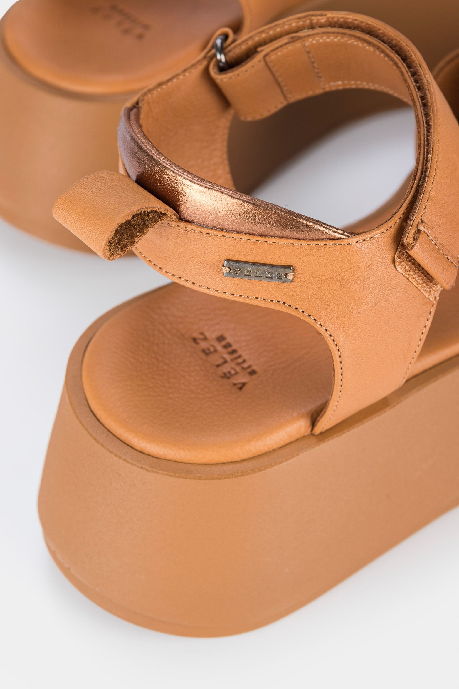 Our sandals subtly highlight feminine elegance. This women’s shoe features delicate details like a comfortable silhouette, leather-lined platform and hook-and-loop fastener strap at the ankle, which offers more adjustability and comfort to enjoy your days while keeping the sophisticated Vélez touch. They pair perfectly with floor-length denim pants and shirt collar blouses, or with short dresses to elongate the legs.