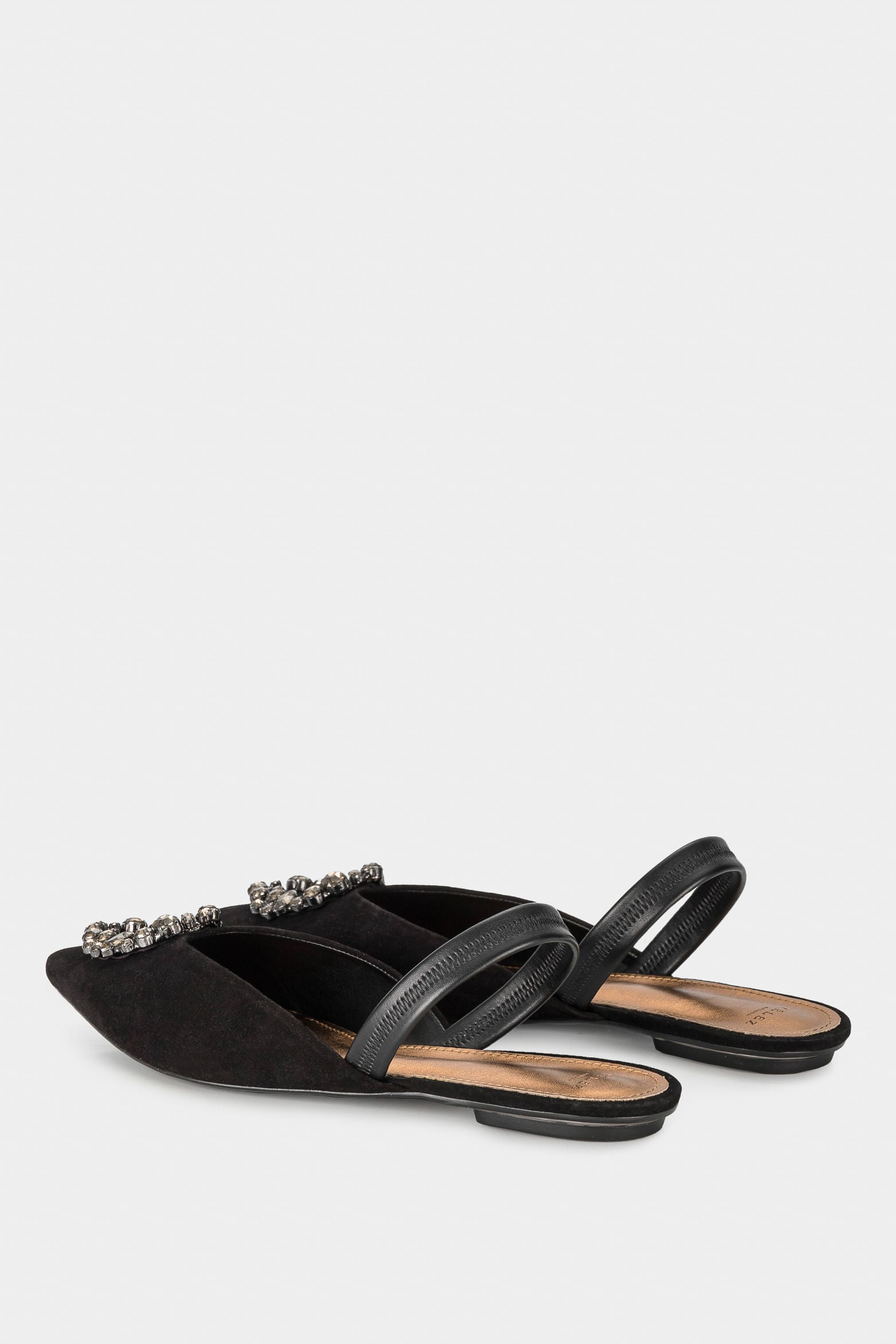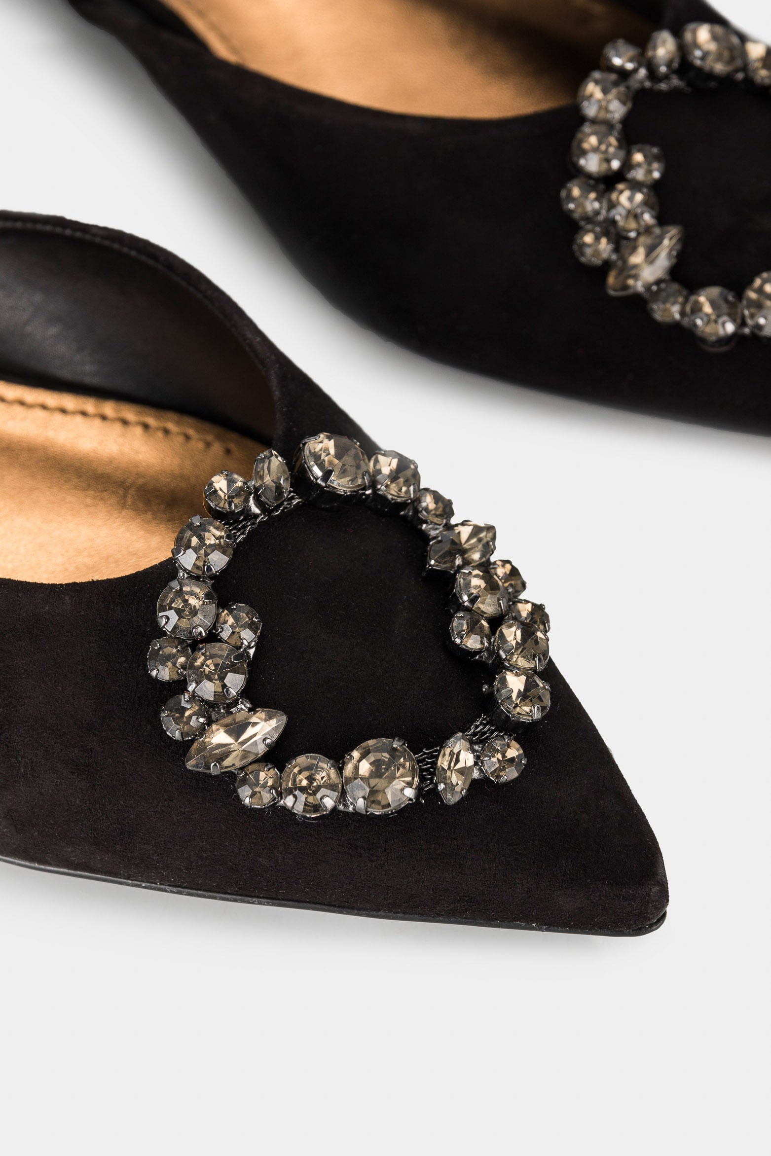 The elegance of the Vélez woman is embodied in the subtle details and classic silhouette of our suede ballet flats. With a beaded appliqué and metal accent heel, this shoe is perfect for a feminine look when paired with an A-line, midi dress and contrasting accessories.
