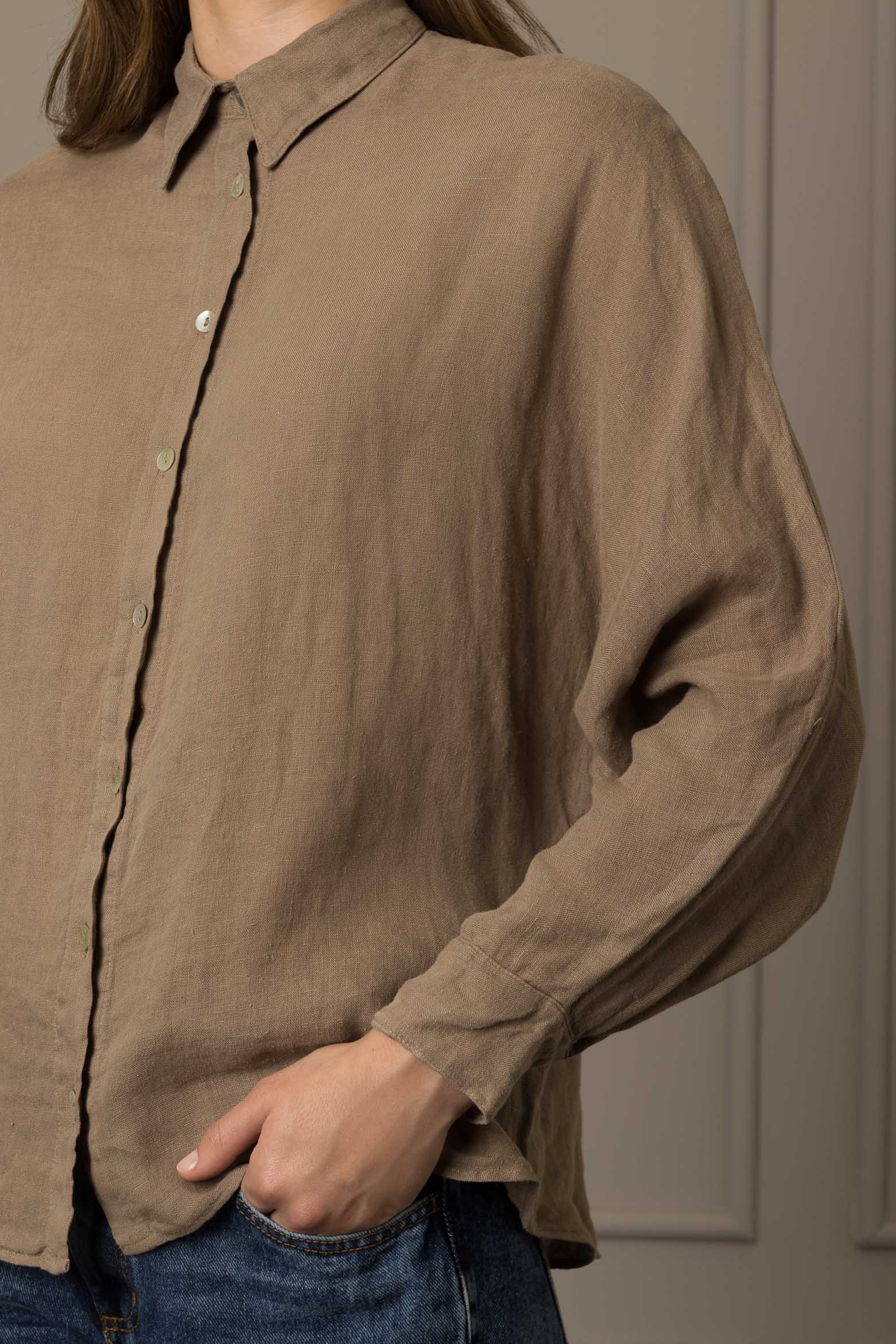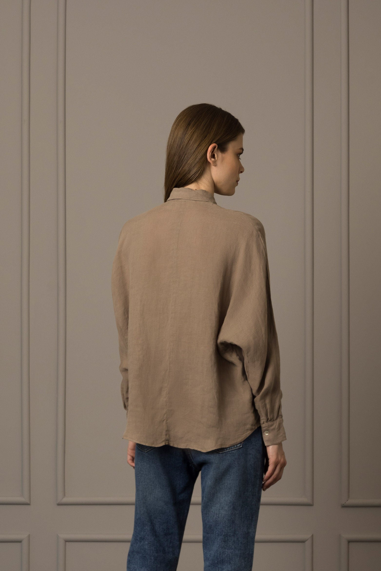 Essential silhouettes are updated with fashionable touches. Oversized shapes take center stage and become must-haves in the chic woman’s wardrobe. This basic long-sleeved shirt is crafted in flat weave and features a hip-length design, batwing sleeves, a shirt collar, placket with buttons and a button-down cuff. Create casual looks that are perfect in every season. Pair it with jeans or baggy pants and with ankle boots or sneakers for a fresh take on a modern look.