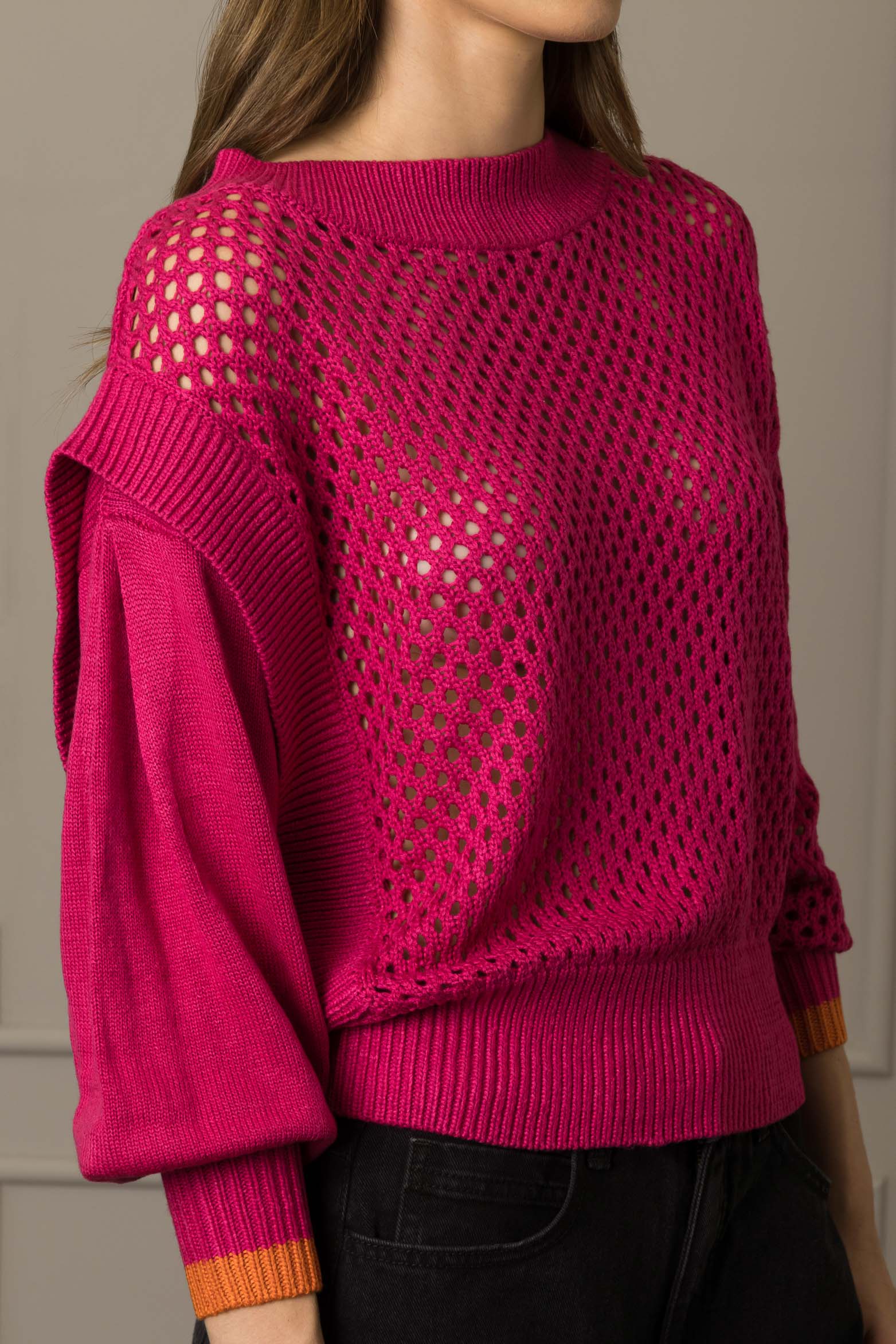 Our long-sleeved sweater is crafted in straight-cut fabric with asymmetric sleeves. An on-trend design that falls at the top of the hip and features a boat neck collar. This women’s sweater is perfect for adding character to your cold-weather looks.