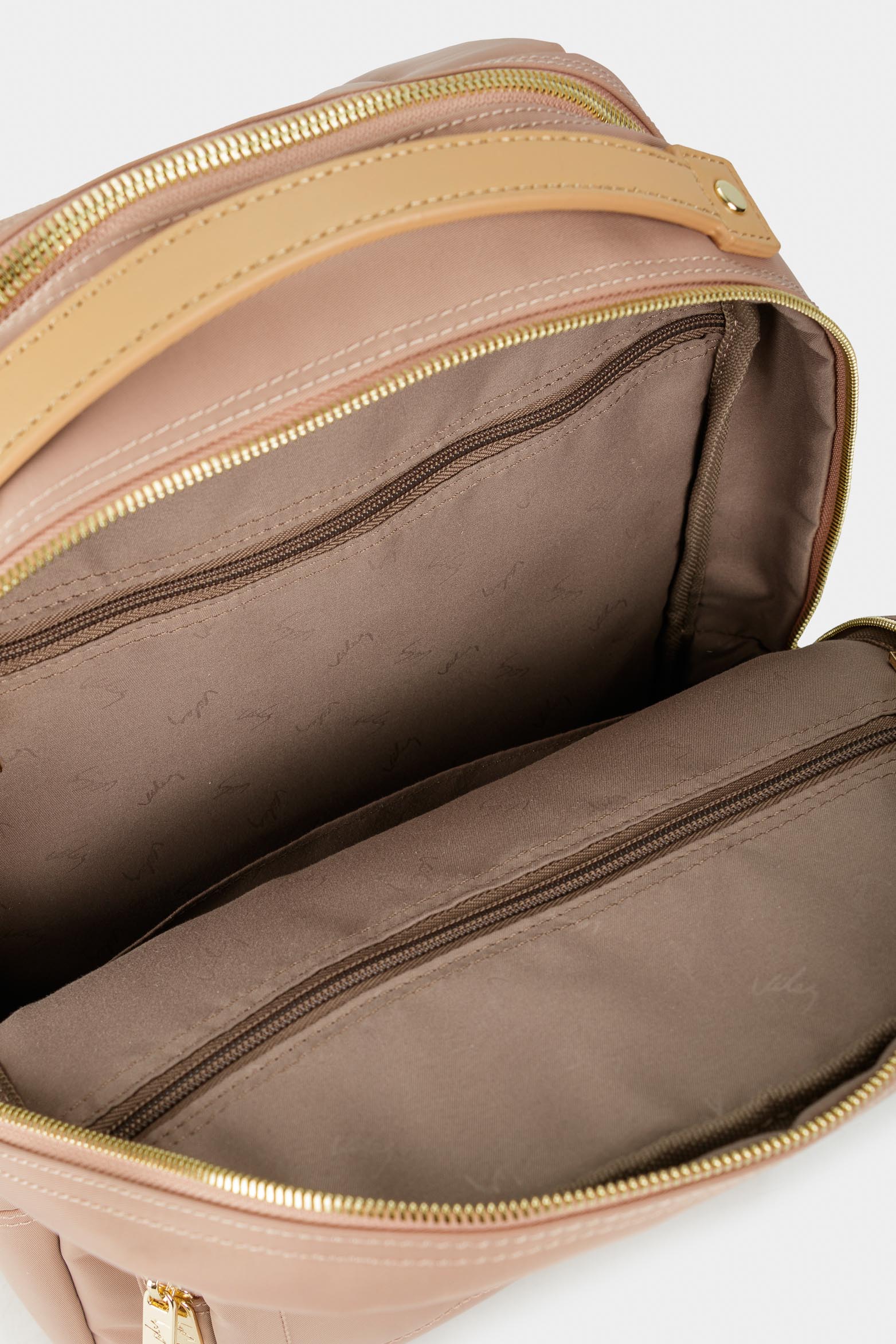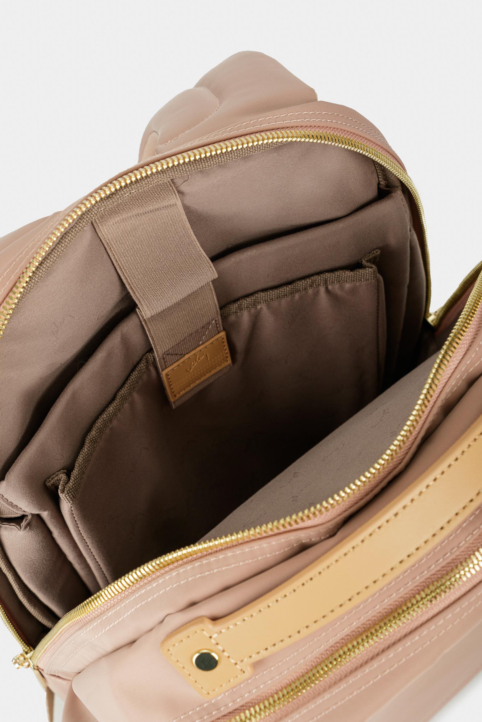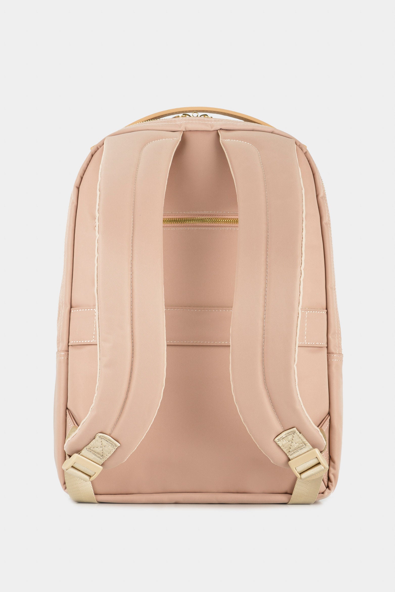 Women’s Purple Backpack in Nude-Colored Canvas with Leather Details and Padded Straps