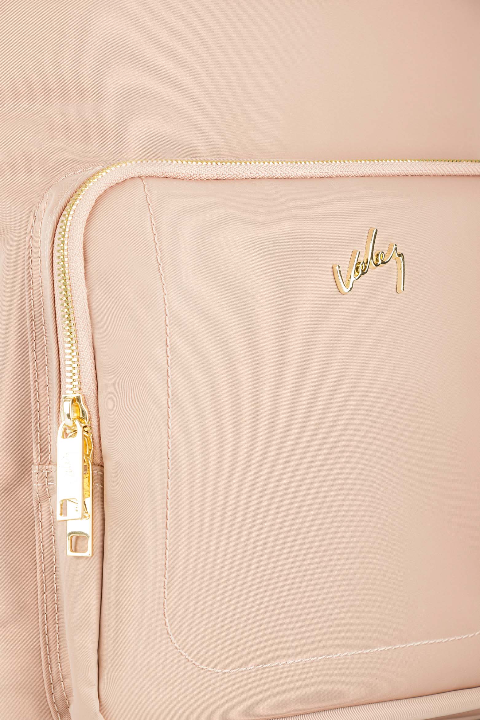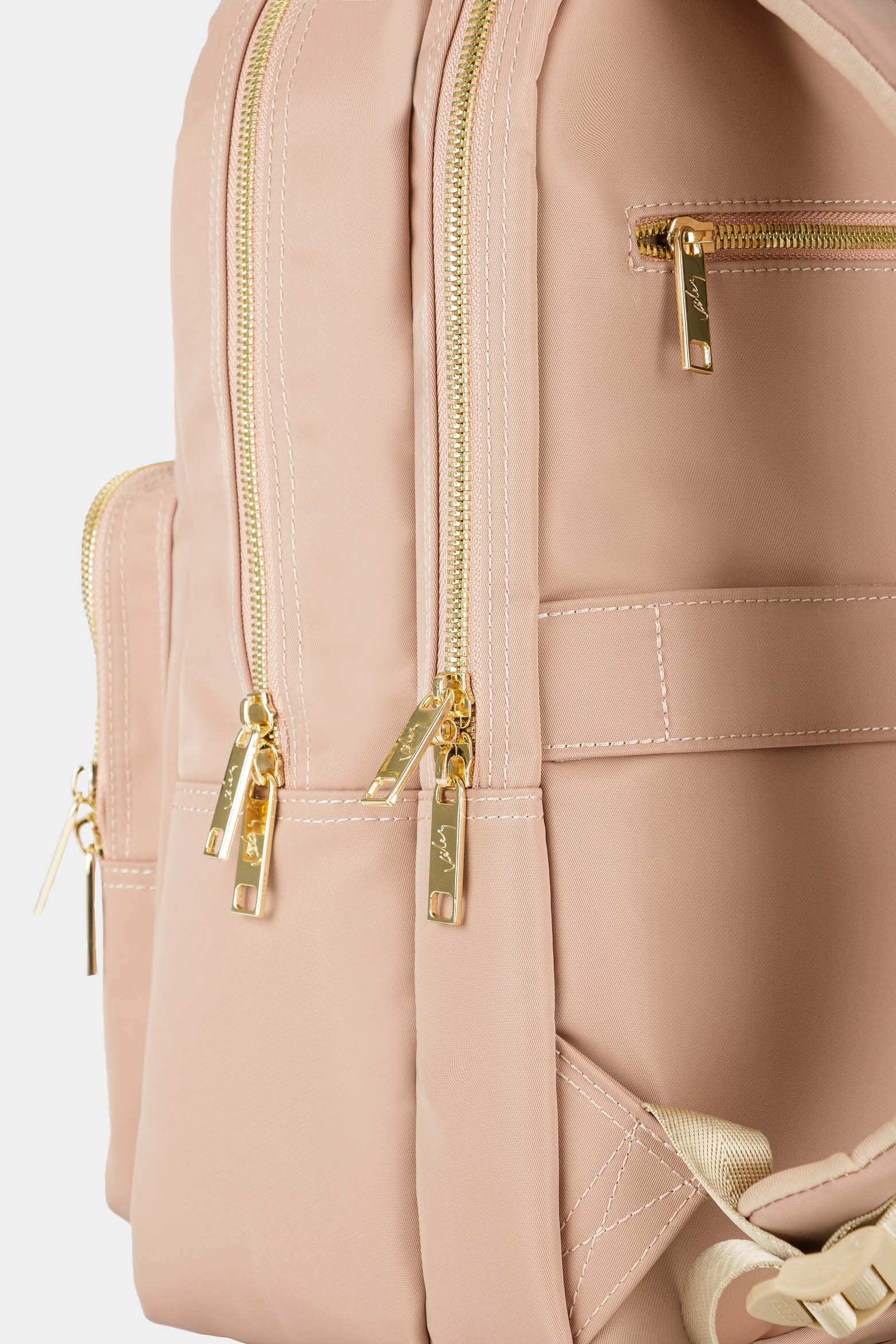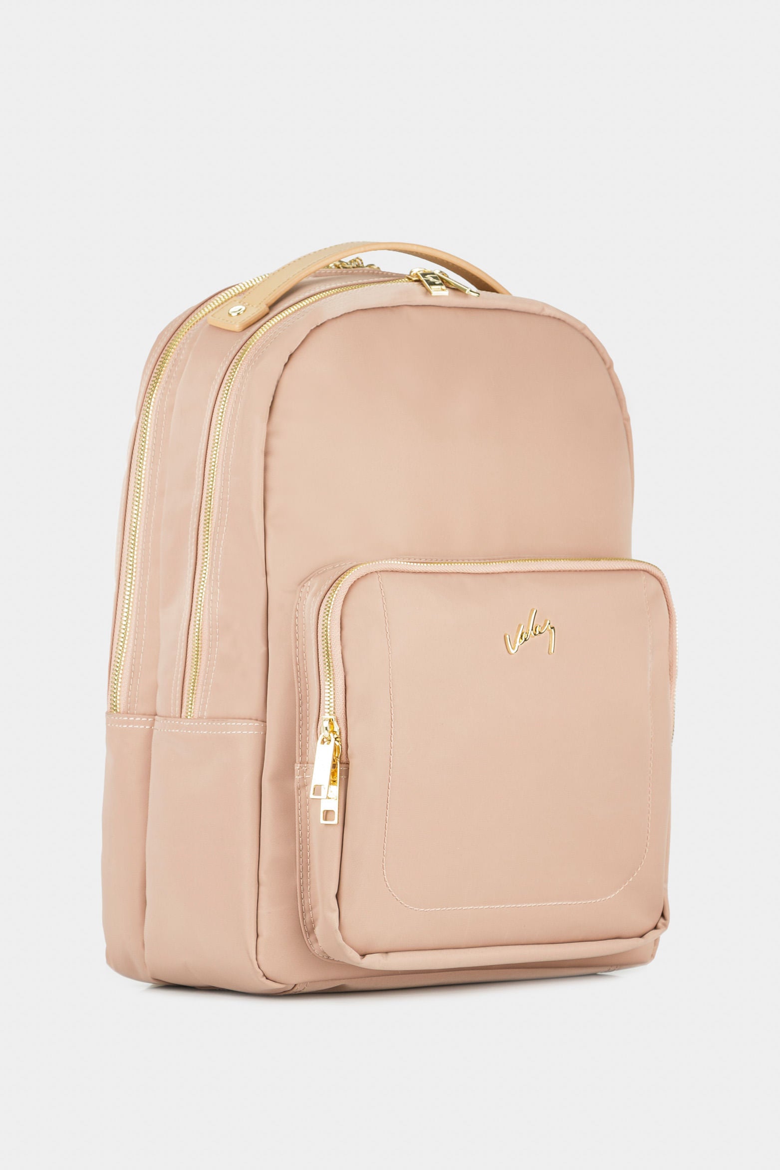Women’s Purple Backpack in Nude-Colored Canvas with Leather Details and Padded Straps