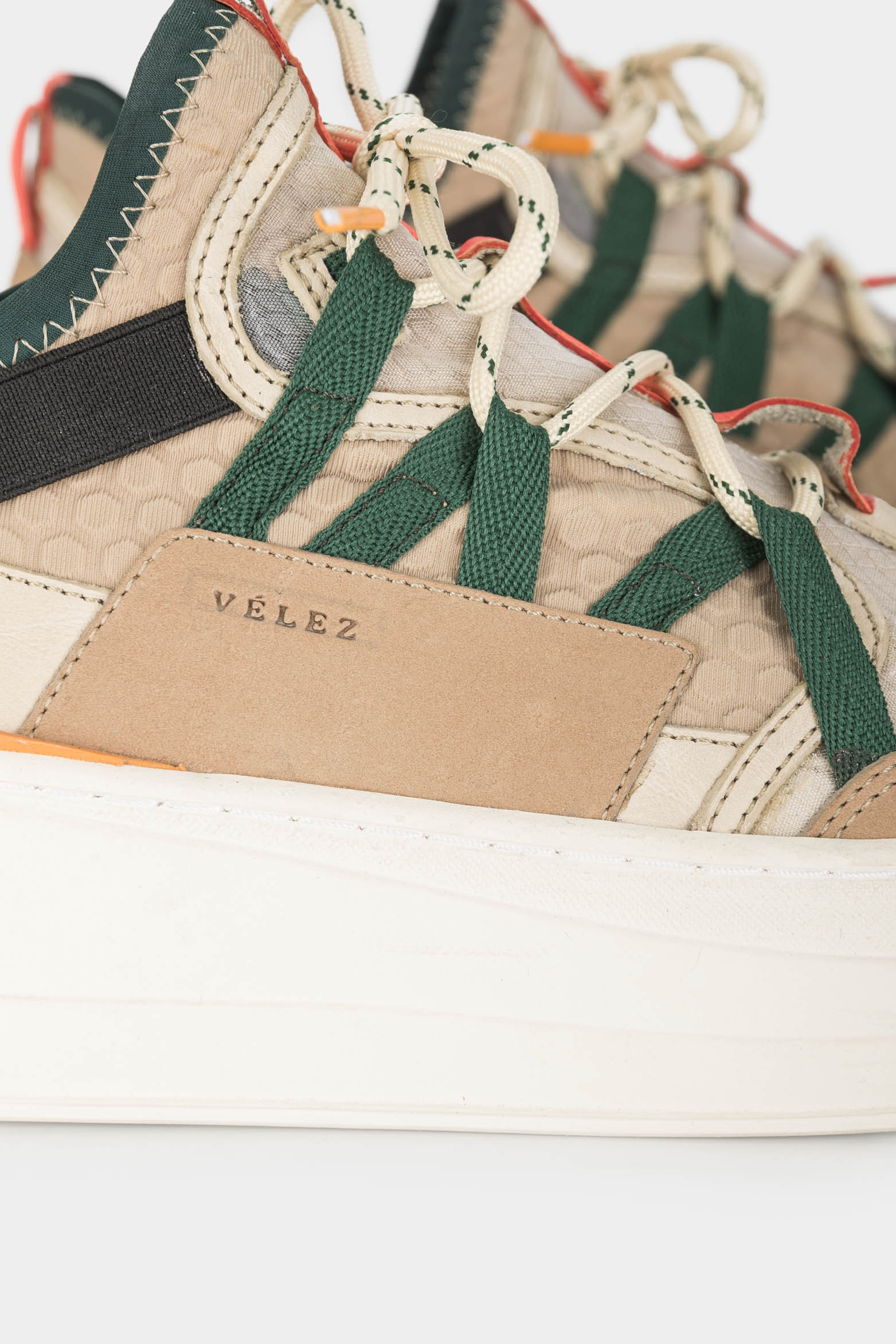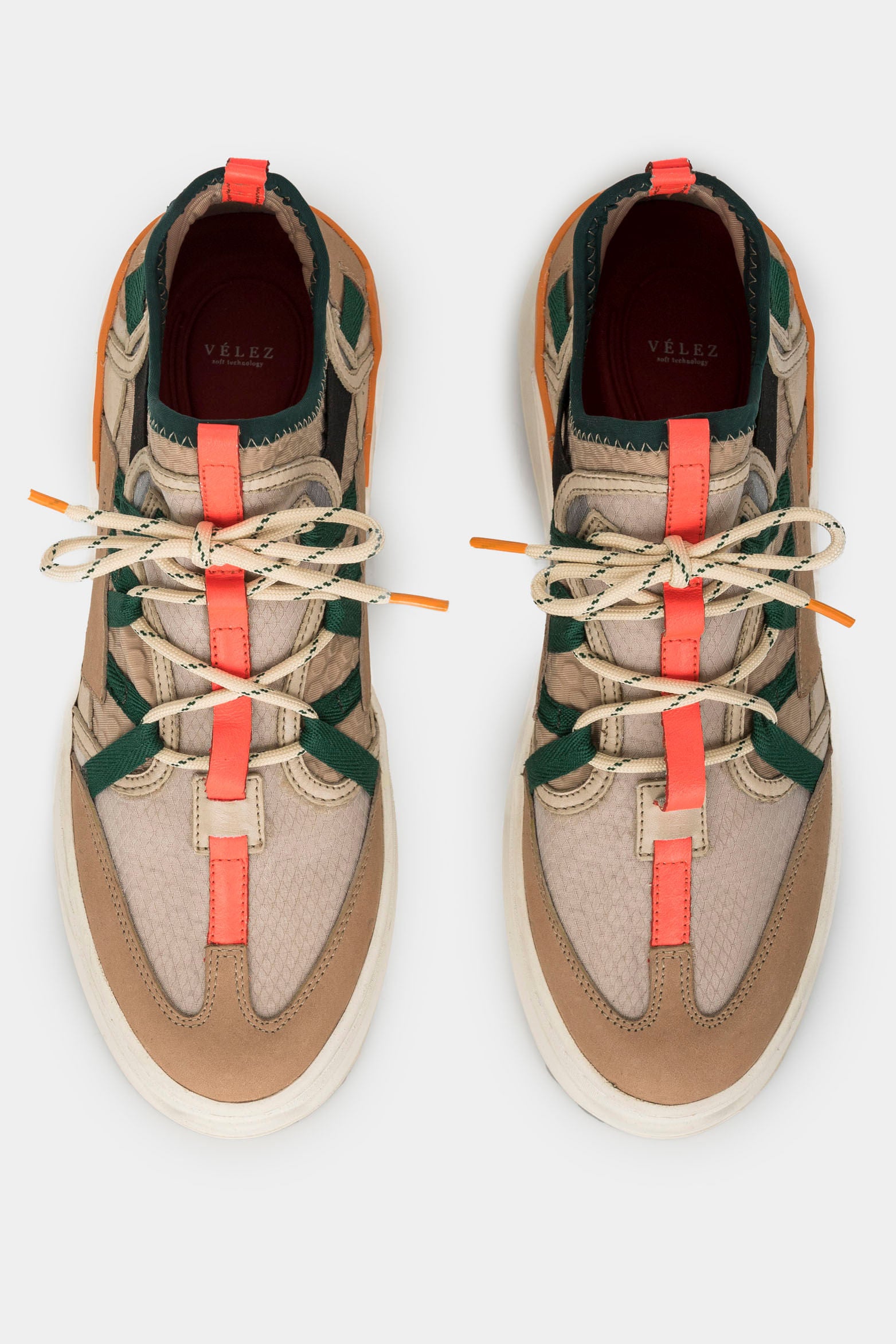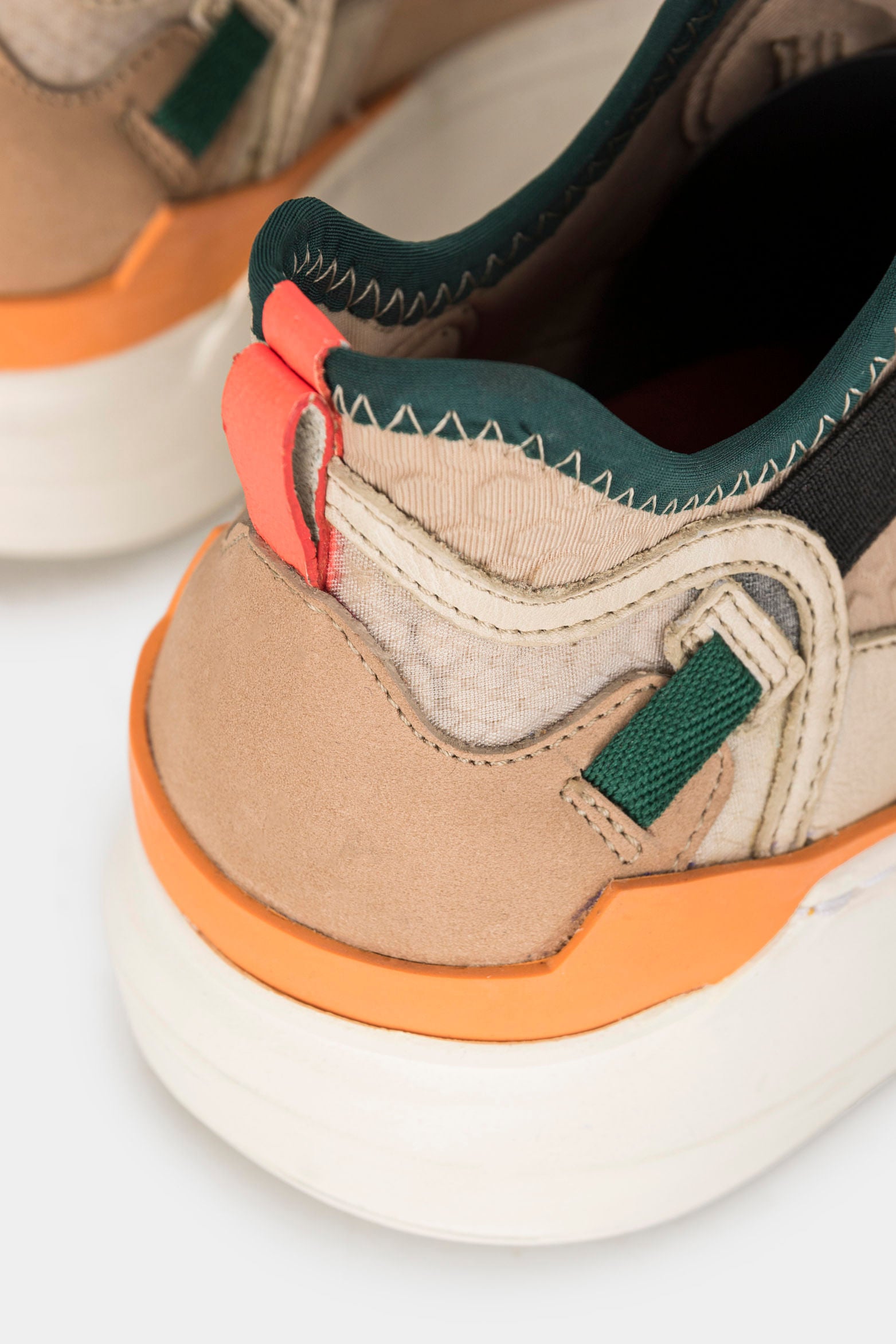 Inspired by feminine boldness and the captivating strength of the earth, a versatile, bold silhouette is achieved with colors and combinations of sustainable, natural materials. These sporty sneakers with urban flair have a sock-like silhouette that integrates recycled rubber insoles and lightweight, eco-friendly natural rubber outsoles. Combining versatility with environmental awareness and responsibility, they’ll quickly become a staple in your wardrobe.