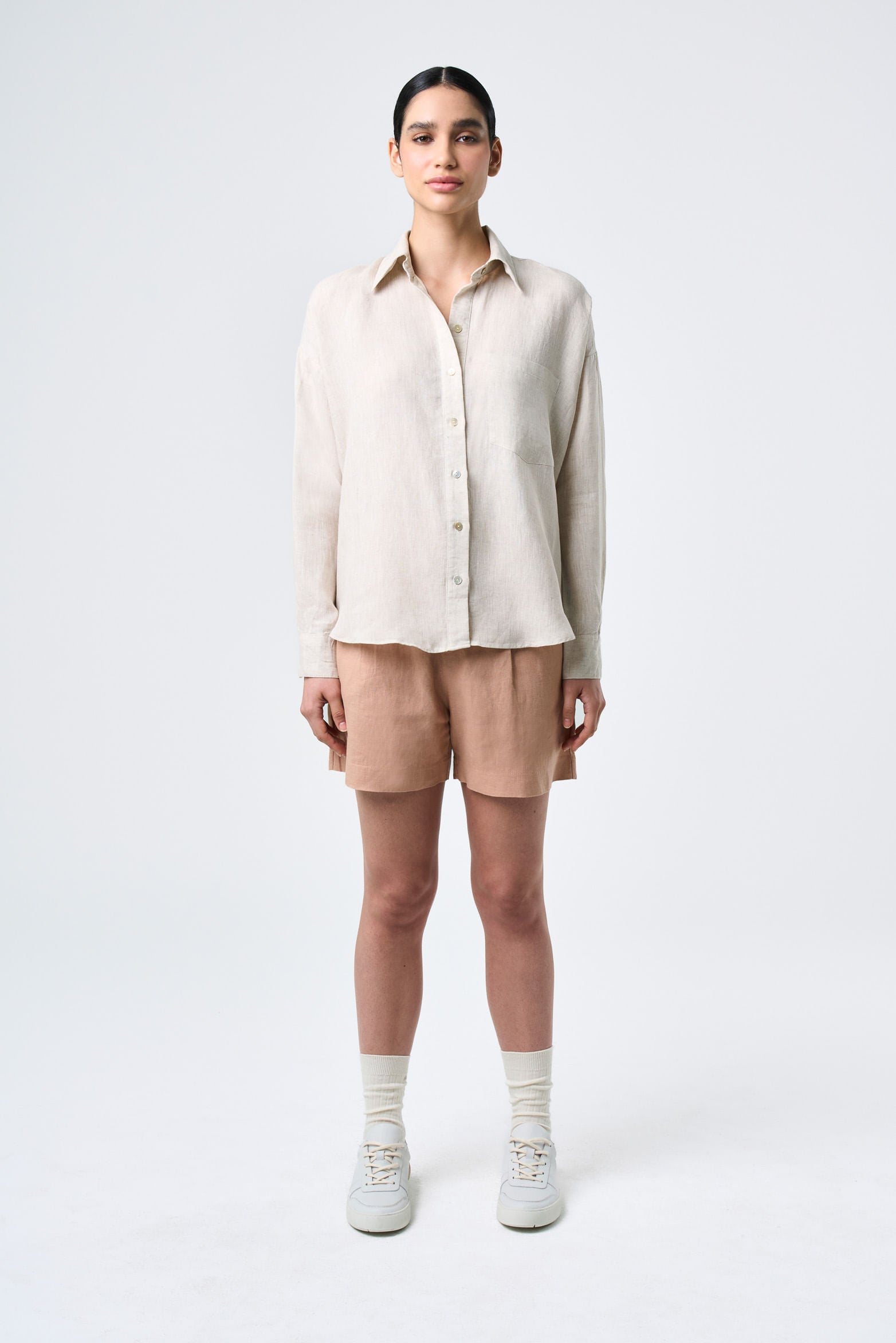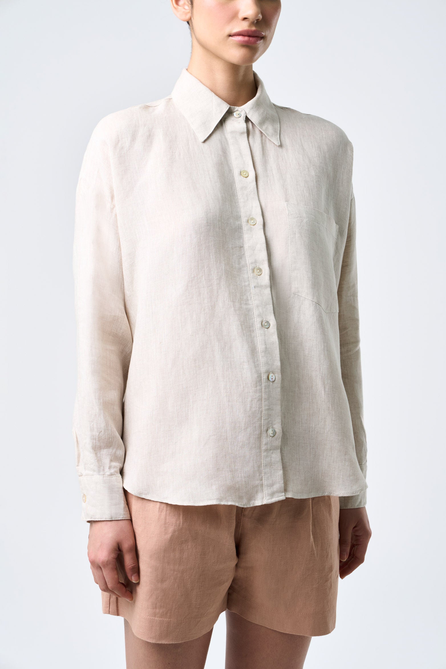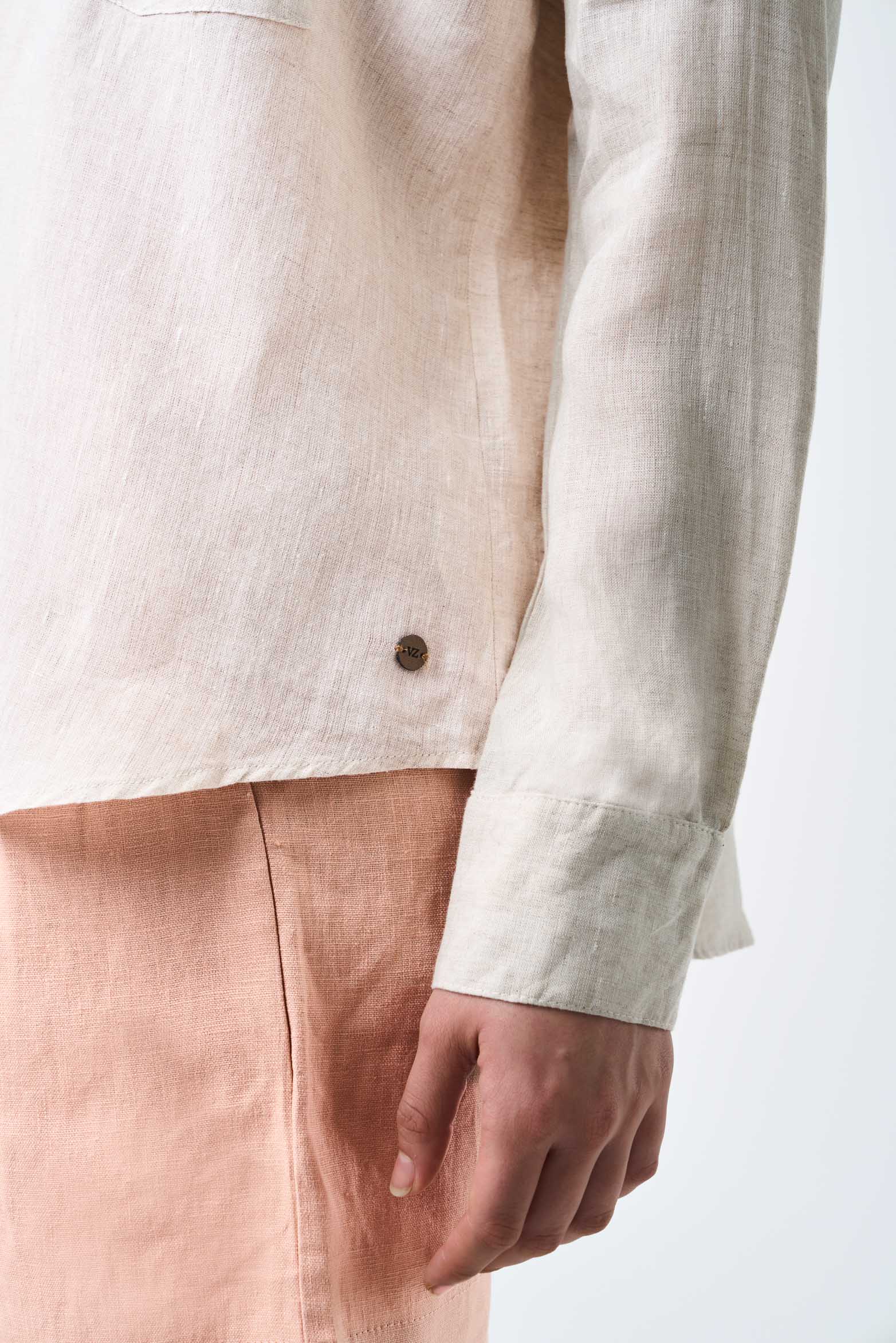 With a contemporary, relaxed, and fresh design, our shirt effortlessly fits into everyday life with elegance and ease. Highlighting craftsmanship and versatility, this piece is a reflection of relaxed sophistication, ideal for casual or summer outfits thanks to the softness of its fabric and the linen blend. It's an essential that elevates any ensemble, reflecting a conscious and timeless style.