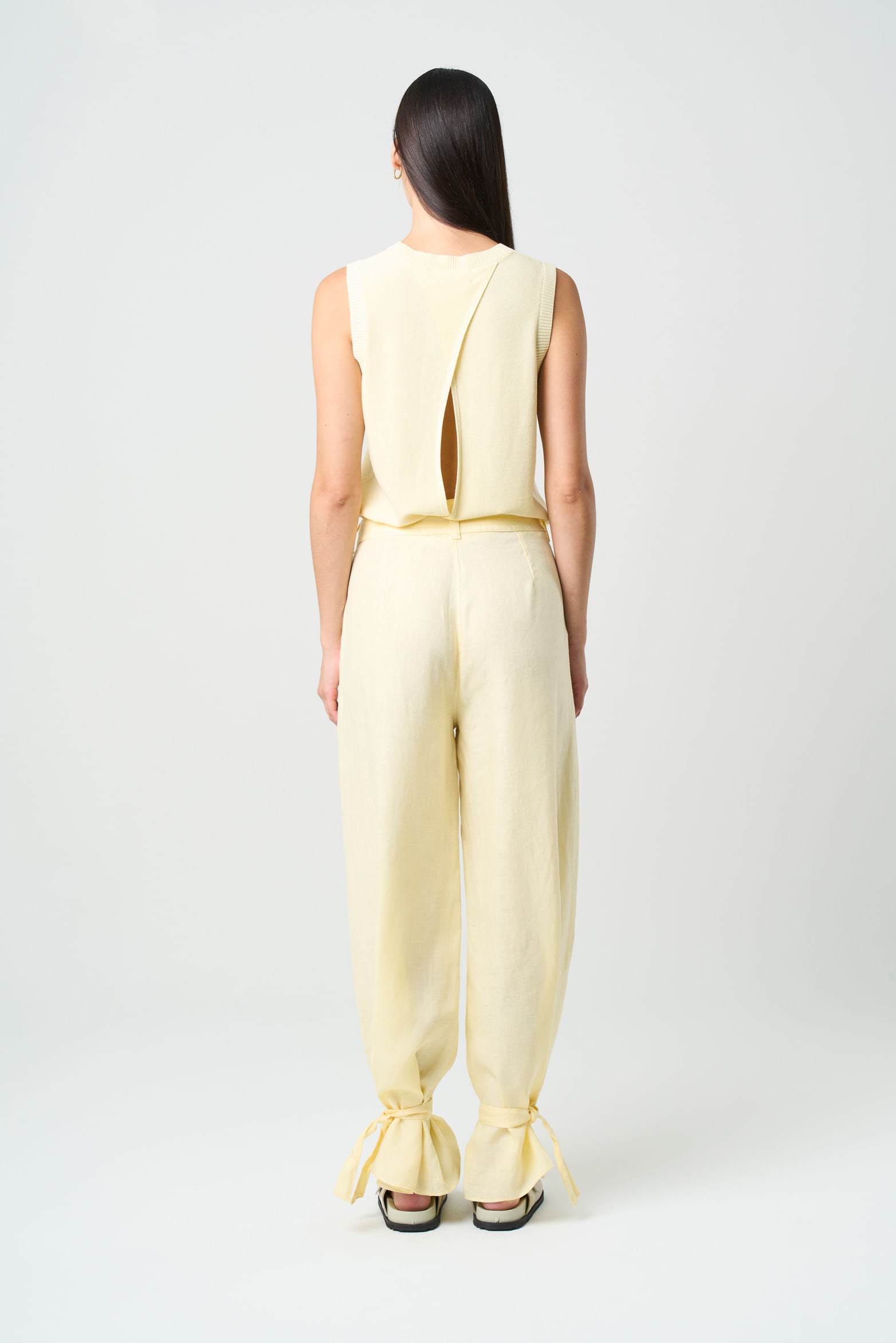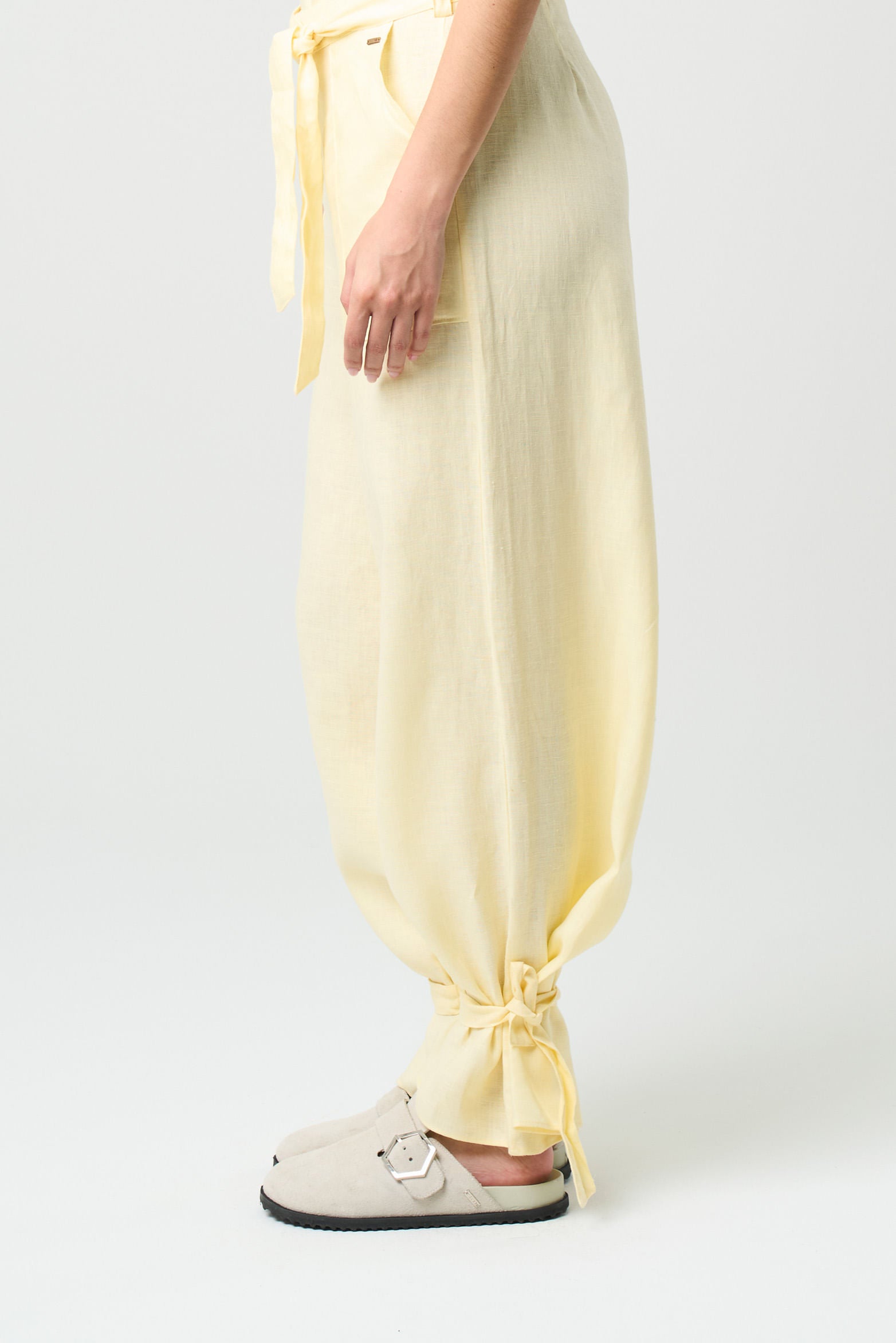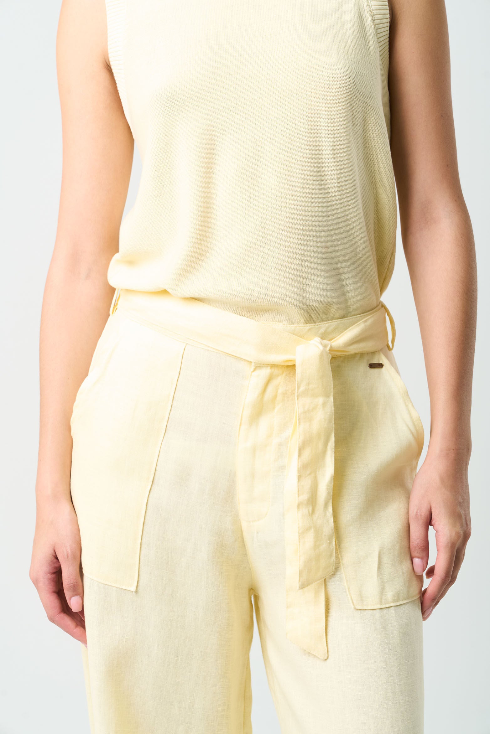 With an organic, fresh texture, these relaxed, high-waisted trousers are perfect for summer days. Details like the adjustable leg opening and patch pockets add a poetic, sophisticated touch, ideal for pairing with woven fabrics and ballet flats. Offered in timeless colors, they become a versatile piece that elevates any wardrobe.