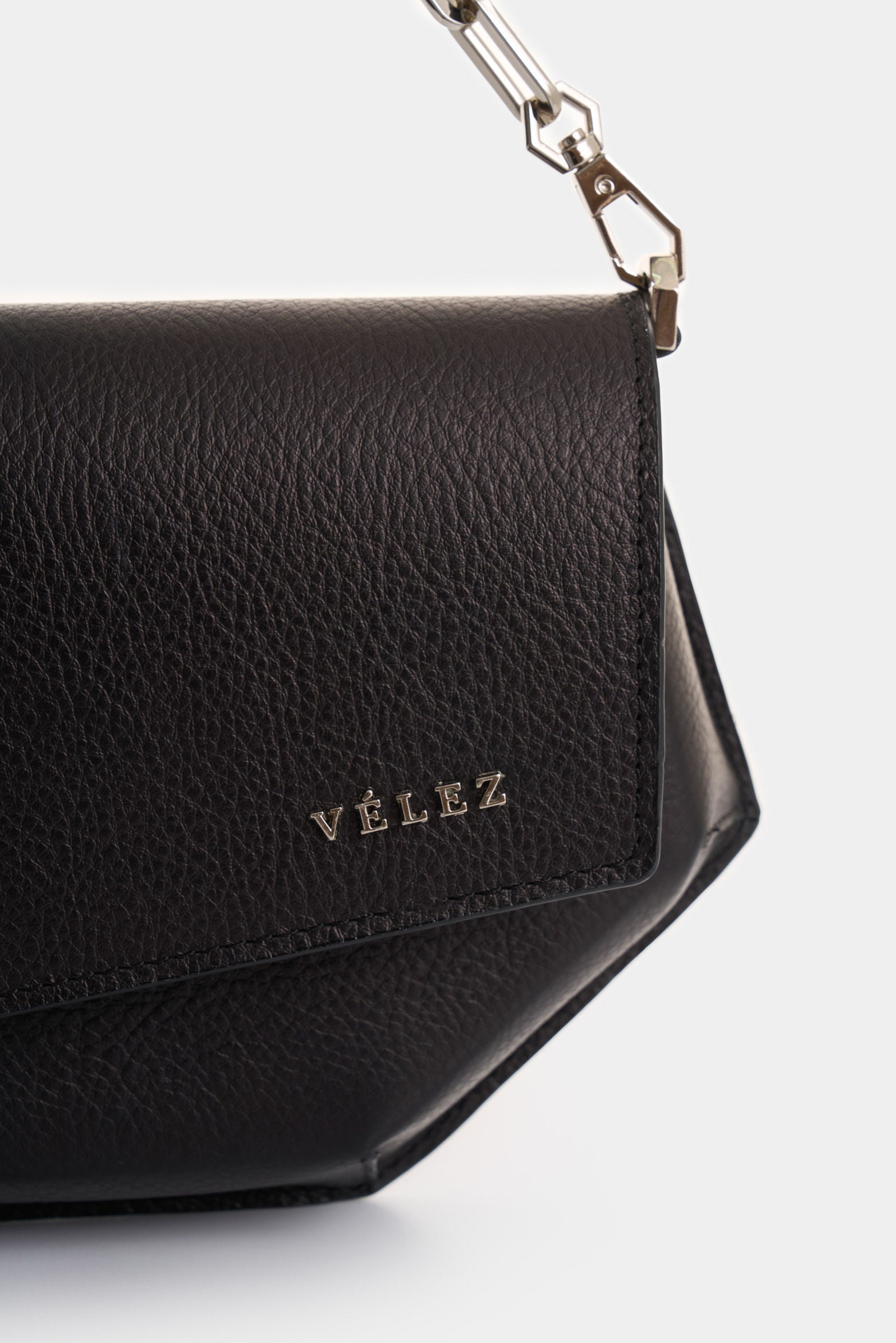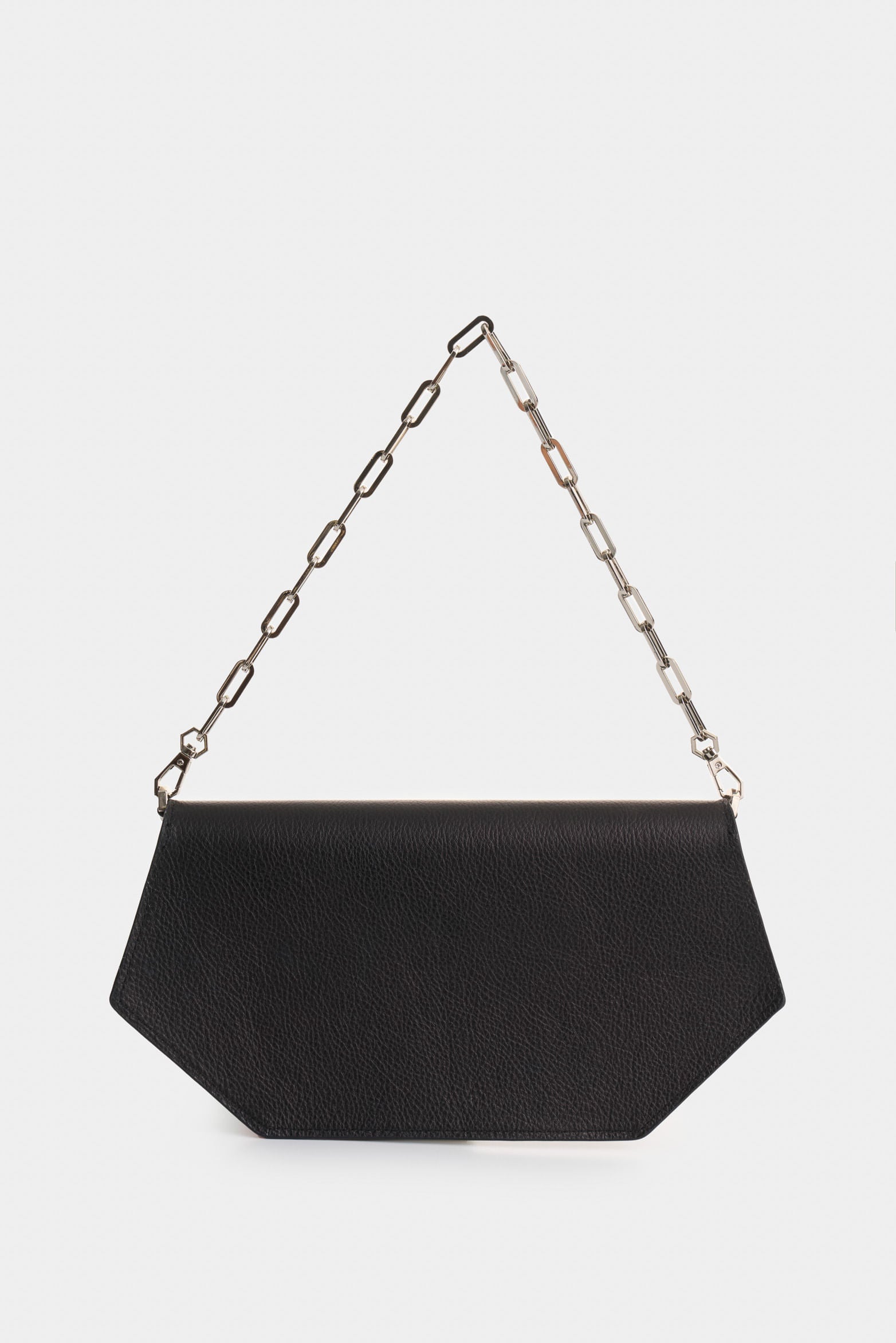 Women's Leather Bowling Hexa Baguette Bag with Chain Detail