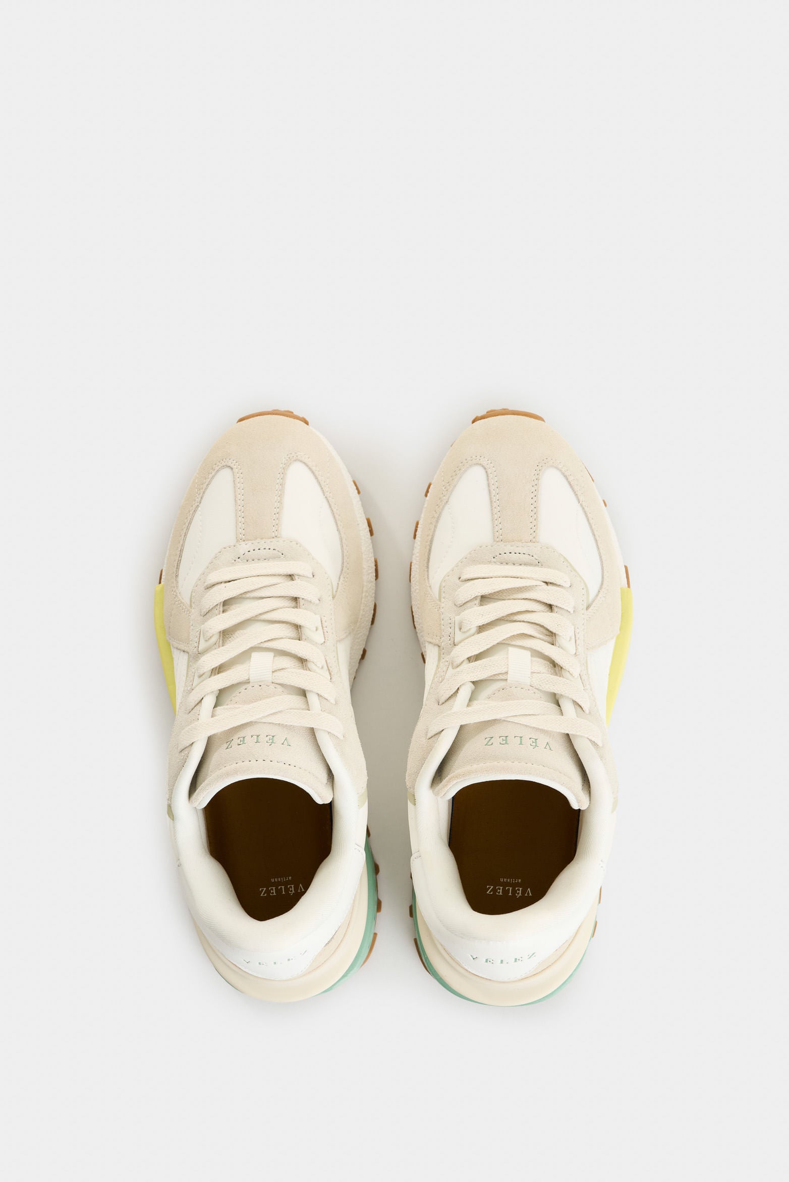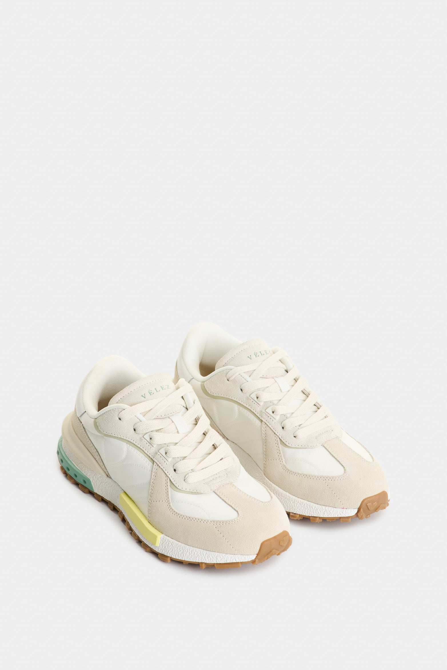 Where the best of the sporty and casual universes meet, these sneakers combine lightweight, high-traction EVA soles with a blend of split leather, smooth leather, and canvas. This combination of materials allows for greater breathability, comfort, and lightness. Contrasting details add a fresh, avant-garde touch, while dynamic stitching creates a distinctive texture. With a textile lining and anatomical insole, they're ideal for a versatile, modern look.
