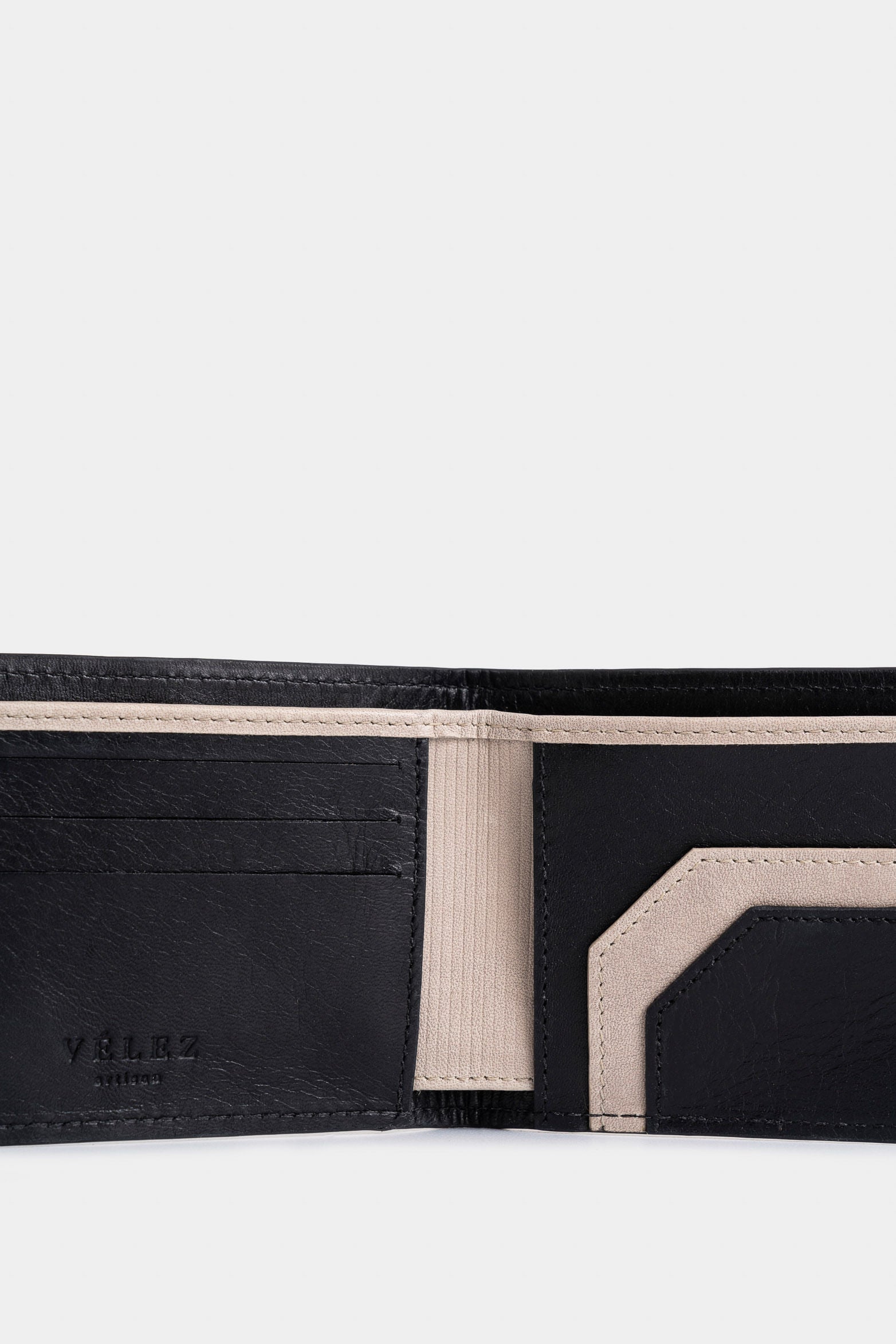 Minimalist charm and touches of artisanal creativity define this smooth leather wallet, designed to offer great functionality. The color details enhance the precise cuts, creating an elegant contrast. With five card slots, two featuring a hexagonal design, and a bill compartment, this piece ensures organization and security with RFID protection. An accessory that combines sophisticated style with soft yet structured materials.