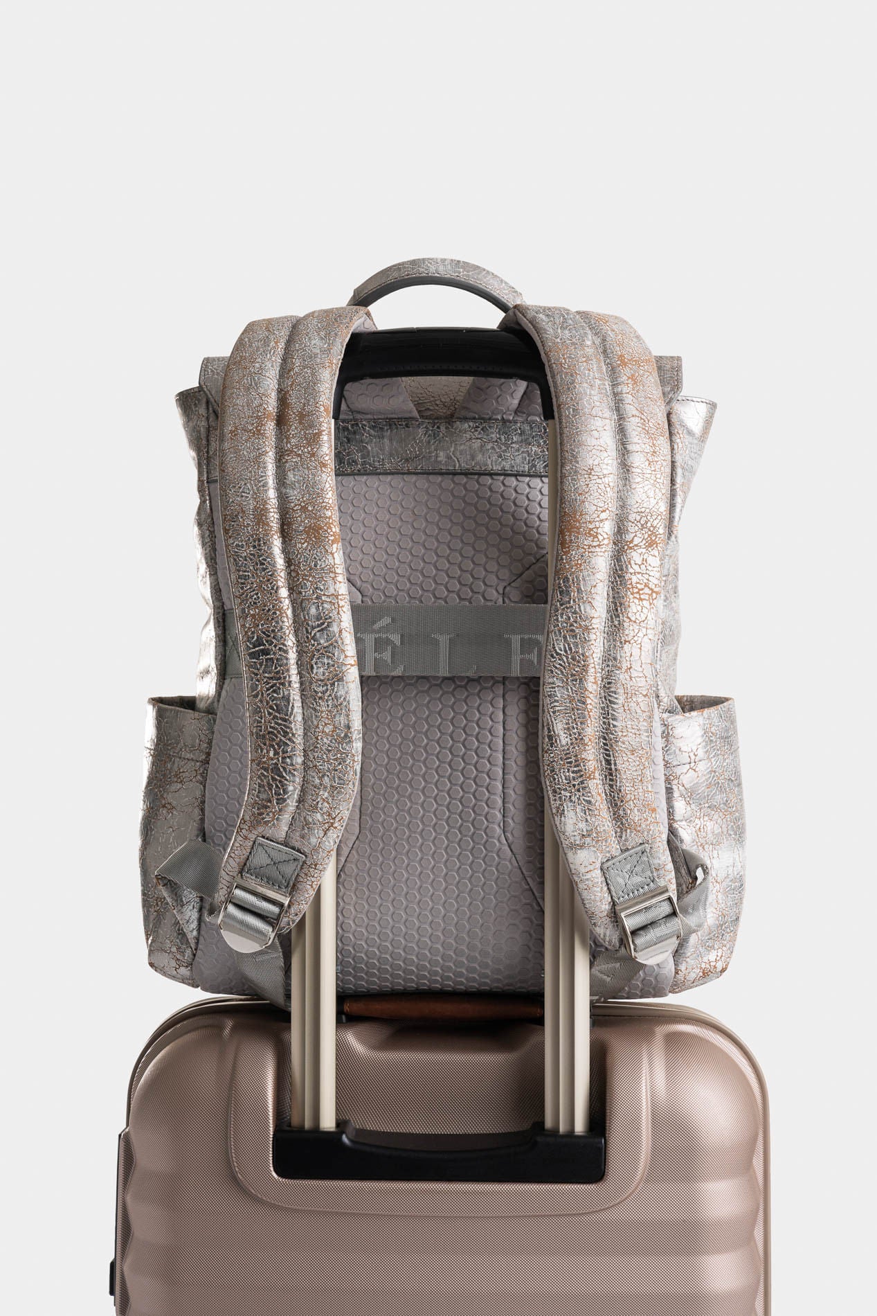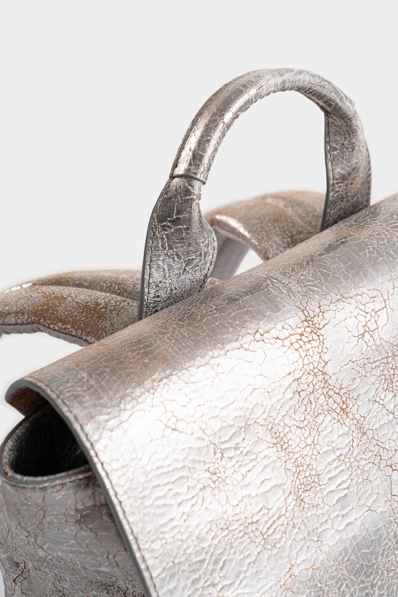 A piece with a cutting-edge shine, functional and with great capacity, it is the perfect ally for the office, travel, or weekend outings. Made from cracked leather, it combines sophistication with subtle rebellion. The padded straps and neoprene back ensure comfort. This accessory adds a bold touch to your daily style, merging style and practicality in an innovative design.