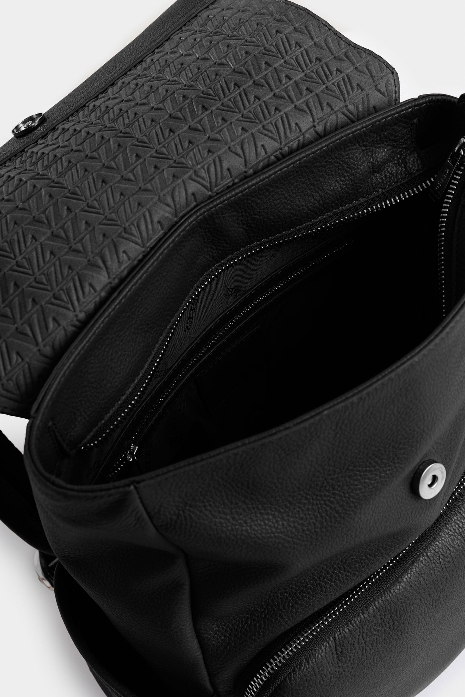 A piece with a cutting-edge shine, functional and spacious, it is the perfect ally for the office, travel, or weekend getaways. Made from smooth leather, it reflects contemporary sophistication. The padded straps and neoprene back ensure comfort. This accessory adds an audacious touch to your daily styling, combining style and practicality in an innovative design.