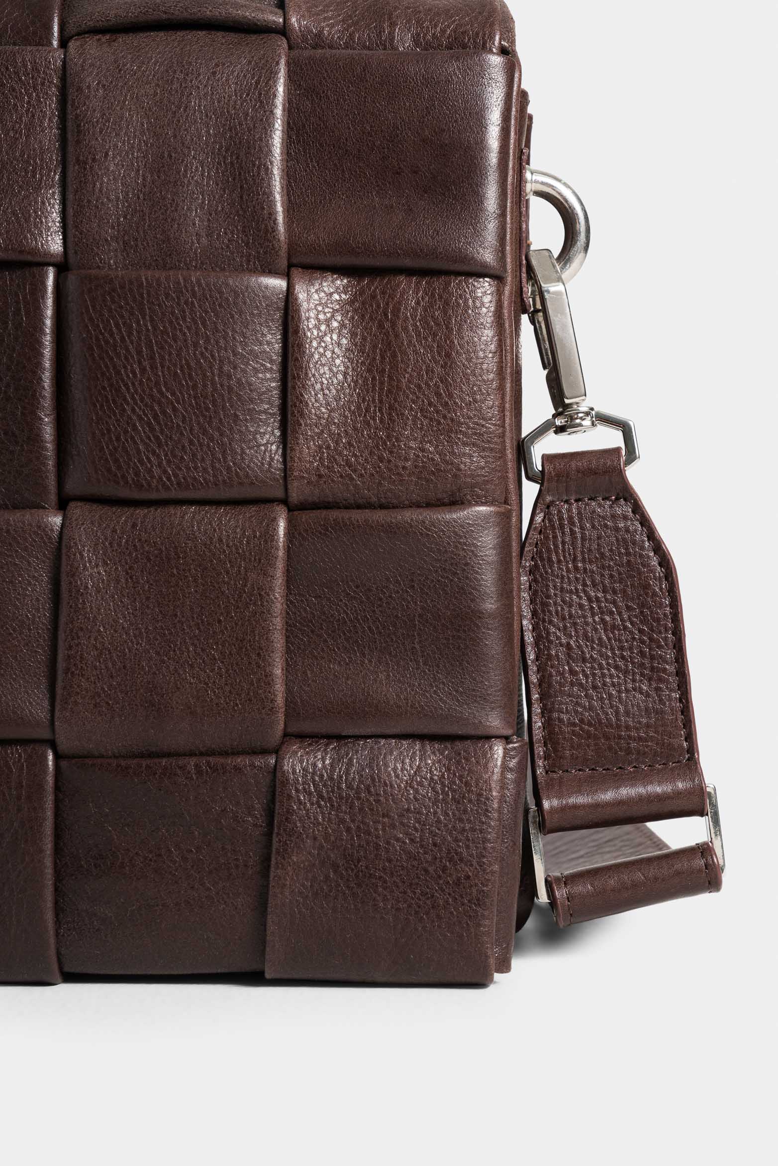 With a sophisticated, stylized, and sturdy silhouette, our Anaime bowling bag crafted in Folia leather offers a luxurious and comfortable experience for unparalleled usage. It features a metallic chain strap providing versatility, and its bee insignia, applied through spray paint, gives a unique and distinctive detail that reflects our environmental mission. Internally, there is a zip pocket and a flat pocket for your cell phone, keeping your daily items organized. Whether you're heading to an event, the office, or university, this luxury piece adds a touch of avant-garde to your style.