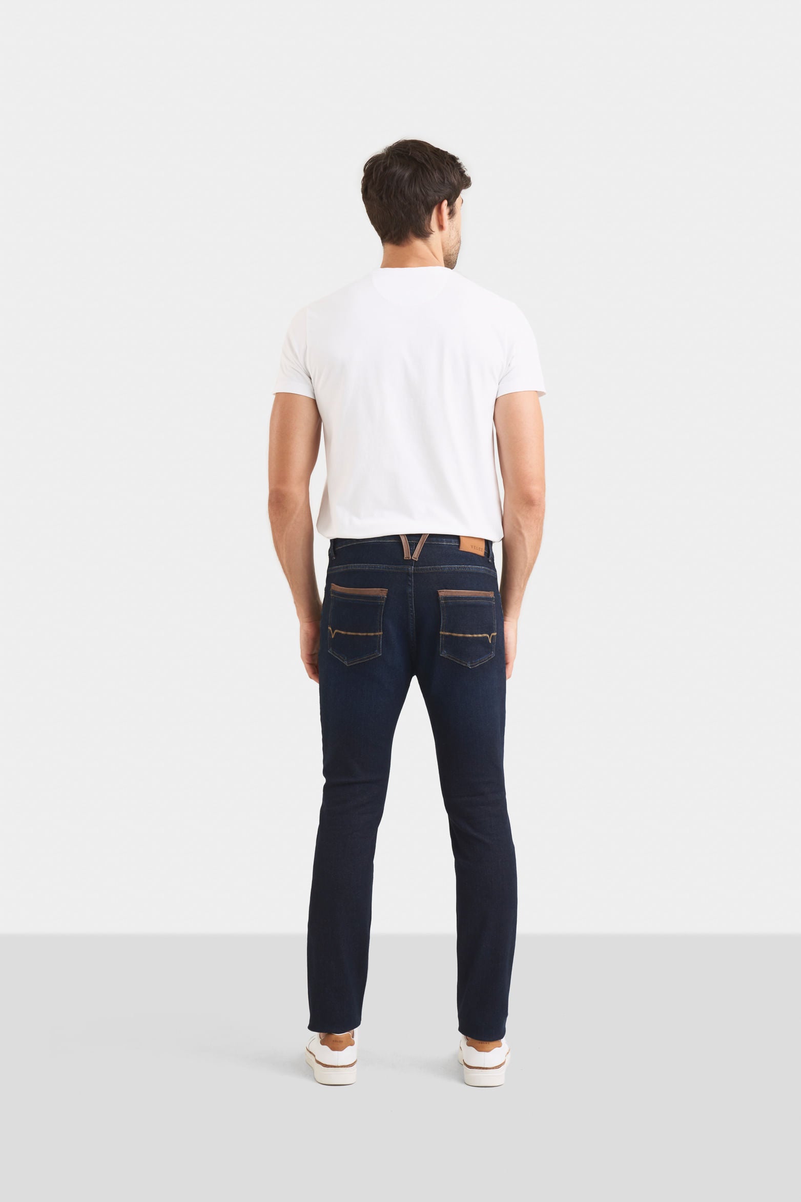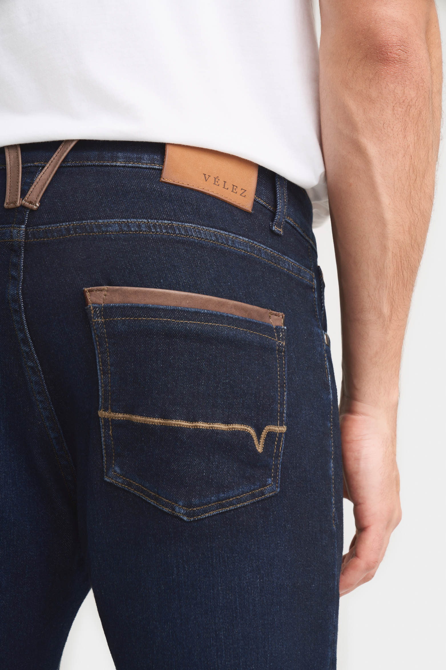 Achieve a timeless and stylish look with our semifitted silhouette jeans in blue denim. Enhanced by a subtle wash and refined with leather belt loops, this piece stands out for its unique and sophisticated character. Crafted through a sustainable washing process that reduces water and harmful chemicals, it reflects our commitment to the environment. Pair them with boots, loafers, or sneakers to elevate your style with this artisanal piece for any occasion.