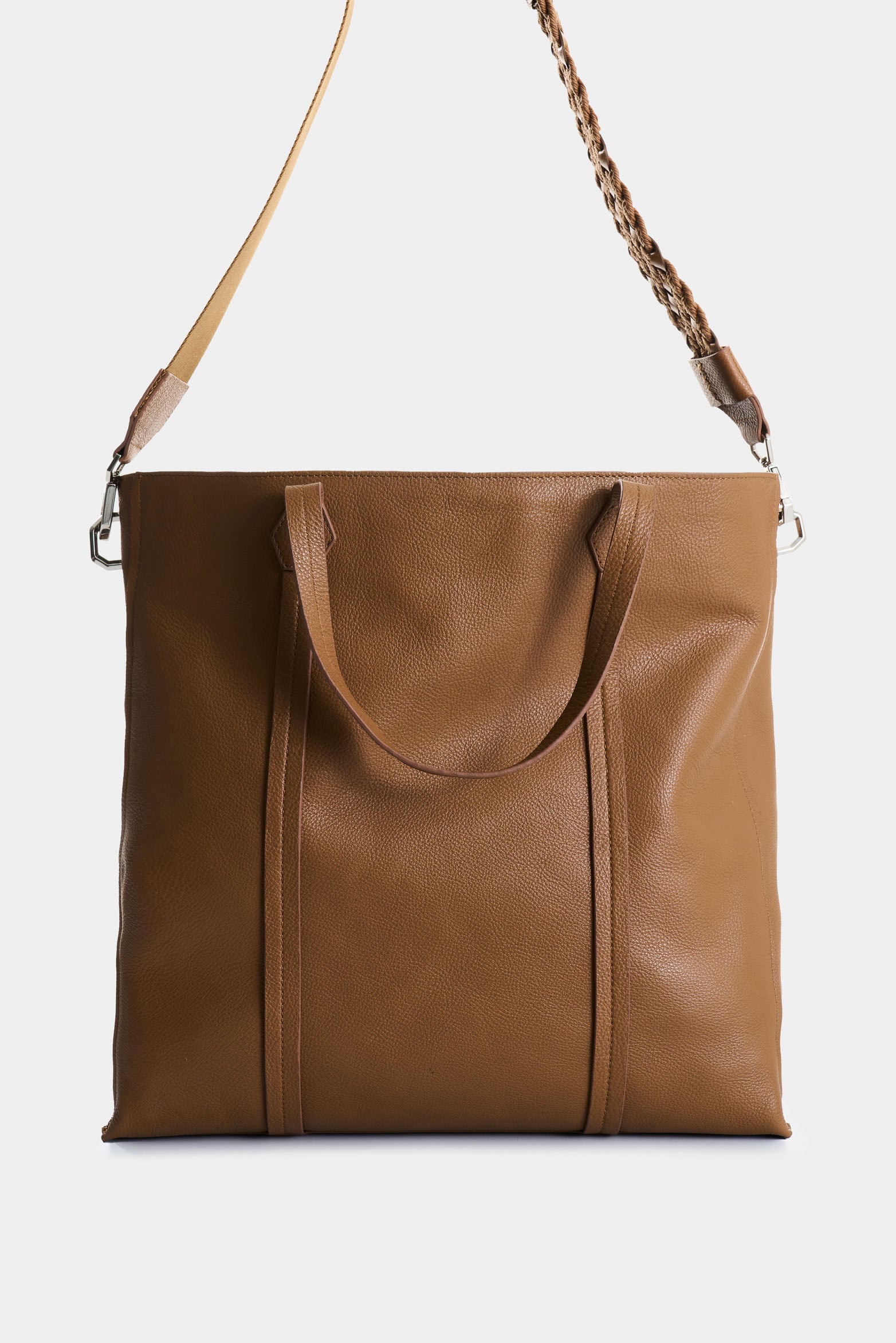 Discover versatility with this shopping bag in supple, naturally luminous grained leather. Its lightweight silhouette, combined with handcrafted details, makes it the ideal companion for your everyday life. With leather handles and an adjustable braided strap, it offers functionality with a touch of elegance. Perfect for elevating any outfit, its refined finishes reflect an authentic and timeless expression.