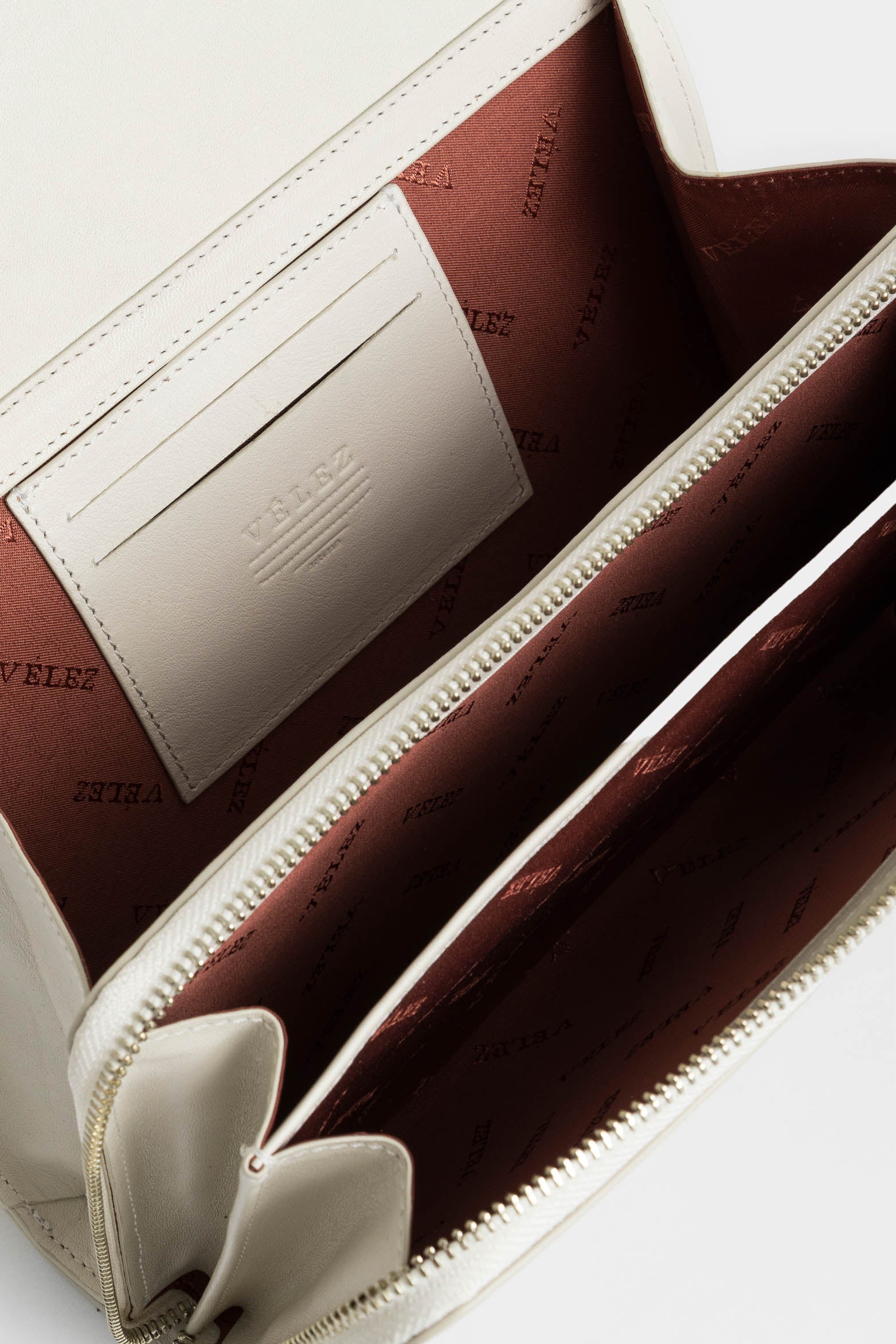 This bowling bag represents innovation in tune with the heritage of leather craftsmanship, creating a sophisticated piece of high differentiation. Each element, from its shiny structured surface to its internal compartments, is a testament to Vélez's expertise in leather manufacturing. Offering three compartments and two card slots, this bag ensures versatility, an adjustable and removable shoulder strap, and adds a touch of sophistication and authenticity to each outfit.