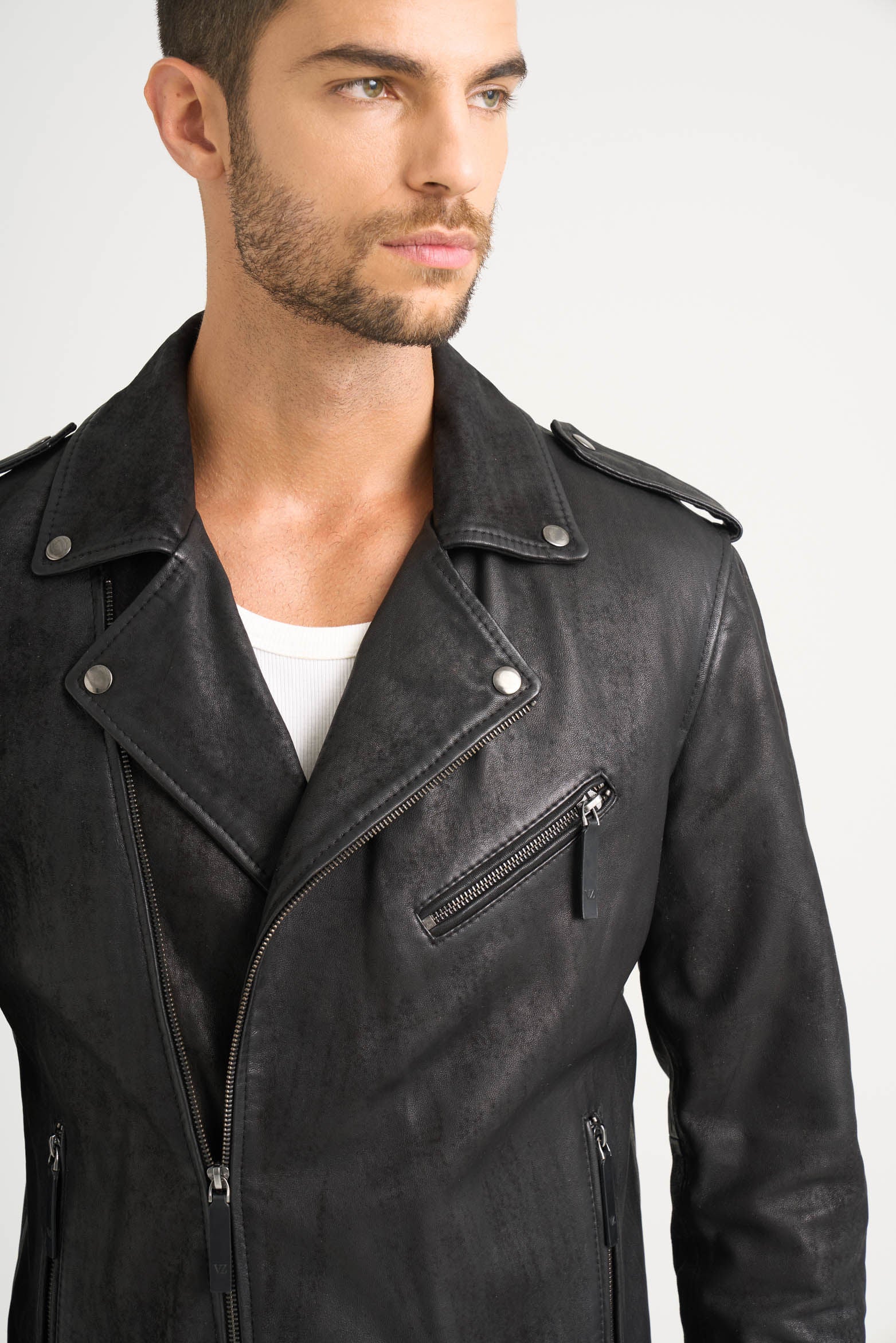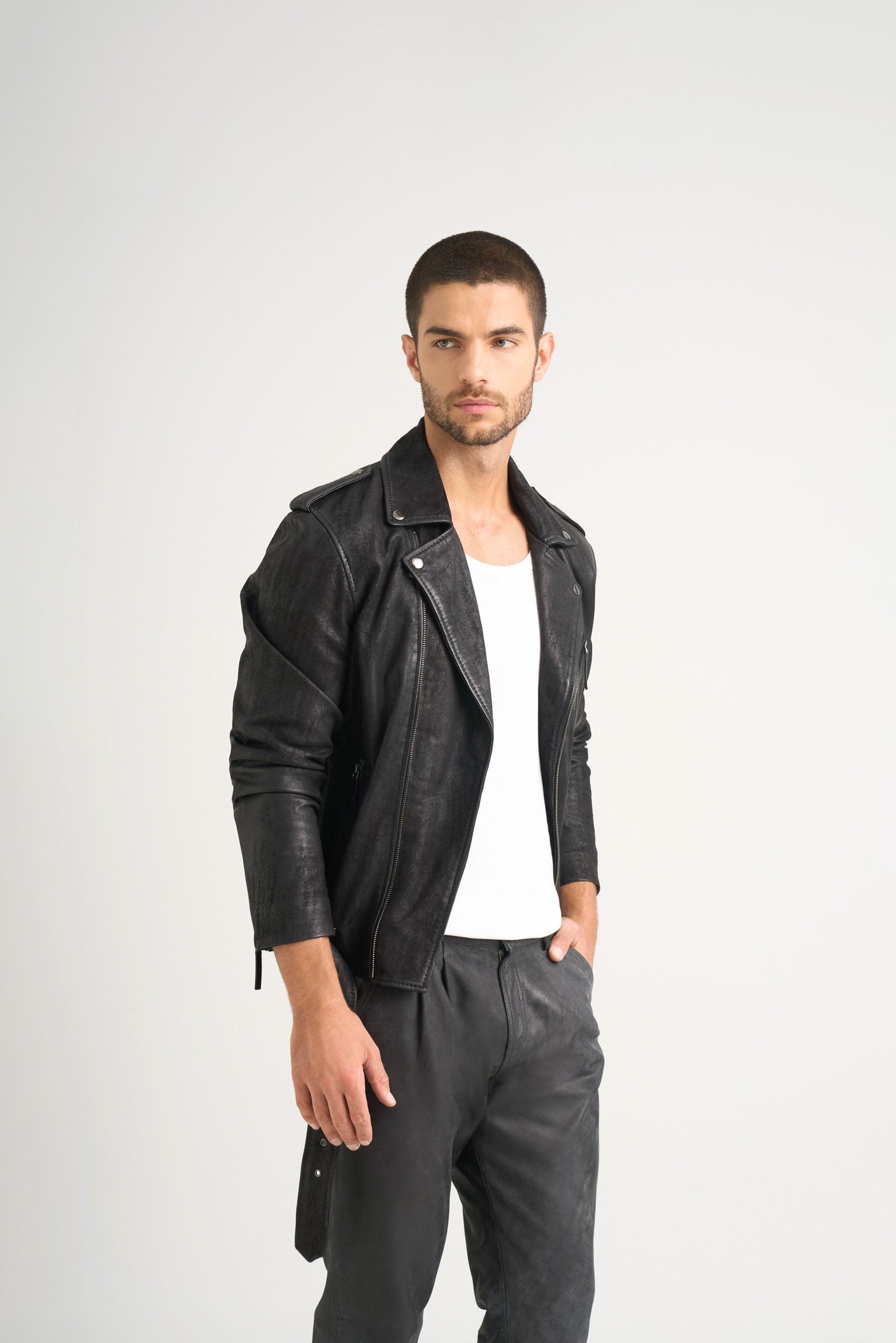 Inspired by sophisticated rebellion, our biker jacket, crafted from smooth leather, redefines classic style with its relaxed fit and contemporary details. This emblem of avant-garde craftsmanship, featuring a zip closure, shirt collar, and functional pockets, elevates your everyday style. Every detail reflects Vélez's commitment to quality, offering a unique piece for those who want to express their identity through fashion.