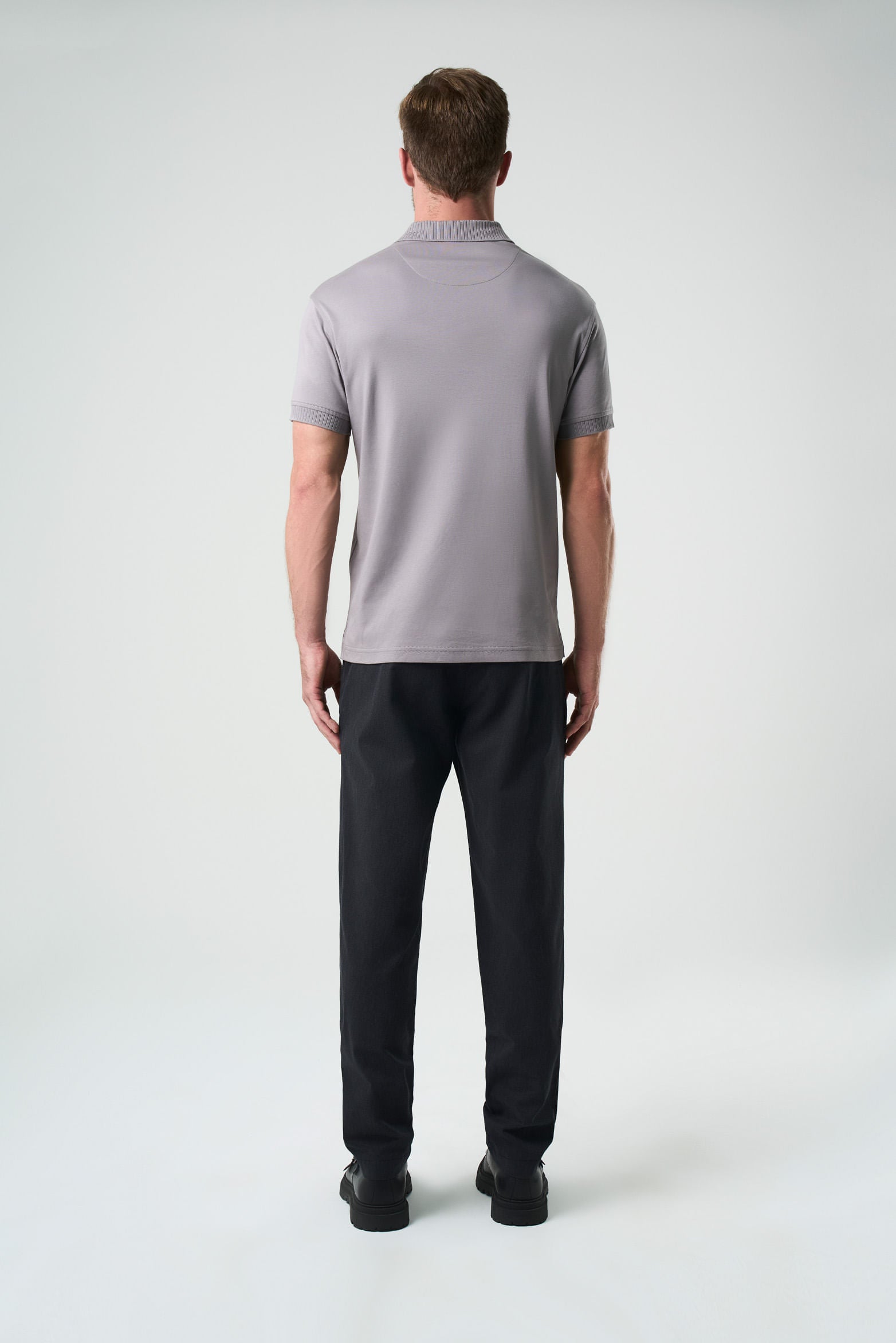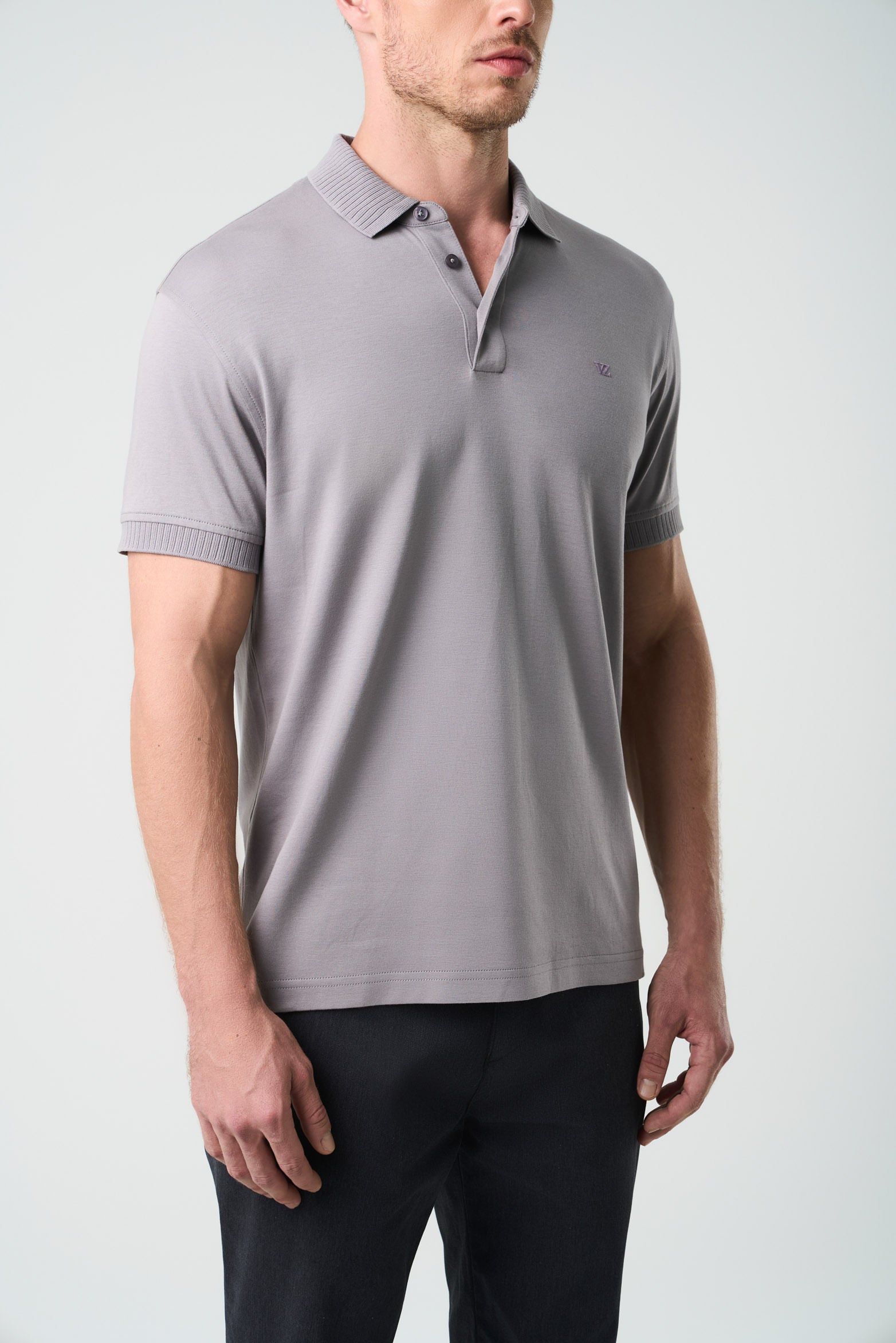An essential piece that perfectly complements both classic and contemporary styles, elevating any look depending on the occasion. This short-sleeve polo, with soft and fresh textures, is ideal for a modern outfit paired with a leather jacket and jeans or with trousers and a blazer. The ribbed cuffs and hem add a sophisticated touch, while its lightweight fabric ensures freshness and comfort. A must-have basic for any wardrobe.